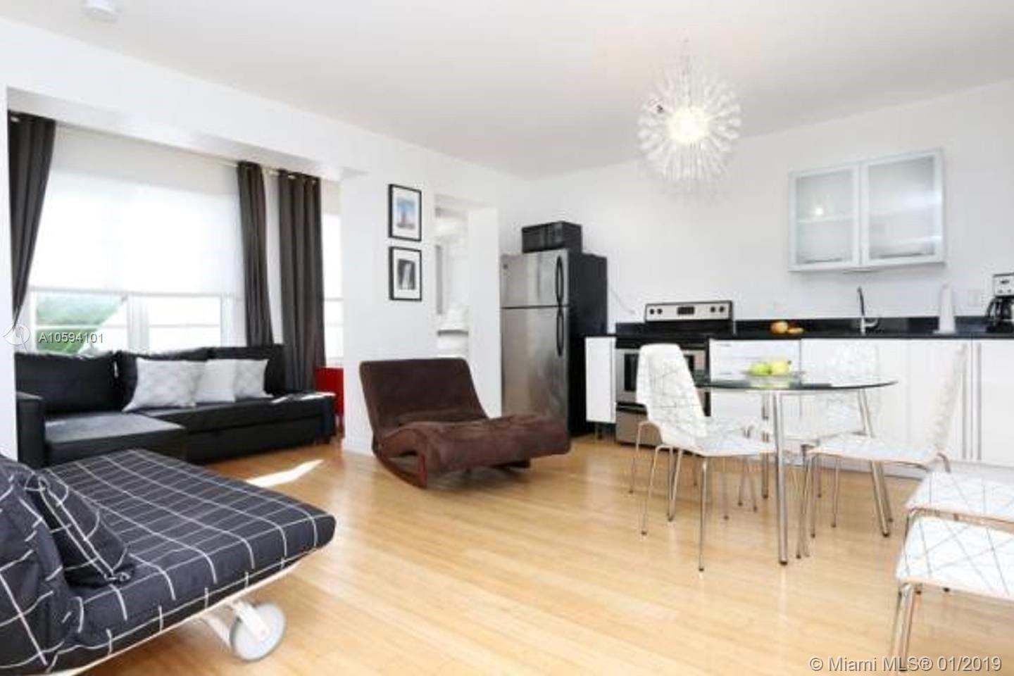 Great location in the heart of South Beach! The condominium is located in a typical Art Deco architectural building and within a short walking distance to the beach, restaurants and malls. The unit has a spacious master bedroom and living room and the kitchen comes with stainles steel appliances. Great unit to live in or for investors, it is one of the few South Beach buildings approved by the city for short term rentals!