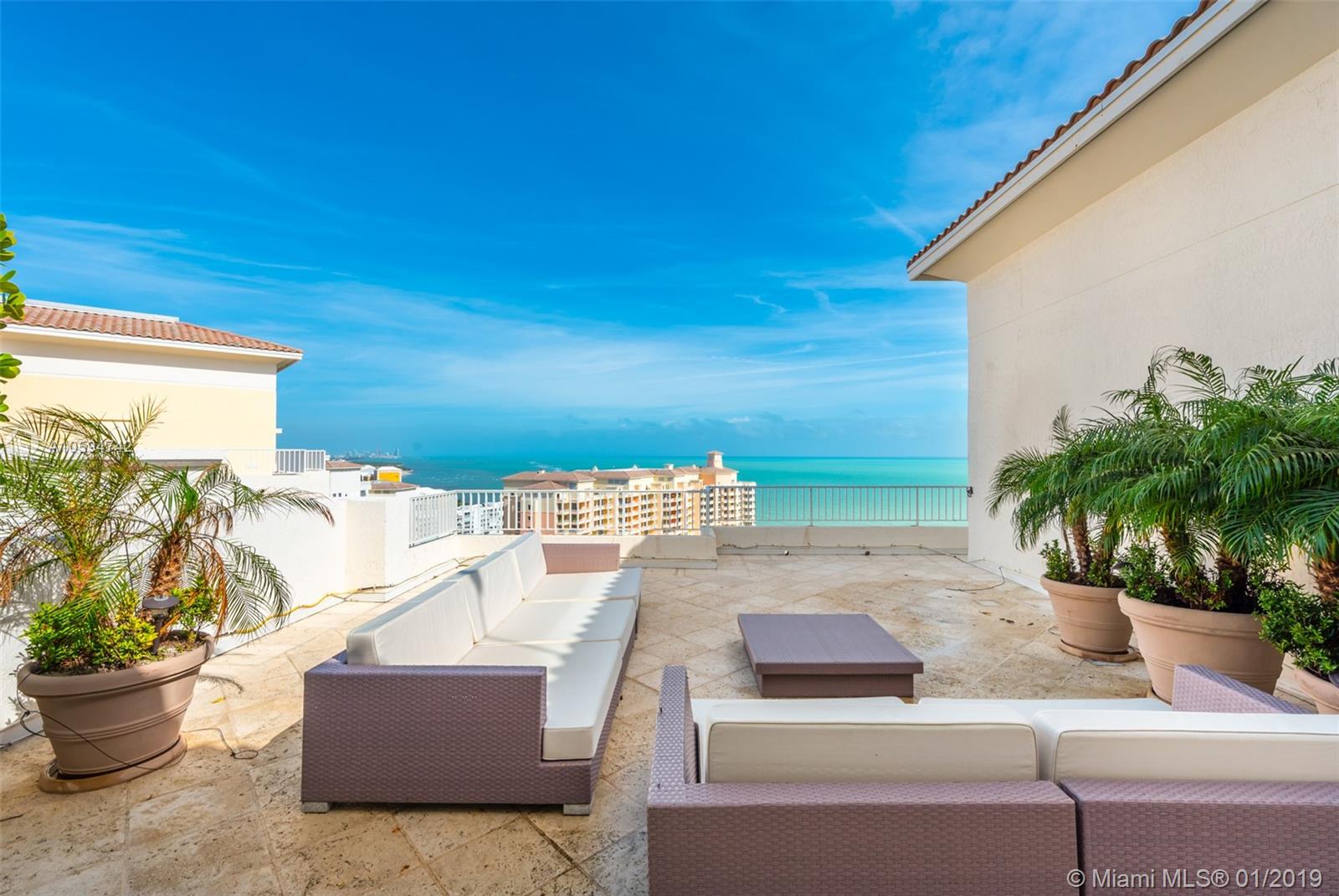 Amazing roof top corner PH unit in Club Tower One. Enjoy the breathtaking views of the beach, ocean, the bay and the park with unforgettable and stunning sunsets. This gorgeous penthouse offers 3 bedrooms, 4.5 bathrooms, plus a den and a glassed enclosed family room on the second floor with an incredible oversized roof top terrace including a magnificent Jacuzzi and office. Sq Ft of unit with enclosure is 3,100 Sq Ft under A/C. Owner will consider selling the furniture separate from the Real Estate. Easy to show.