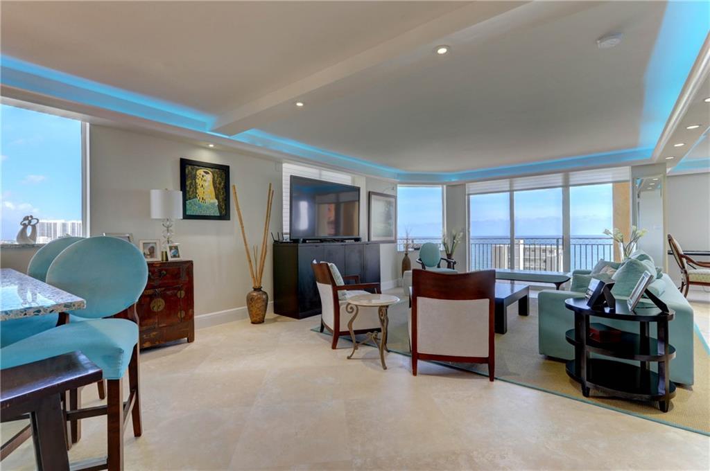 NE corner unit w/Direct Ocean View & Wraparound Terrace. Saturnia Marble Floors in the entire unit. (Renovated 2011) New Vetrazzo Chef’s Kitchen/High End Stainless Appliances, large pantry & deep sink, new baths, crown molding, LED Lighting, BOSE Stereo System, Full Laundry Room, Plenty of Closets, 2 Garage Parking Spaces, Dual Master Suites w/ private terraces. Private Beach Club on Sand w/ pool/ Jacuzzi, Private Cabanas for Sale. 24 hr valet, Gym, Sports Lounge. 2 large dogs OK, can rent 3X /yr. 3-month min, Reserves in Budget, Conventional Loans OK. 3rd bedroom wall open for large living room/formal dining room or bonus room.