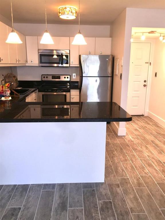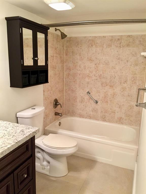 This spacious beautifully upgraded 1 bedroom, 1 bathroom condo features an open kitchen with granite countertops & newer stainless steel appliances overlooking dining & living room. Private enclosed patio. Washer/dryer in unit. Brand new bathroom & new porcelain tiles throughout. Freshly painted. Extra storage unit. Very low maintenance fees. Tenant just moved out and was renting $1350/month. Excellent location. Very close to highways, restaurants and shops. This place won't last.