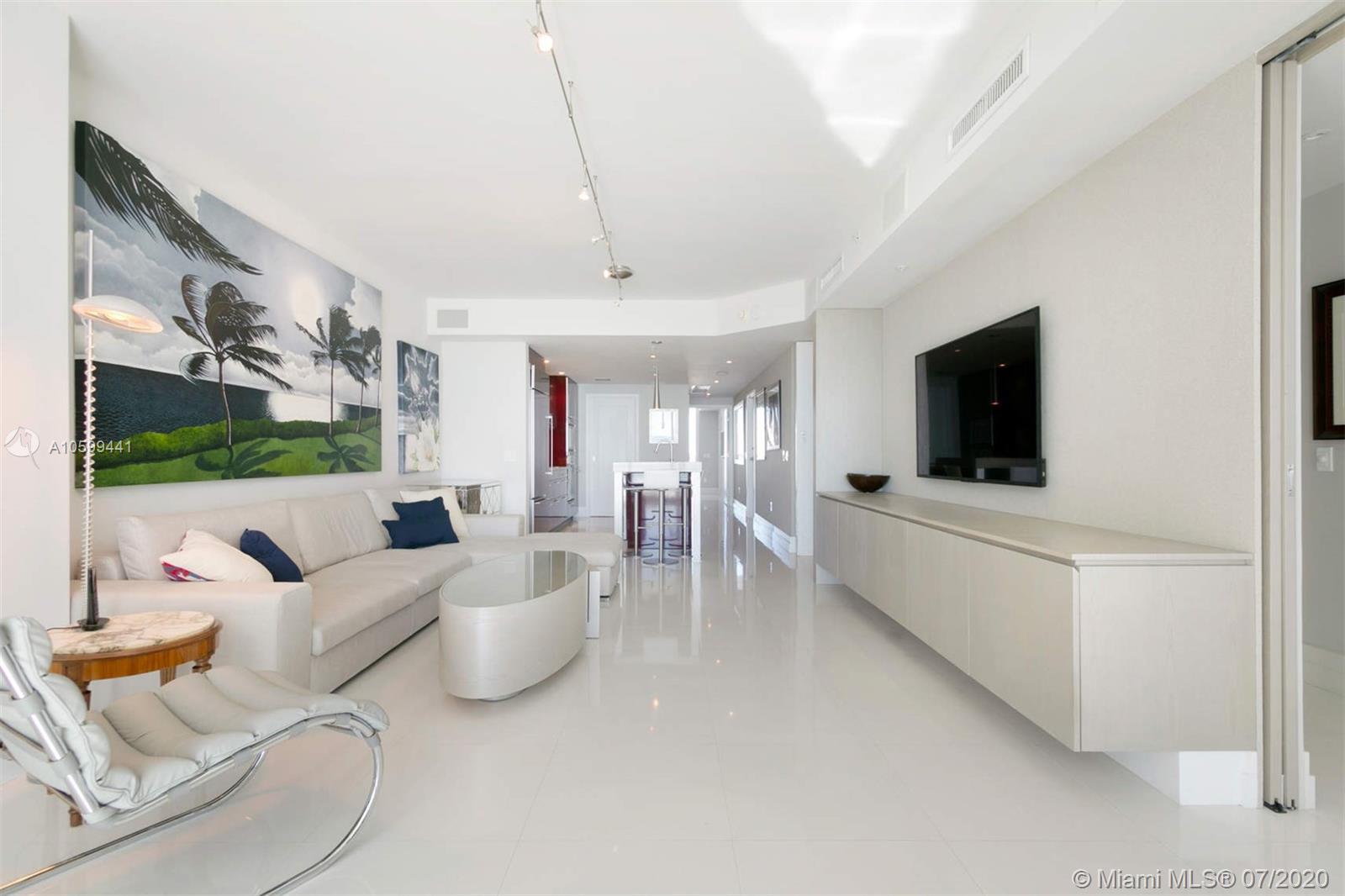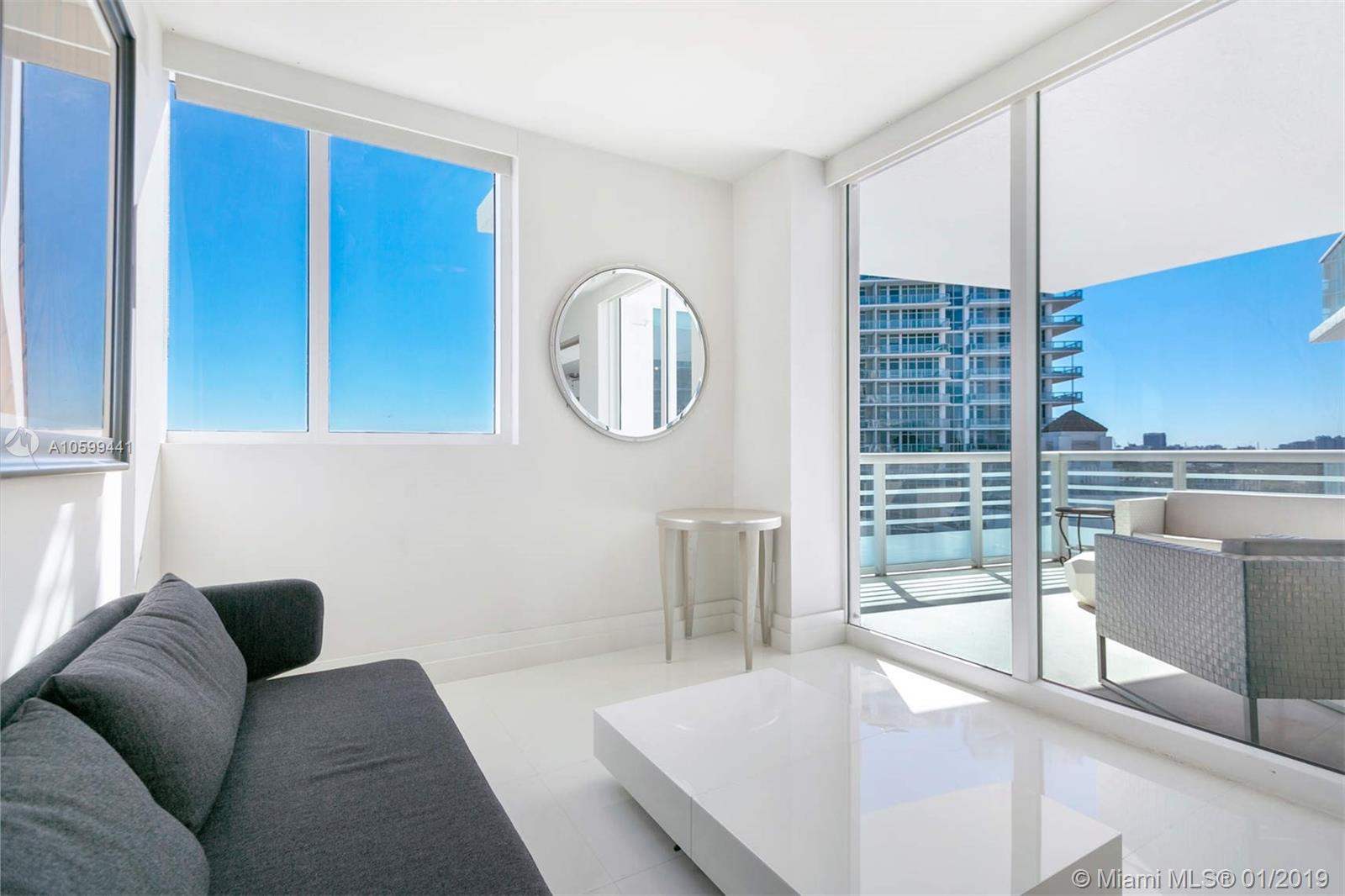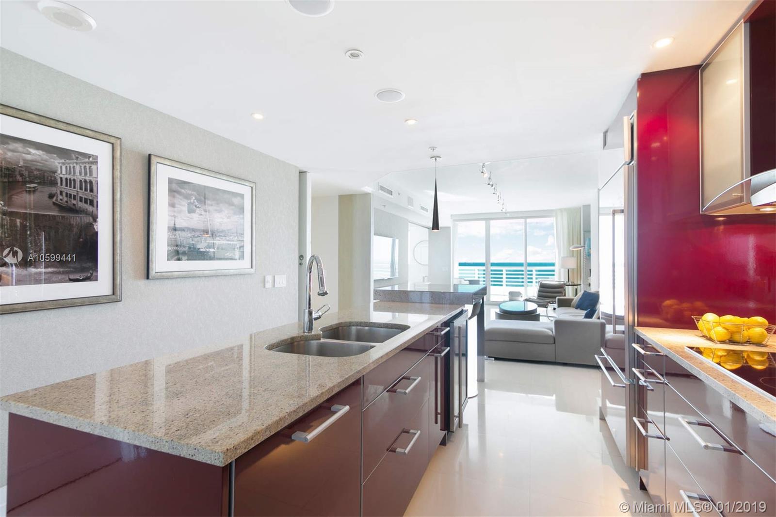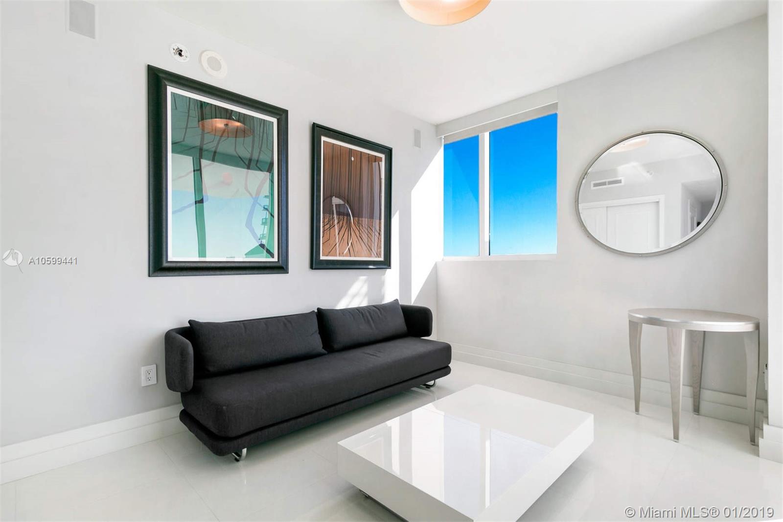 Elegant flow through unit with direct ocean views to the east and vibrant city views to the west. Beautifully finished and furnished turn-key ocean front condo at the elegant Mosaic. Private elevator, open floor plan, Poggenpohl kitchen, luxurious bathrooms and 2 large terraces offering direct ocean sunrise views and dramatic sunset views. Amenities include European edge pool overlooking the ocean, Beach service, fitness center, spa, club room, media room, business center, sculpture garden, doorman and valet parking. Ideal beach front location adjacent to the cultural Faena district offering a unique lifestyle of leisure and comfort.