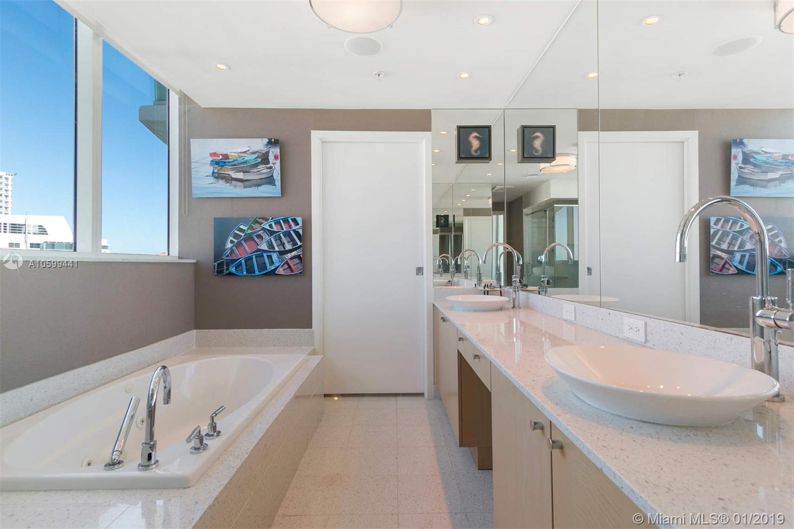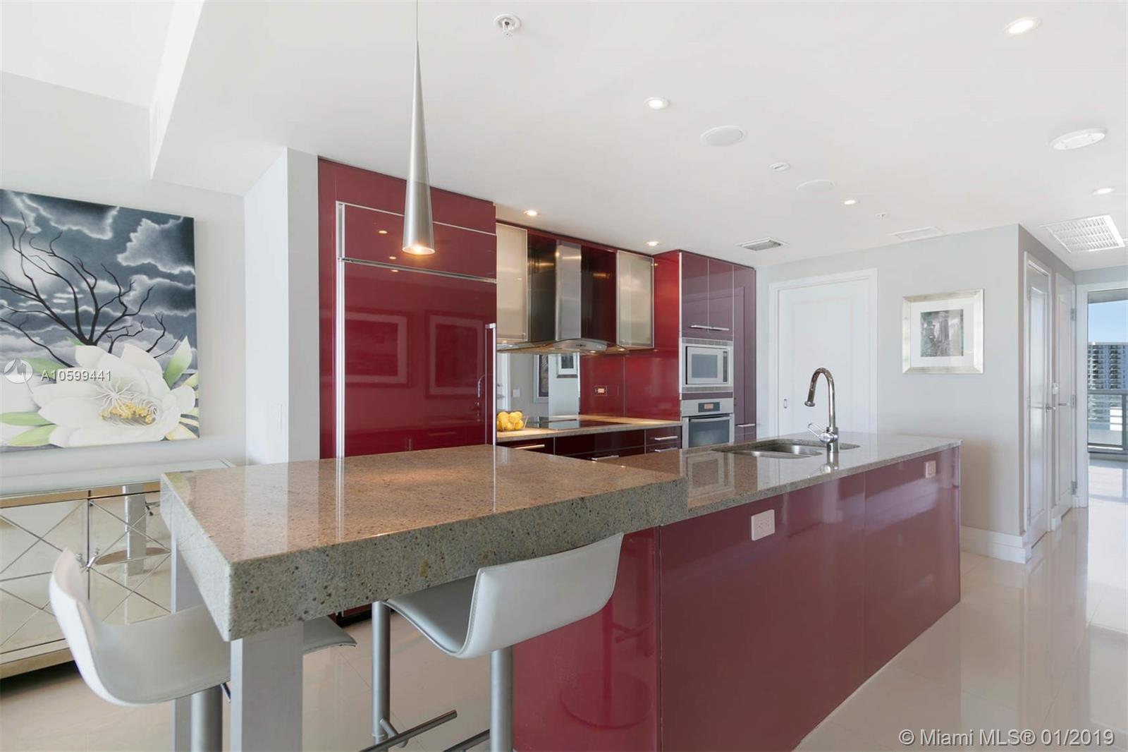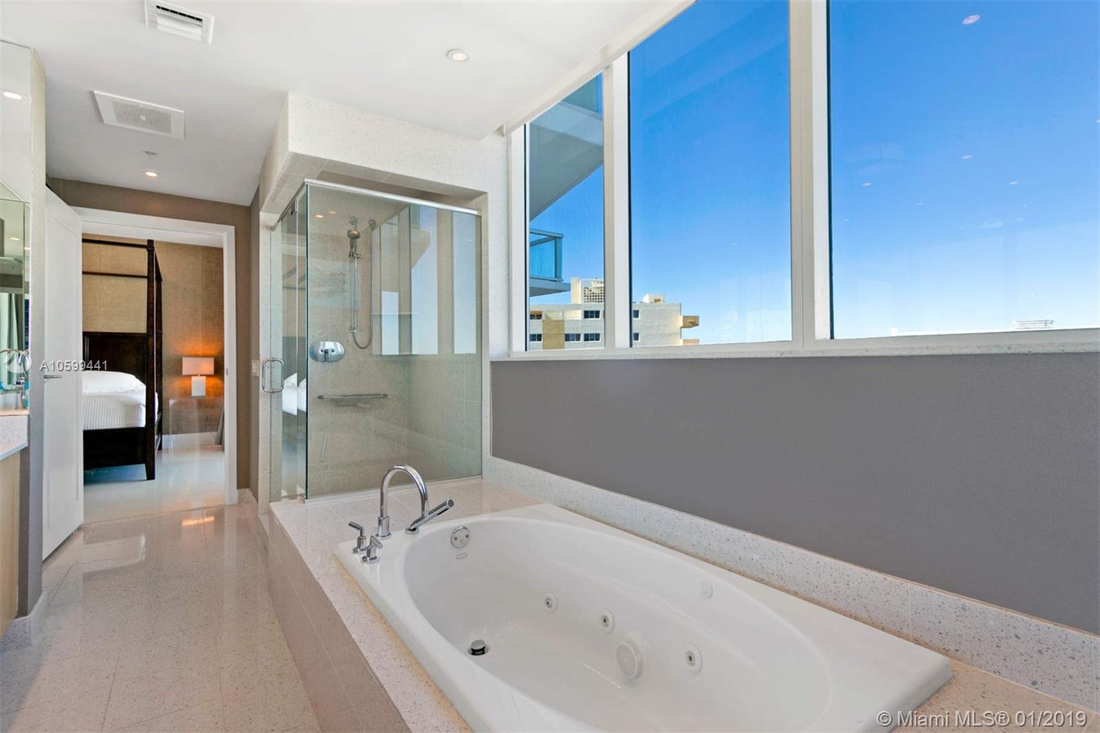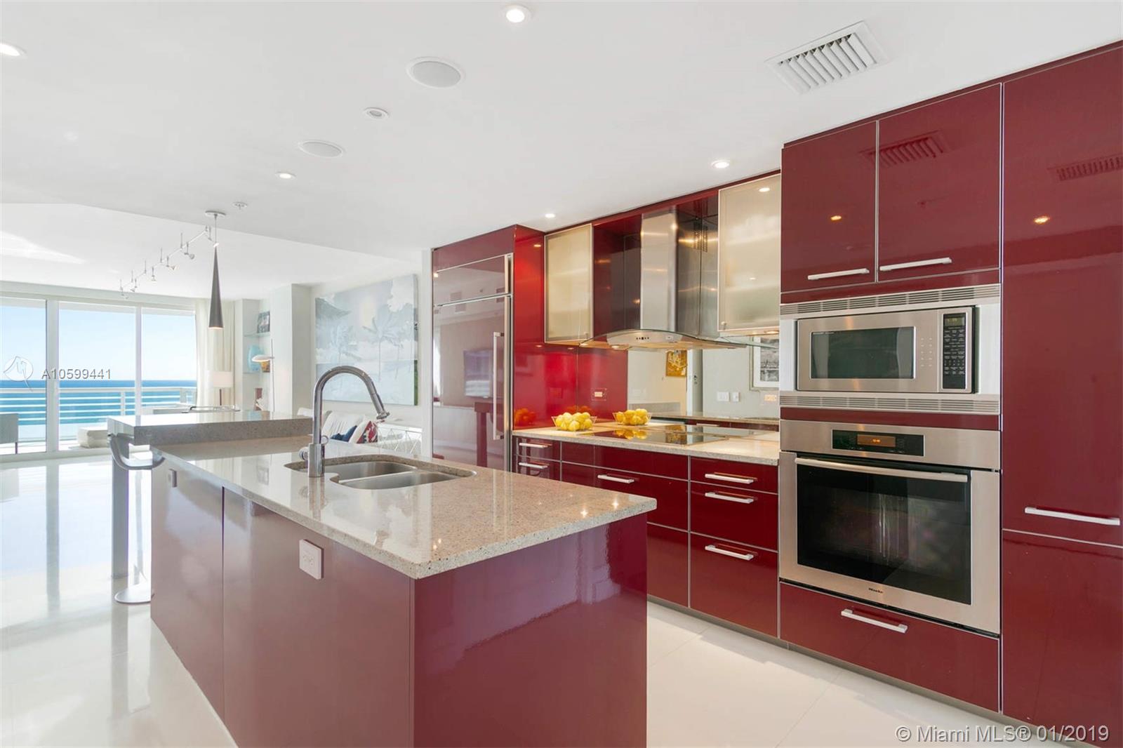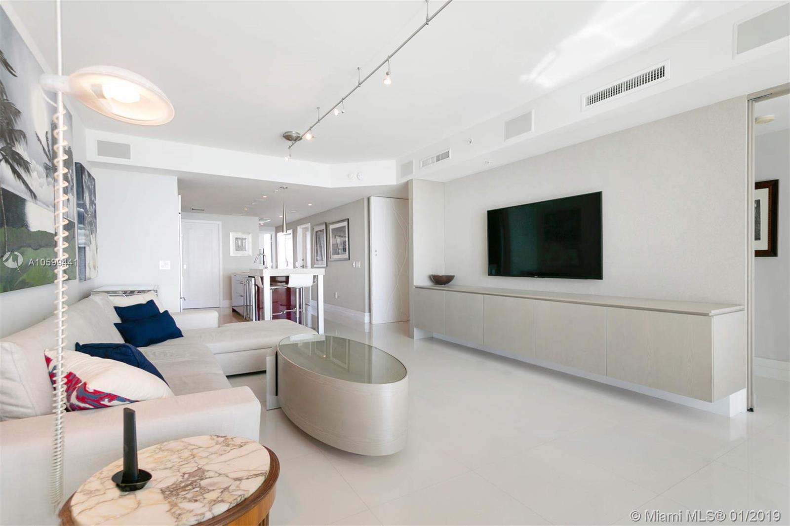 Elegant flow through unit with direct ocean views to the east and vibrant city views to the west. Beautifully finished and furnished turn-key ocean front condo at the elegant Mosaic. Private elevator, open floor plan, Poggenpohl kitchen, luxurious bathrooms and 2 large terraces offering direct ocean sunrise views and dramatic sunset views. Amenities include European edge pool overlooking the ocean, Beach service, fitness center, spa, club room, media room, business center, sculpture garden, doorman and valet parking. Ideal beach front location adjacent to the cultural Faena district offering a unique lifestyle of leisure and comfort.