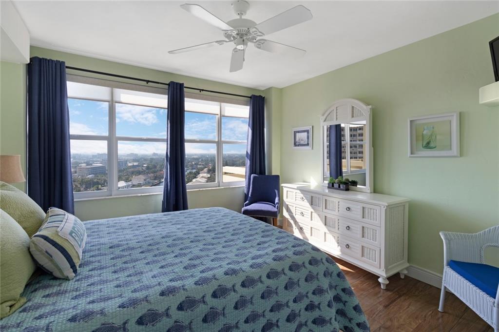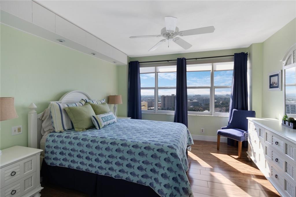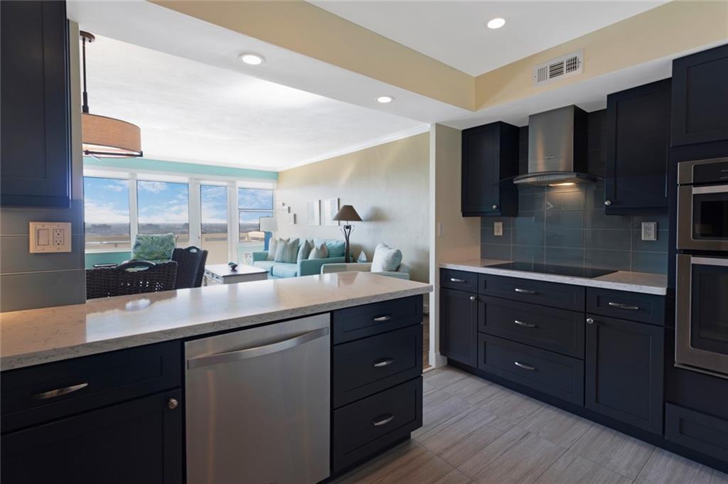 This is the most coveted view in the Coral Ridge Towers complex! Direct unobstructed 180 degree Intracoastal views with daily boat parades and sunsets. This lovely 1 bedroom 1 bathroom apartment has been substantially remodeled from top to bottom. Open kitchen with quartz countertops, chic tile back splash, high quality stainless steel appliances, induction cooktop & custom cabinetry. Remodeled bathroom w/ new tile, vanity & shower. Central AC & hurricane impact windows & door installed. Large private balcony w/ breathtaking views. Resort style pool & garden area situated directly on the Intracoastal Waterway. Located in a beautiful walking neighborhood on a barrier island between the ocean and Intracoastal waterway. Association states one Buyer must be 55, no rentals/pets.