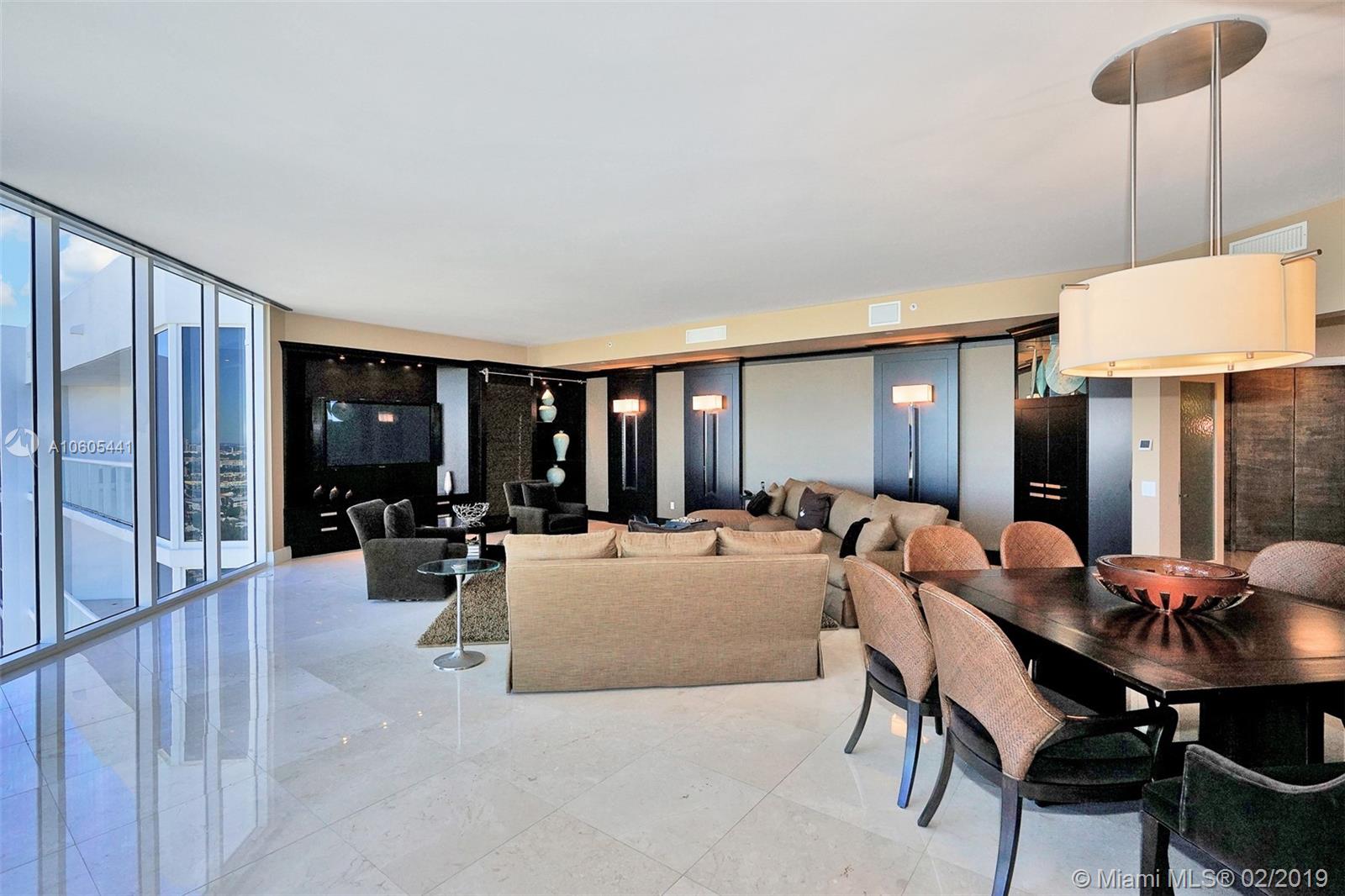 This penthouse has totally unobstructed panoramic views. Light filled, palace in the sky; one of the best floor plans in Aventura. Magnificent corner residence, 3 in-suite bedrooms and 3, 5 baths. The higher ceilings of the penthouse emphasize a sense of space, air, and light. Upgraded with good taste and elegance, used only as a second home and in pristine condition. Marble floors throughout, master bedroom with computer area. Electronic system and surround sound. Gourmet kitchen w/ island, wine cooler & top line appliances. Upgraded washer & drier. All amenities included in maintenance: a 25,000 Sq. Ft. fitness center & spa, wine cellar, movie theater, piano room, 4 tennis courts, 3 pools. Atlantic l is one of the most elegant buildings in Aventura. Easy to show.