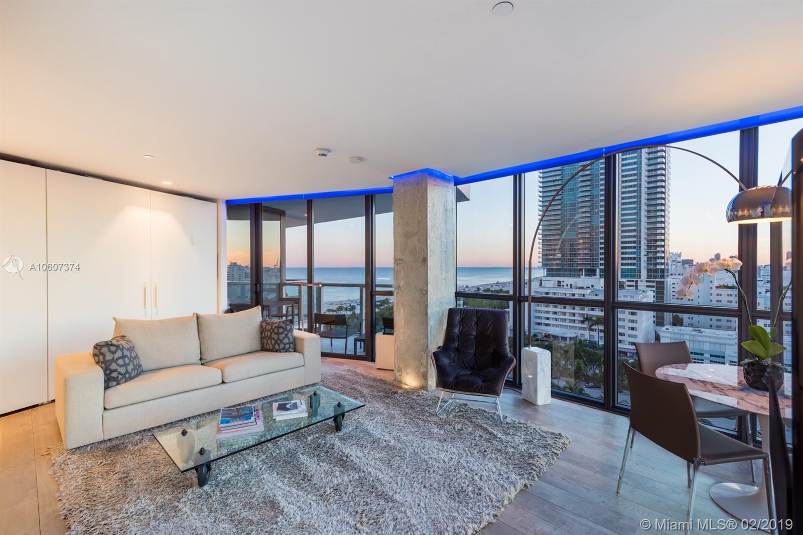 Rare, one of a kind unit at the W residences south Beach. From the moment you enter this stunning gut renovated 850 SQ.FT. S.W. corner unit you are mesmerized by the panoramic south beach, ocean and downtown views from the floor to ceiling glass that surrounds you. The attention to detail is evident from the European oak floors throughout, custom kitchen by Arclinea and Miele to the bathroom by Boffi. Custom lighting by Floss and Audio/Visual by Bang & Olufsen for the most discerning of taste. The residences at the W enjoy 24 private concierge and butler, Award winning restaurants such as Mr. Chow and The Dutch, Private Beach Club, Reserved chairs at the pool, spa, Wall night club, living room bar and much more