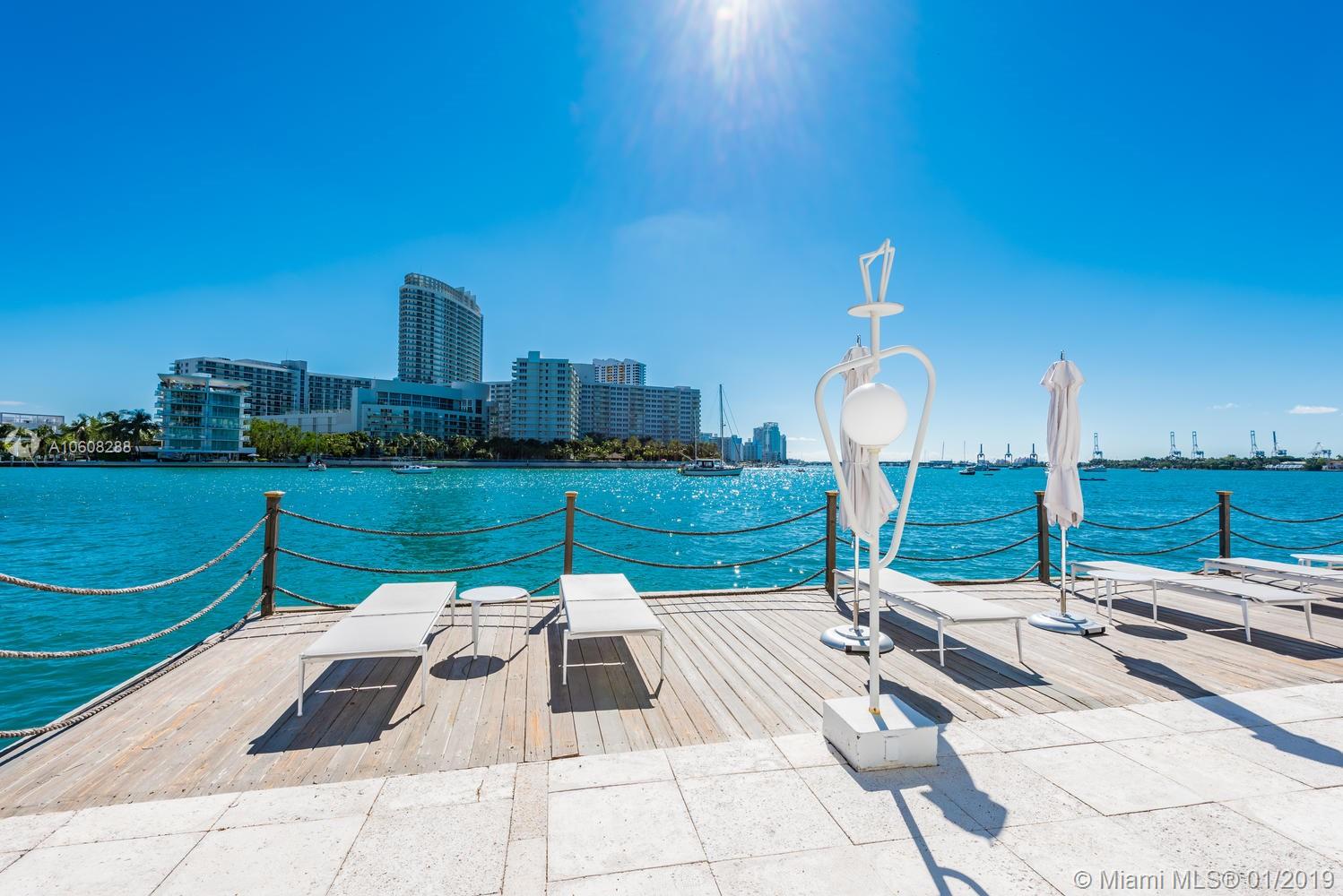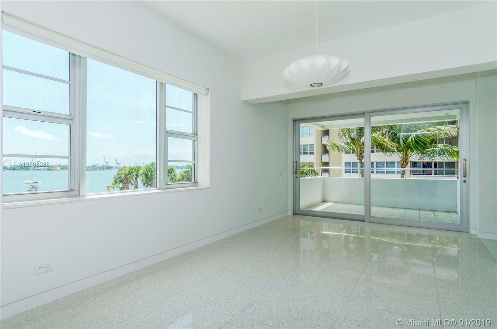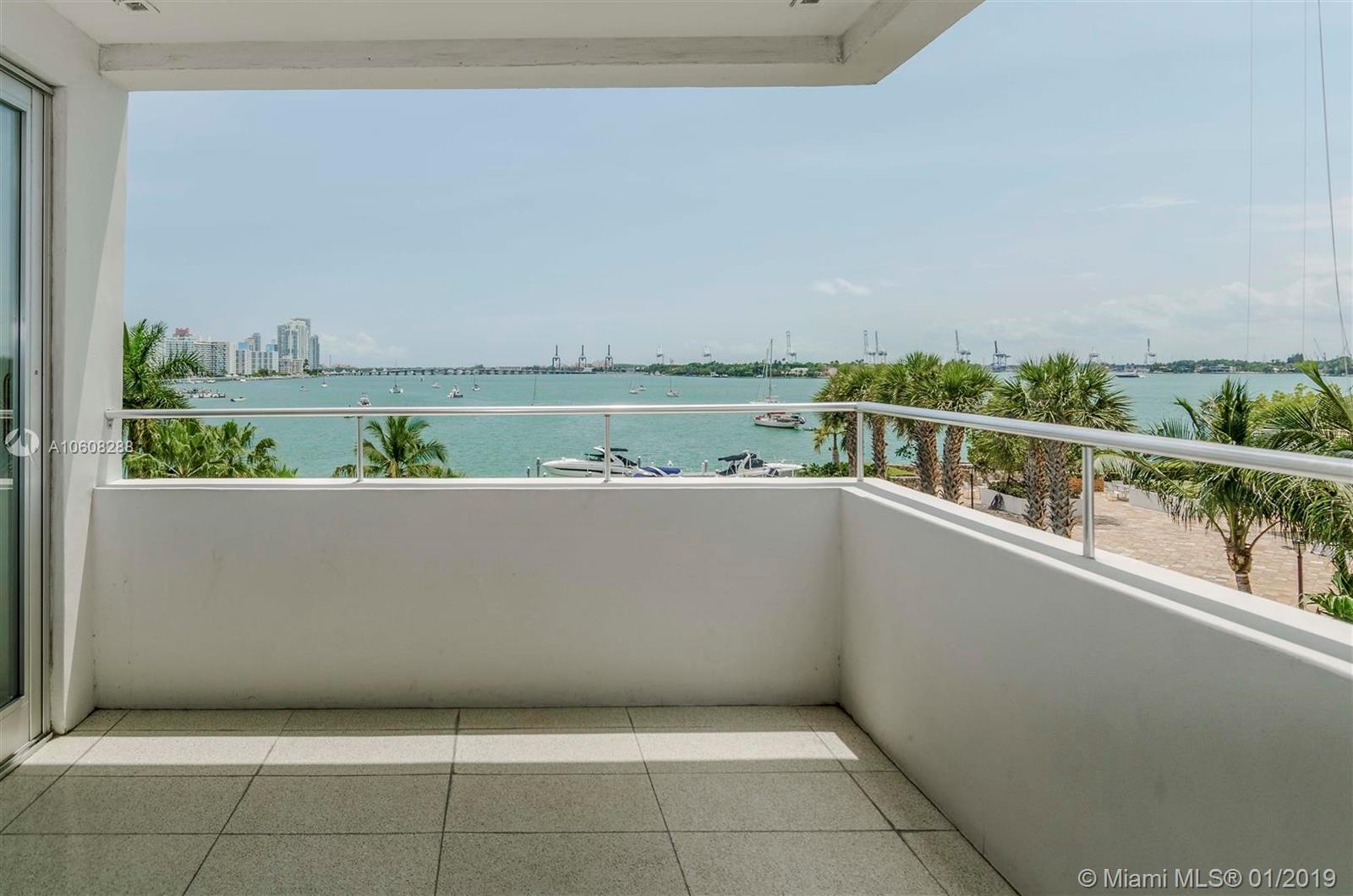 Completely updated 4th floor corner unit with new impact windows, cooks kitchen & 2 over sized master bedroom suites and 2.5 baths in landmark building located on Belle Isle, a quiet oasis just steps from Lincoln Road and The standard Hotel & Spa and many South Beach amenities. Exclusive, full service 44-unit building w/ open air lobby in a tropical setting overlooking Biscayne Bay. This unit offers a corner outdoor terrace with bay views. Watch the cruise ships go by from your private terrace. Boat dock available.
