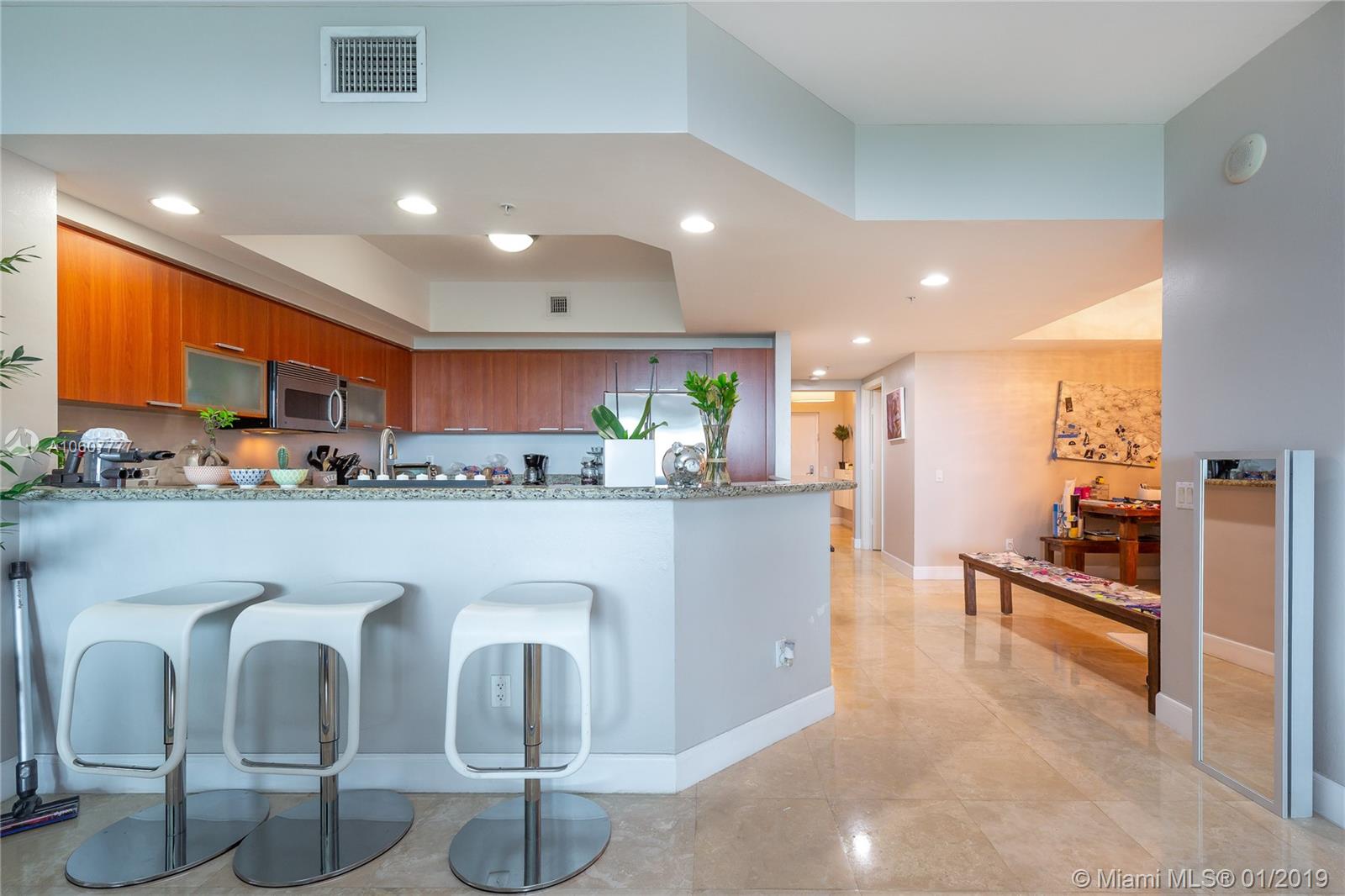 Beautiful modern 2 bed 2 bath turn key unit in desired One Fifty One at Biscayne Condo high rise offers spacious living area with plenty of natural light throughout, wood flooring, ample bedrooms and baths. This lovely kitchen features stainless steel appliances and granite counter tops with convenient dining sitting area. Additionally includes washer and dryer for your comfort. Just steps away from Biscayne Bay, parks, university, dining and Bal Harbour Shops. Don't miss out on waking up to breathtaking skyline sunrises from your own balcony. Schedule a showing today ! Must See