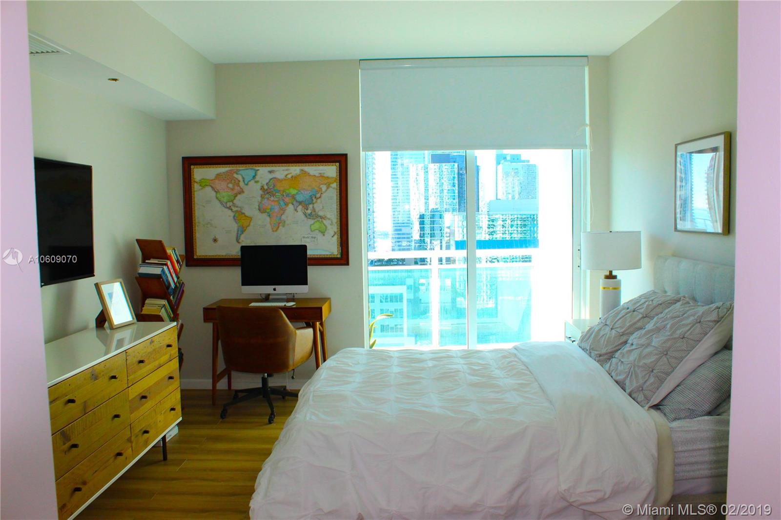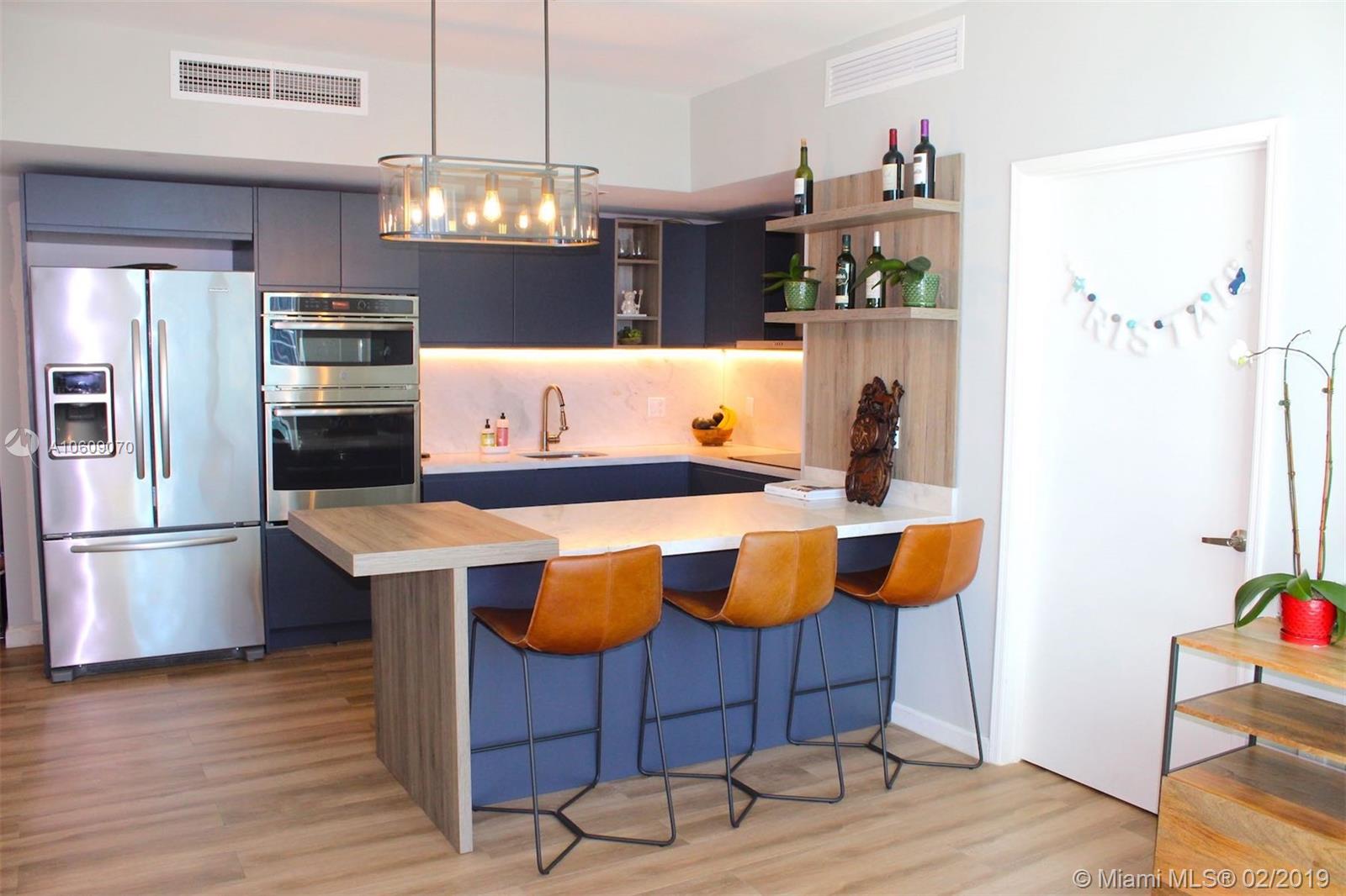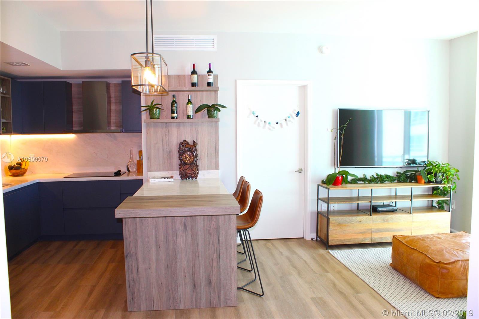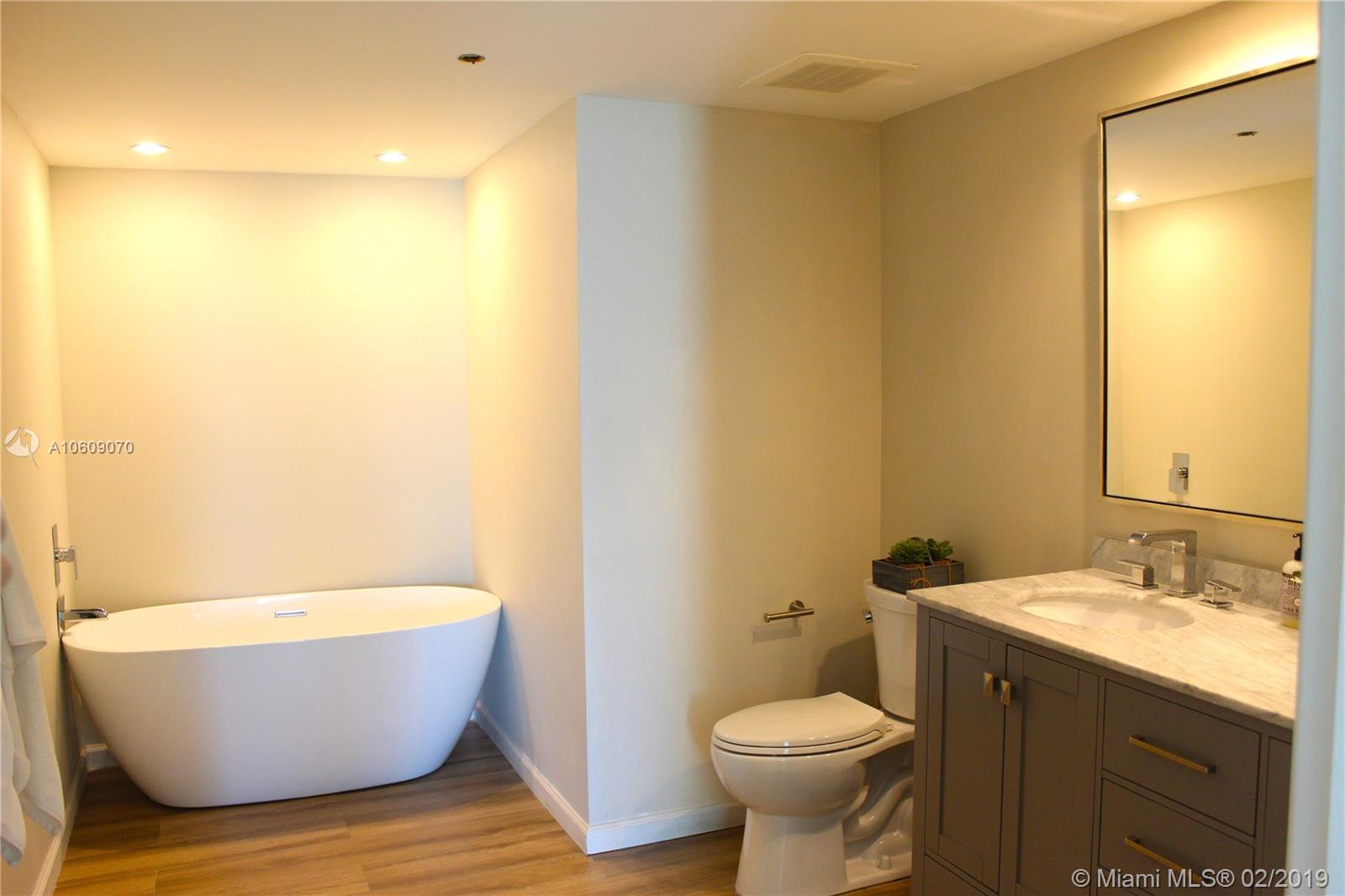 Beautifully renovated 2/2 apartment in Brickell featuring, Large balcony with stunning views of the bay, city, and pool. The building is walking distance to Brickell city center, Mary Brickell Village, Publix, Equinox, and much more. Tiles imported from Spain (Hard wood look) throughout entire apartment including bathroom, balconies, and closets. High ceilings and new light fixtures throughout. Custom Italian kitchen with built in peninsula featuring deep drawers for plenty of storage. Kitchen also has LED lights under cabinets, marble counters and backsplash, area for barstools, and new appliances. Incredible master bathroom has modern stand alone tub, new double sink, and a shower with rainfall showerhead & handheld shower head. This unit is a MUST SEE!