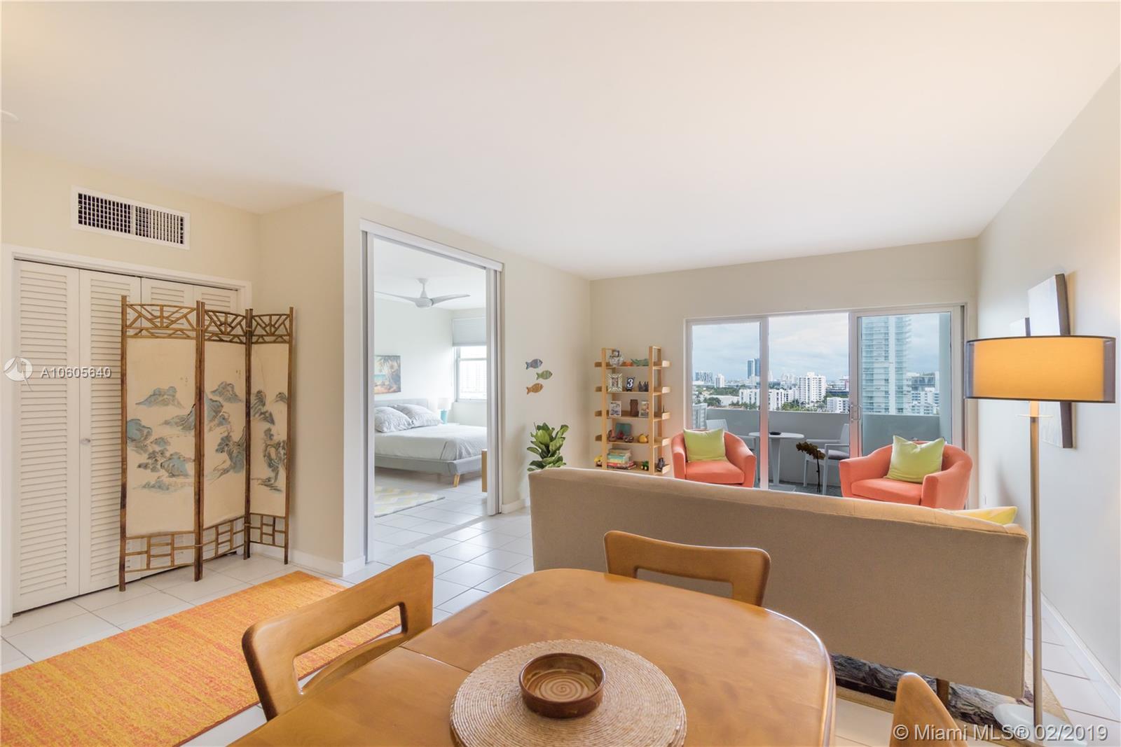Renovated 1 Bedroom & 1 Bath, 900 sq.ft. residence located in Iconic Belle Isle boutique building designed by Morris Lapidus. Residence comes fully furnished, spacious closets, hurricane impact windows & doors with Hunter Douglas blackout blinds in bedroom & large open balcony with unobstructed views overlooking park & Sunset Harbour. Best South Beach location, steps to Standard Hotel, 5 minute walk to Sunset Harbour shops & dining, plus Citibikes 1/2 a block away. 1 parking space, 24-hour doorman, internet & cable included in hoa fees. Beautifully renovated pool, deck and lobby overlooking Biscayne Bay & Miami Skyline.