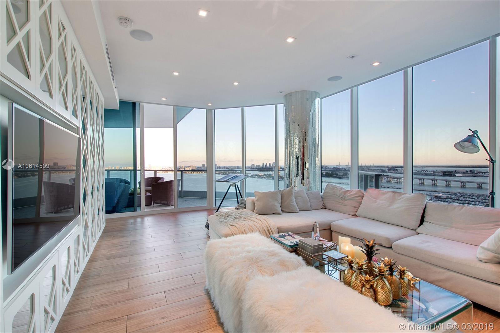 ONE OF THE MOST SPECTACULAR UNITS IN PARAMOUNT BAY !! WHERE NO EXPENSE HAS BEEN SPARED A UNIQUE FLOW-THRU FURNISHED DESIGNER UNIT. THIS 3 BED, 3 1/2 BATH + DEN FEATURES UNDIVIDED VIEWS OF BISCAYNE BAY, OCEAN AND CITY. APPROX 2.353 SQ/FT OF PURE LUXURY IN GREAT TASTE. INCLUDING DESIGNER LOUNGE LIGHTING ,ELECTRIC SHADES, TOP QUALITY MILLWORK THROUGH JUST TO MENTION A FEW. A MUST SEE !! 4 PARKING SPACES AND 2 STORAGE ROOMS ARE INCLUDED APROX A $160.000.00 VALUE !!!!!!! A RESORT LIKE BUILDING FEATURING PRIVATE FOYERS WITH OVER THE TOP AMENITIES DESIGNED BY LENNY KRAVITZ. 24-HR SECURITY, FRONT DESK STAFF, 2 POOLS, FITNESS CENTER AND SPA, RESIDENTS PRIVATE CLUB ROOM AND SPA SERVICES JUST TO MENTION A FEW. BUILDING LOCATED IN THE HEART OF EDGEWATER ON THE BAY