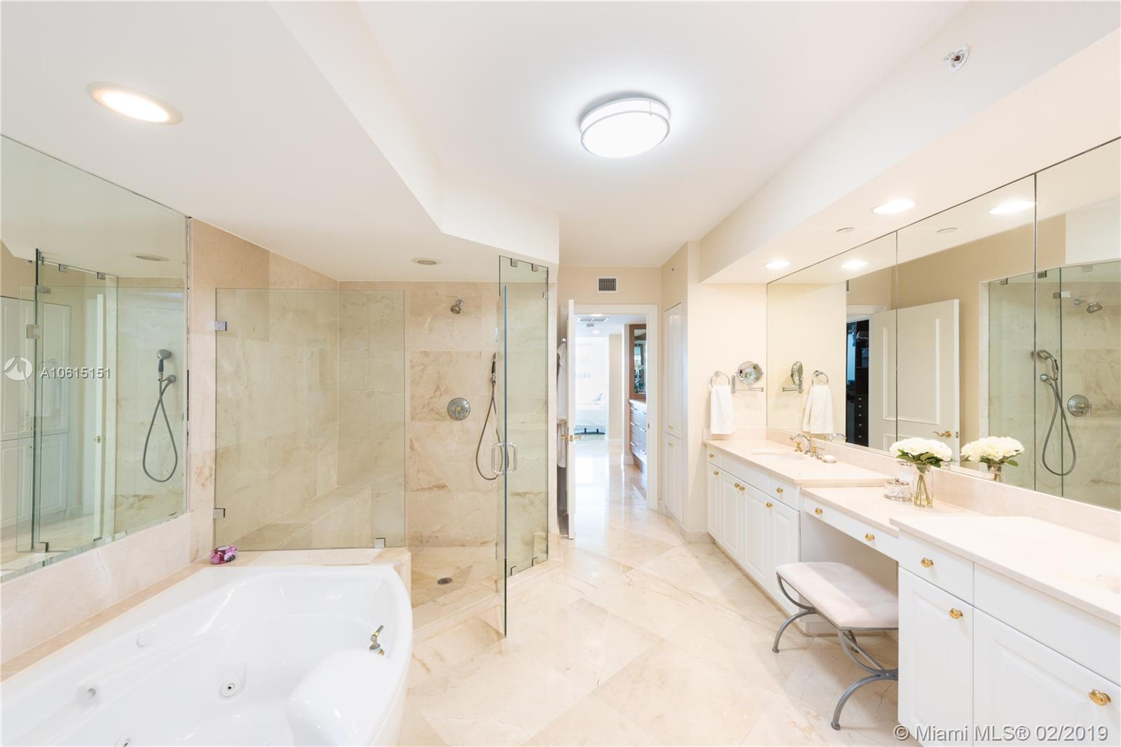 This elegant PH level 2 bed, 3 full and 1 half bath plus den condo features unobstructed ocean and inter coastal views with golf course views to the West. Penthouse level Apts have 240 SF of deeper terraces than other levels. Master suite includes large master bath with dual sinks and separate spa bath and shower. Bright and light filled with Marble floors throughout. Spacious floor plan includes private foyer entry, bar and separate office as well as a storage unit. Resort lifestyle in a great location. Amenities include infinity pool, movie theater, BBQ area, tennis courts and restaurant that delivers.