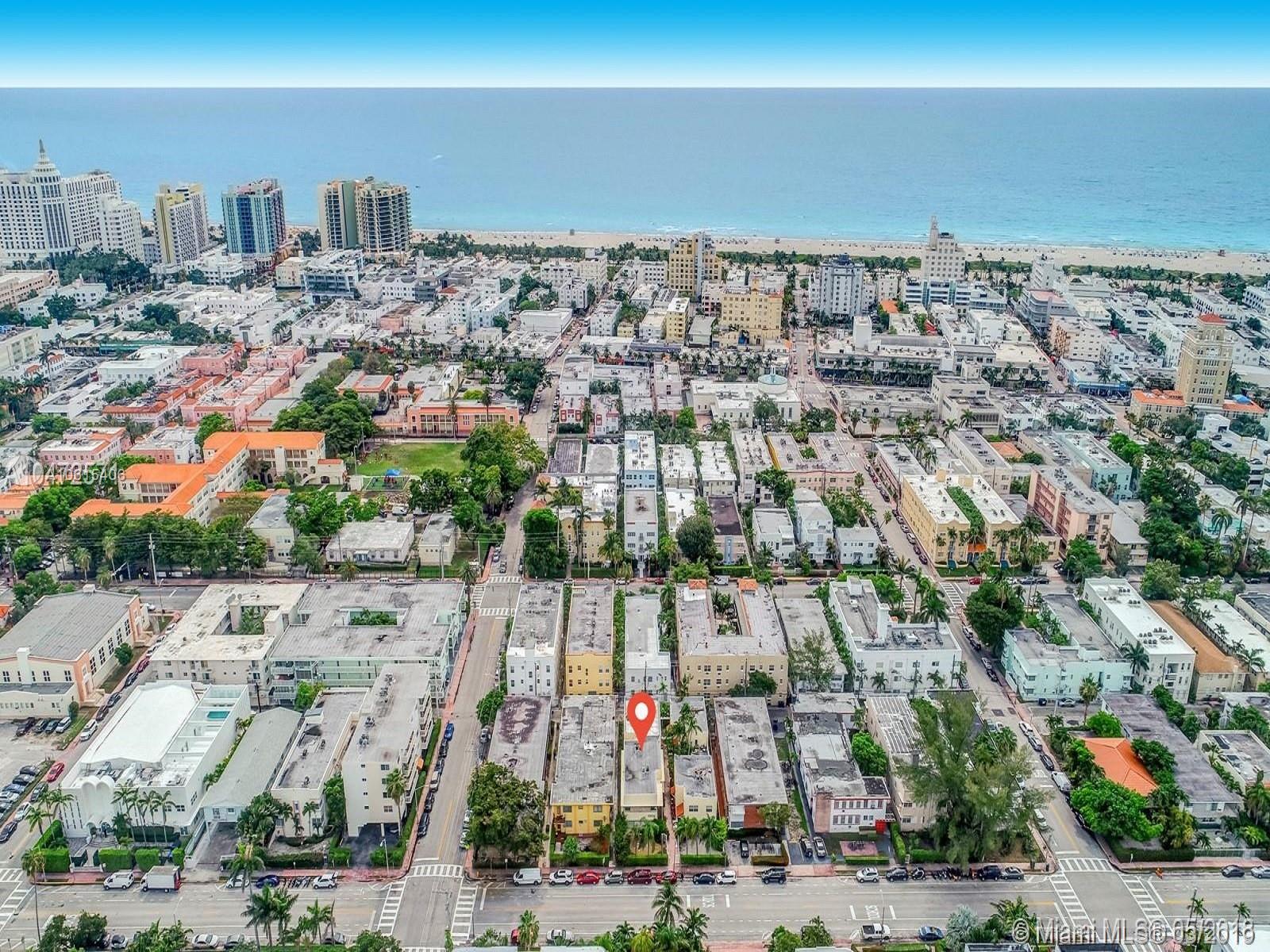 Return to Paradise Take a cue from this 1/1 sited 5 blocks from the white sands of South Beach! Sun drenched upstairs corner unit that has been renovated throughout. European kitchen cabinetry, upgraded bathroom fixtures, wood floors, fully furnished! Unit has roof rights with small stairwell next to front entrance of unit! Currently leased for $1400 per month til January 2020. Lush manicured grounds in Art Deco building hideaway! Investor Delight! Pet friendly. Central Air Conditioner replaced in December 2018.
