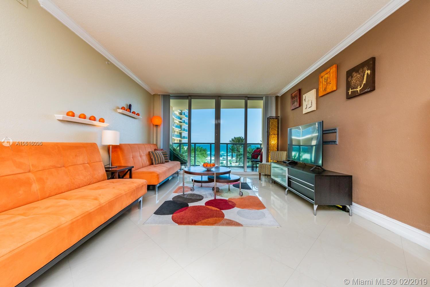 What a Great opportunity to own this bright and spacious condo with breathtaking ocean views. New porcelain floors, remodeled bathroom. Hurricane proof windows, spacious balcony, tile floors, granite counter-tops. Experience The Wave Lifestyle - one of the finest and most exclusive Luxury buildings on the Beach for the price value. Great amenities: Newly remodeled Resort style pool deck with lush palm trees, fountains, Jacuzzi, GYM overlooking the ocean and complimentary Beach services. Condo is perfect for Investors or as a vacation home. You can rent 4 times per year, 90 days minimum. Pet friendly building- can have 2 pets up to 40 LB. For primary residence for qualify buyers’ 90% financing available.