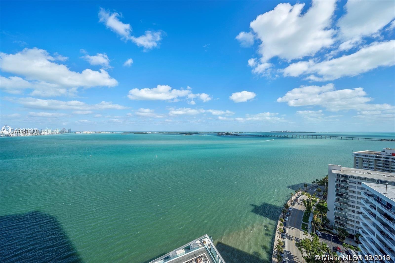 Breathtaking panoramic views of Biscayne Bay this 2 bed + den/3 bath unit features marble floors, kitchen w/ Italian cabinetry, stainless appliances, wine cooler, cappuccino maker, marble baths, private elevator foyer, custom closets and touch scr een communications.