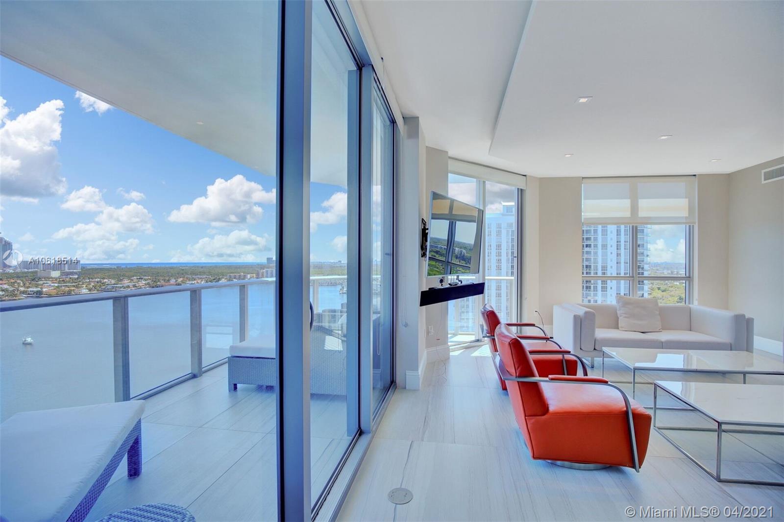 Priced to sell! Experience stellar panoramic views of the intracoastal toward the ocean from this stunning & desirable Southeast corner 3 bedroom, 3.5 bath sky home at Marina Palms Residences. Beautiful natural toned porcelain flooring in all living areas & marble fitted baths. Enjoy a gourmet kitchen fitted with Snaidero Italian kitchen cabinetry as well as Wolf, Sub-Zero & Miele appliances. Professionally designed by 'Interiors By Steven G', this turnkey residence reflects true Miami style. Marina Palms offers every amenity including smart technology, impressive fitness center, infinity pool, spa & 24 hour valet, concierge, children's area, news café & full service Marina & Yacht Club. The residence has 2 assigned tandem parking spaces & storage. PLEASE USE SHOW ASSIST TO SCHEDULE