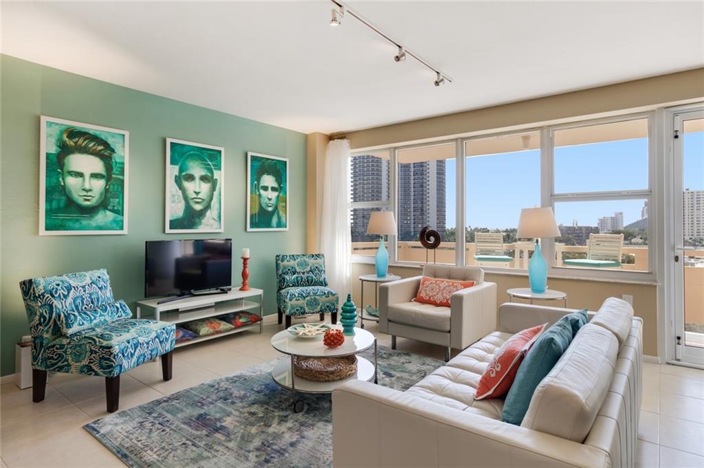 Artistically decorated and fully renovated one bedroom one bathroom apartment. Open updated kitchen with wood cabinets, stainless steel appliances and granite countertops. Tile floors throughout all of the living spaces. Hurricane impact windows and door installed. Fully renovated bathroom. Ample storage and closet space including two walk ins. Central air conditioning. Large private balcony with fantastic views and a South East exposure. Great amenities including a tropical garden area with a 30 x 60 heated pool. Association states one Buyer must be 55 plus. No pets or rentals. Coral Ridge Towers South is a fantastic community located on the barrier island between the Ocean and Intracoastal Waterway. You will love living here!