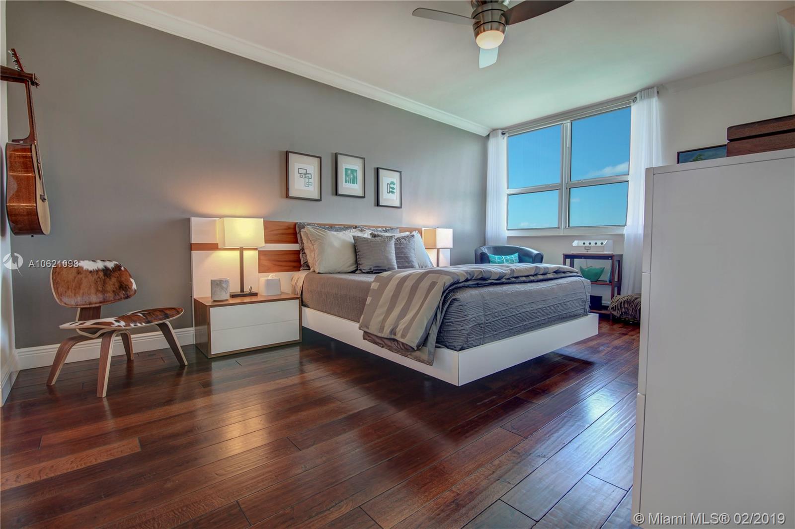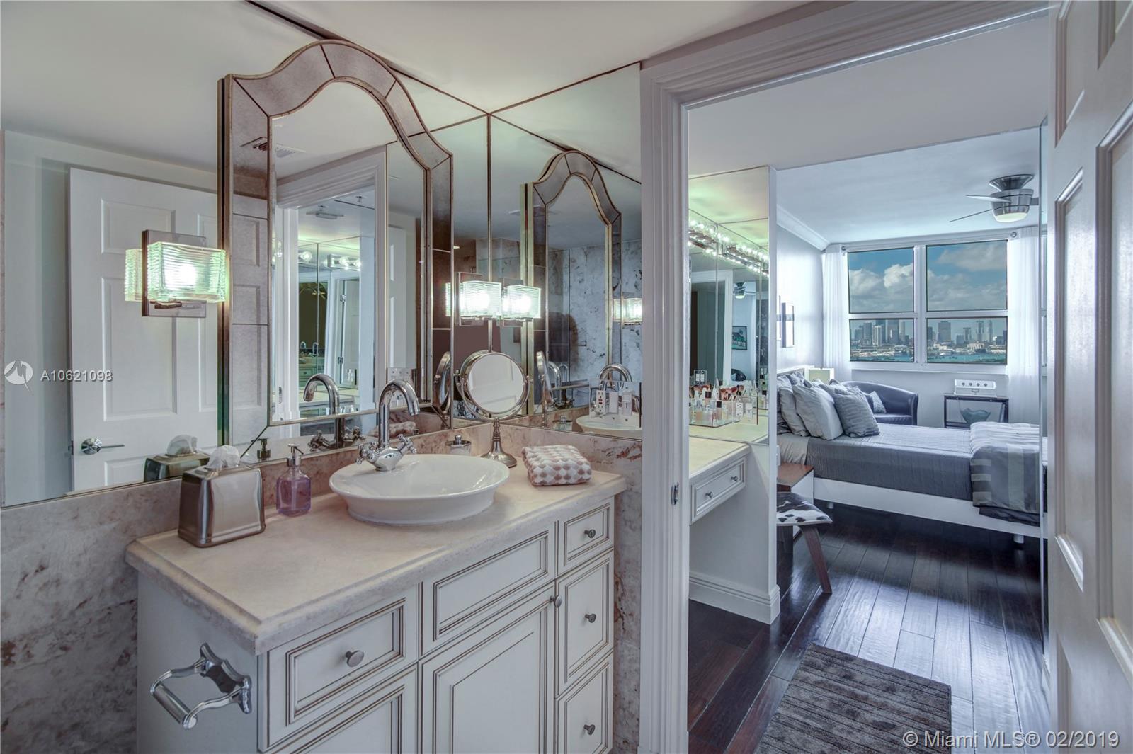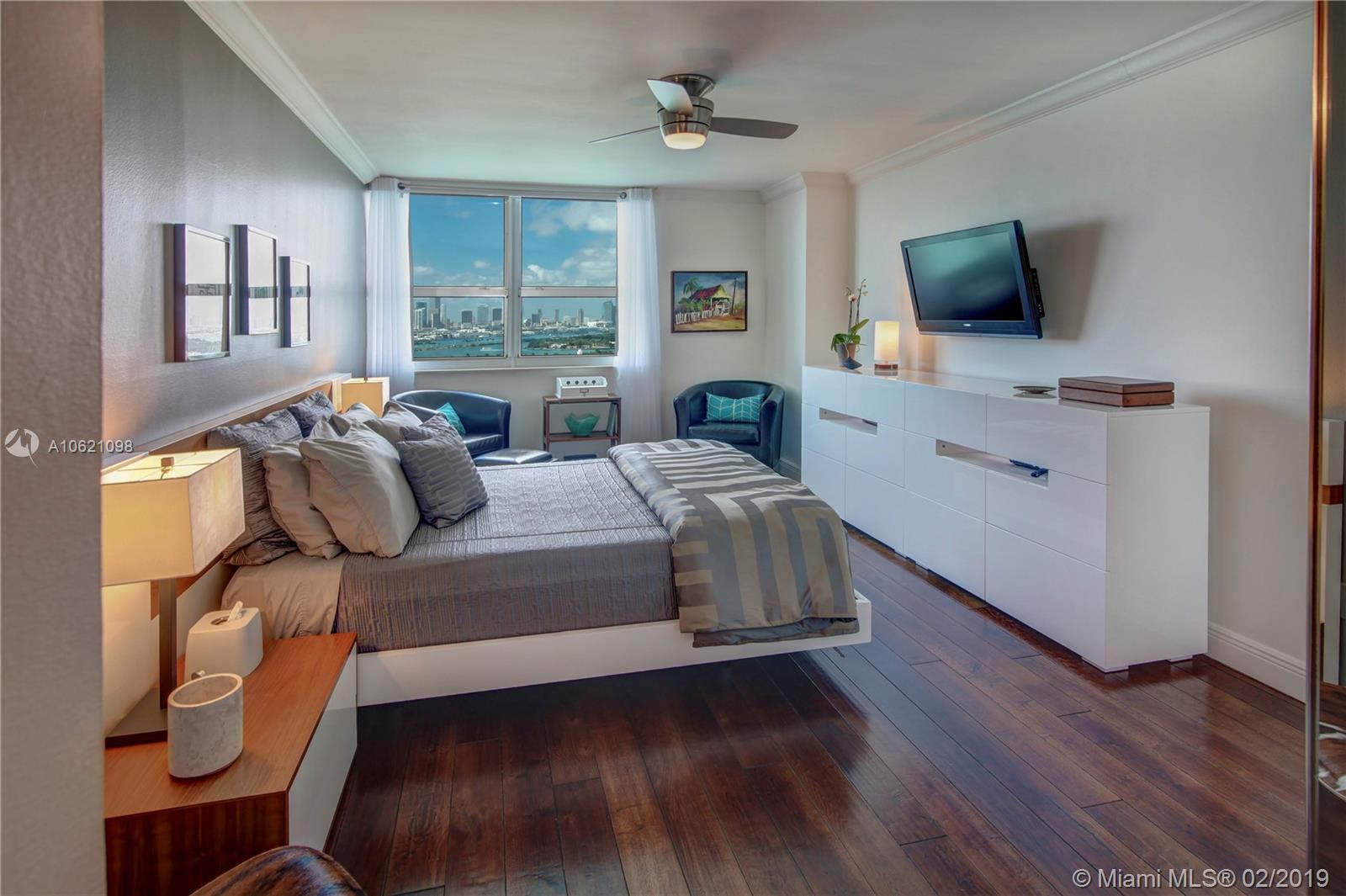 Unobstructed Direct Bay views of Biscayne Bay with the Miami skyline. Sit on your Balcony or Lay in Bed as you watch the multi-colored Sunset or the Cruise Ships depart on their voyages. Furnished Renovated 2 Bedroom Split Floorplan in the Heart of Miami Beach. Amenities include: Tennis Court, 2 Pools, Gym, in-building Hairdresser and Grocery store. Boat Slips available. Two Nearby Grocery Stores: Whole Foods (8 minute walk) and Publix (4 minute walk). Centrally located, the Floridian, is near South of Fifth, West Avenue, Sunset Harbour, and the Beach.