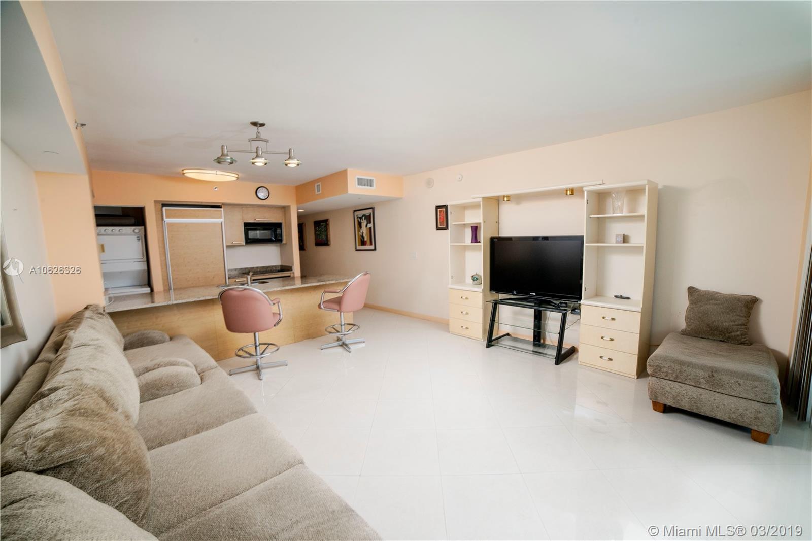 Remodeled studio to 1 Bedroom. 1 Bath. Fully FURNISHED. Amazing ocean and pool view. South view. Very bright unit. Granite counter top. Unique pool deck with 5 pools with great restaurant! Awesome 2 story Fitness club with the ocean view! Beach access with service. Great for Investment. Can be rented with no renovation. Spectacular SPA with cold and hot pools, sauna, steam room.