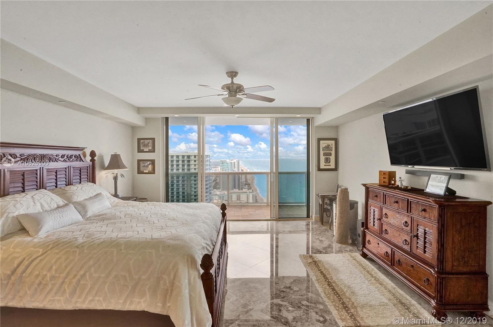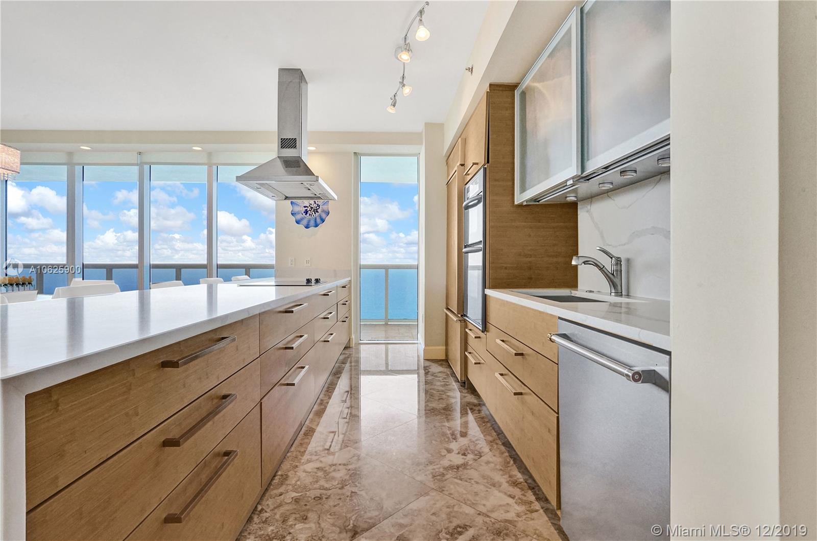 Spectacular corner unit on high floor offering views to South Beach looking south and to Fort Lauderdale looking north. Watch cruise ships sailing by as you relax on your 586 sq. ft. balcony! The apartment has been substantially renovated & meticulously maintained. Gorgeous kitchen with stone quartz Calacatta waterfall countertop. Eurostyle cabinetry & Kitchenaid appliances. Marble floors throughout. Surround Sound System. Master bath also has stone quartz Calacatta counters and new dual sinks. Soffits have been installed throughout the apartment with LED lighting. Custom made folddown Murphy bed system in the den will stay. Custom sliding glass doors on den for added privacy. Comes with one of the best assigned parking space. A/C 18 months old. Can be offered turnkey. Easy to show.