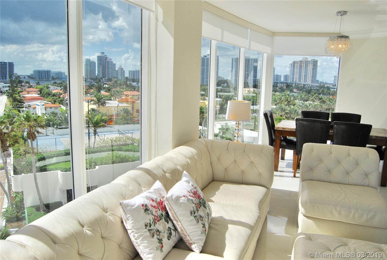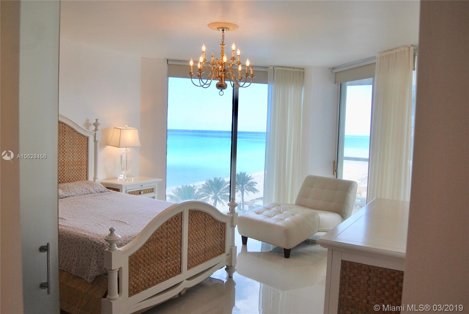 Stunning direct ocean and Intracoastal views corner unit with 2 beds + den and 2.5 baths. Amazing glass private elevator directly opening into your own living room, floor to ceiling windows, ceramic floors, Italian kitchen, wraparound balconies, 2 terraces, laundry room inside the unit. This is a top of the line and the only boutique building in sunny isles. The building has all the amenities a luxury one would demand, great location close to Aventura and Bal Harbour malls and shops across the street.