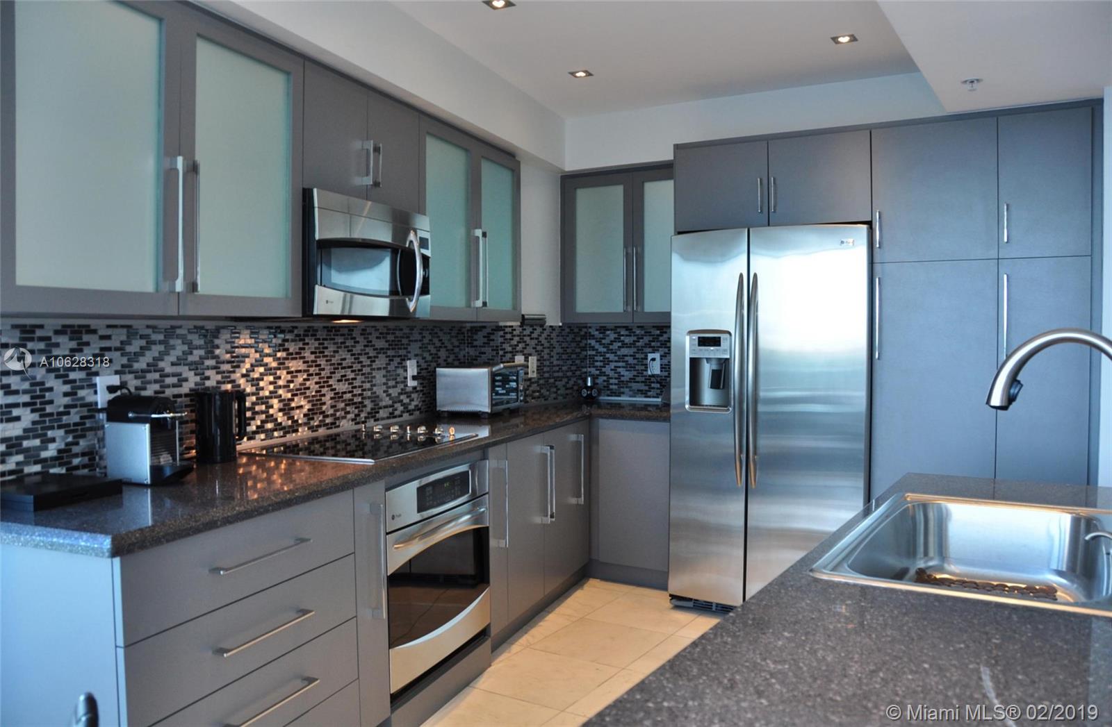 Stunning 3 bedroom. 2 bath Furnished unit in highly desired One Miami Building with water views from every room. Property has been completely renovated, nothing was left original. Some of the features include: Carrera marble flooring, upgraded kitchen with quartz countertops, high end stainless steel appliances, custom glass doors, upgraded bathrooms with floating vanities, enclosed glass showers, custom made mirrors and backsplash, built in entertainment and media centers and much much more!