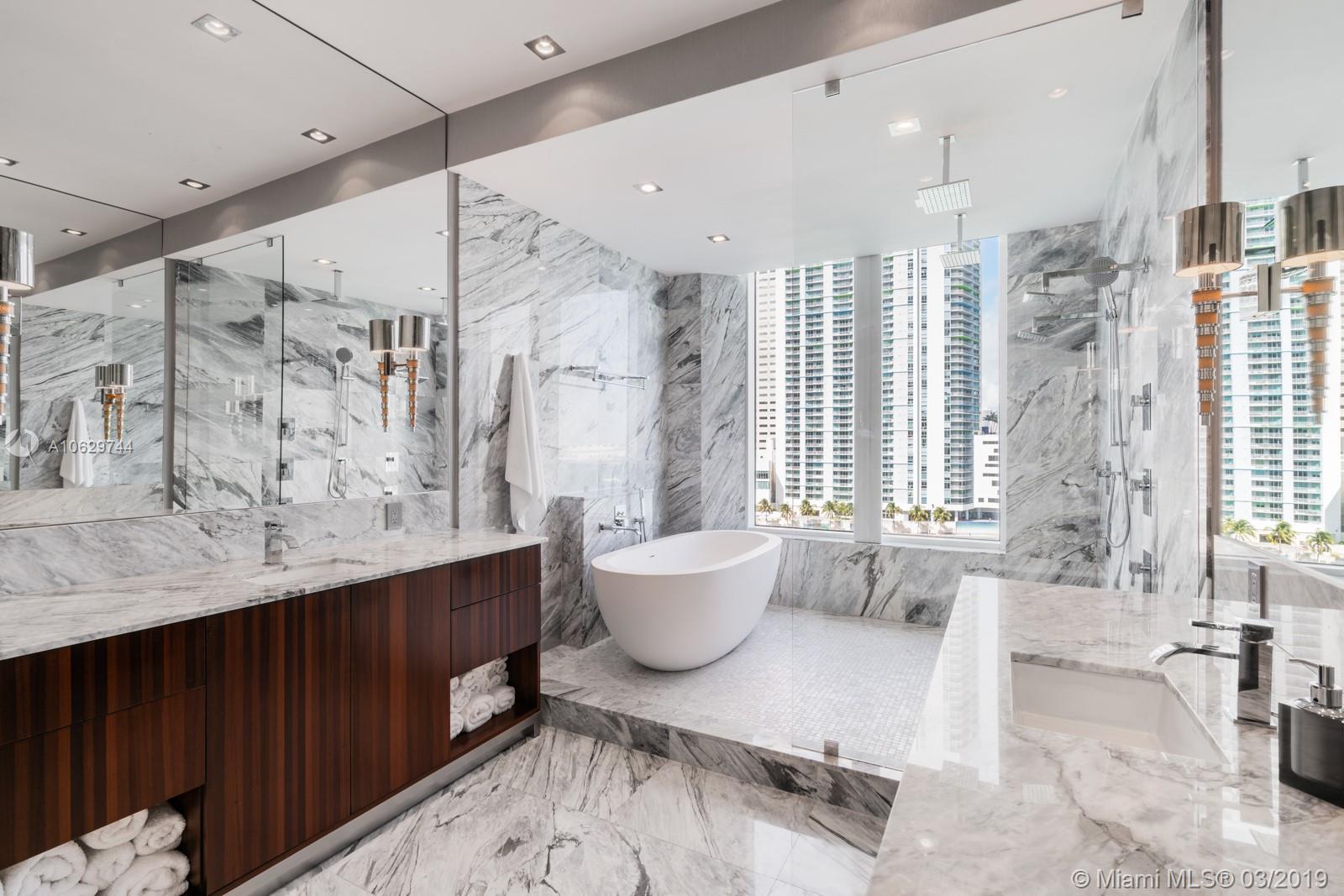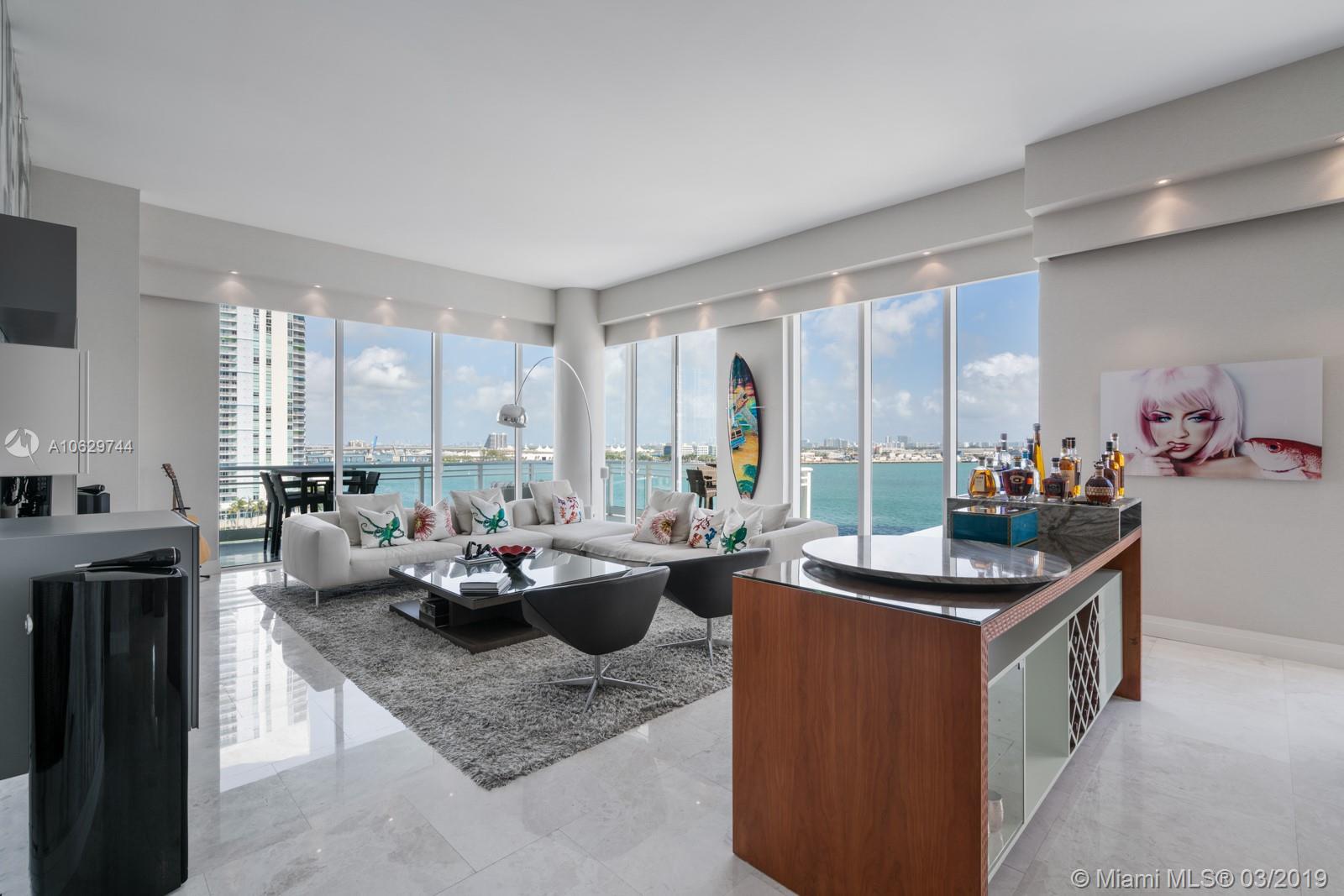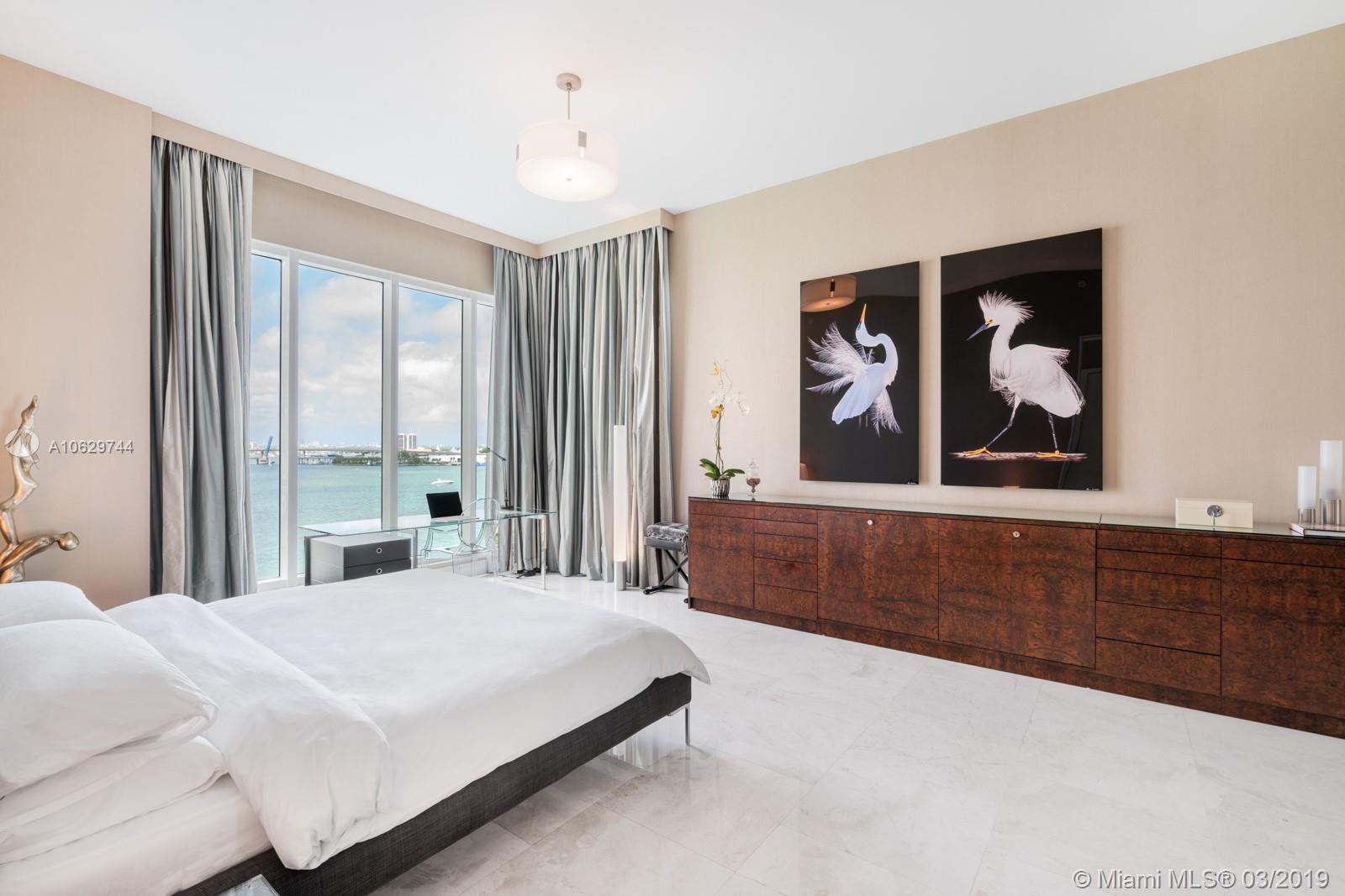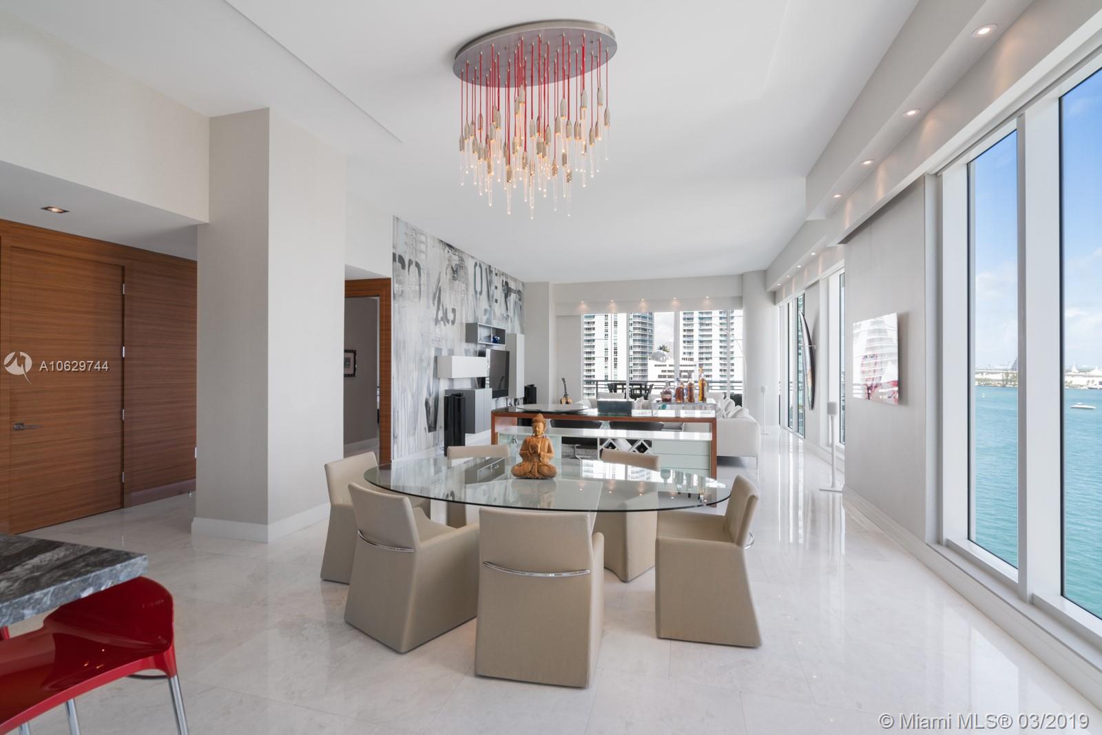 Spectacular unit in Asia, Brickell Key’s premier luxury building, remodeled in 2016. Soaring 12 ft ceilings and breathtaking views of Biscayne Bay. Private elevator entrance and vestibule. Private storage on same floor in service hallway. Only two units on the 8th floor with an outdoor breezeway separating them. 2 bedrooms + den. Completely remodeled Master Bath with free standing tub & large double rain shower. New wallpaper throughout and wood in entry and front hallway. Updated kitchen features unobstructed water views, Miele and subzero appliances. Soffits feature hidden electric blinds and recessed lighting. Full service building boasts private tennis courts, 24 hour concierge, racquet ball & basketball court, gym. Enjoy the restaurants, marketplace, parks and playgrounds.