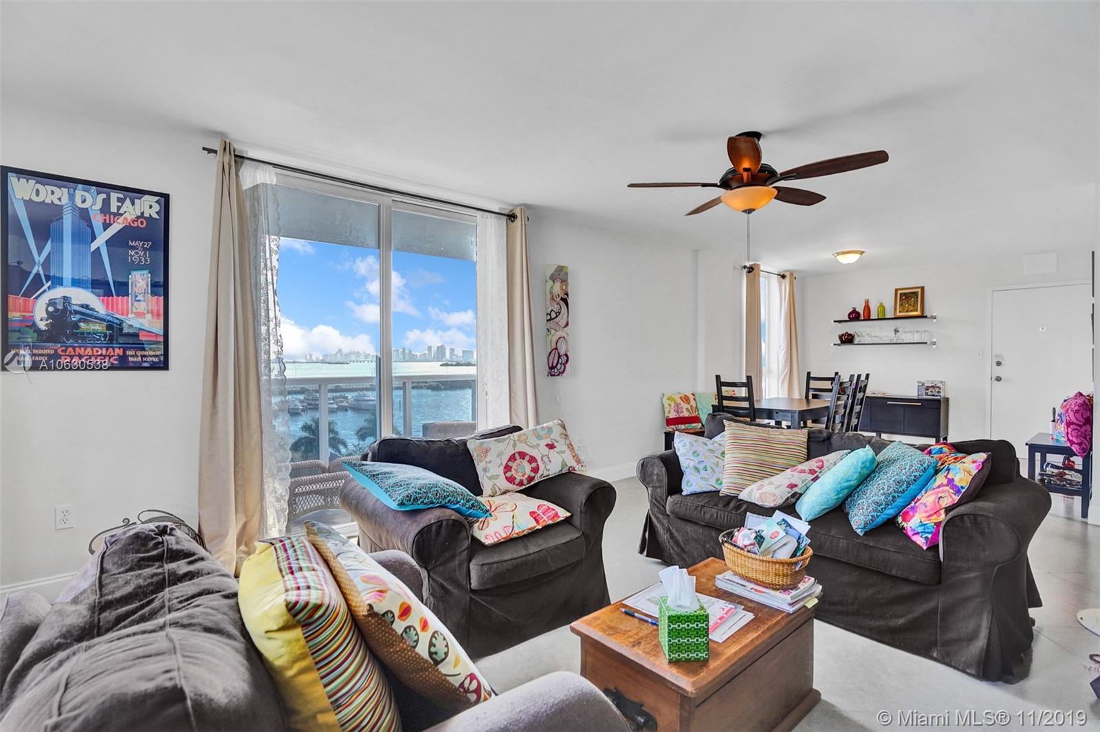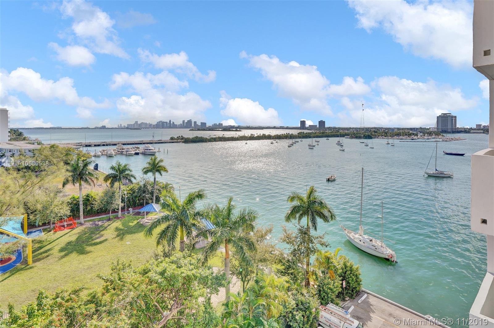 Spectacular direct views of bay and Downtown, 2 bedrooms, 2 baths, 2 balconies in living room and master bedroom. Centrally located in North Bay Village within walking distance of restaurants and close to 71st street beaches. Bayside pool, covered parking, guest parking and secures entry. Don't miss this opportunity.