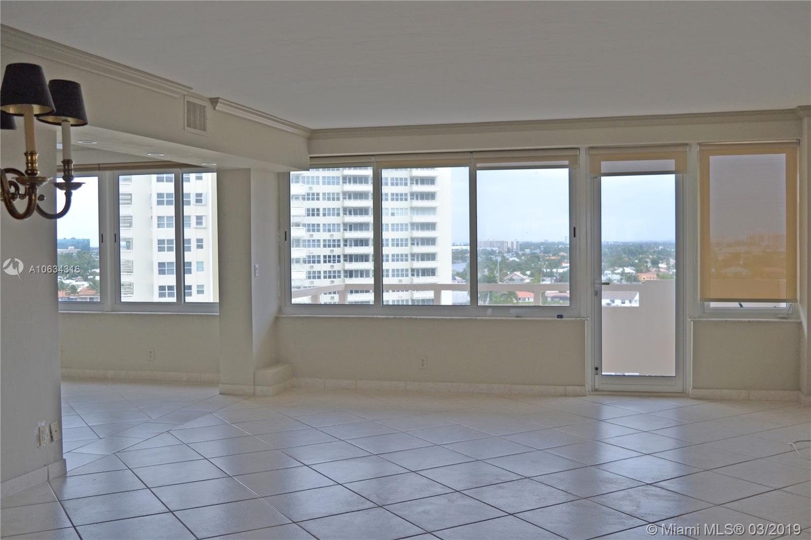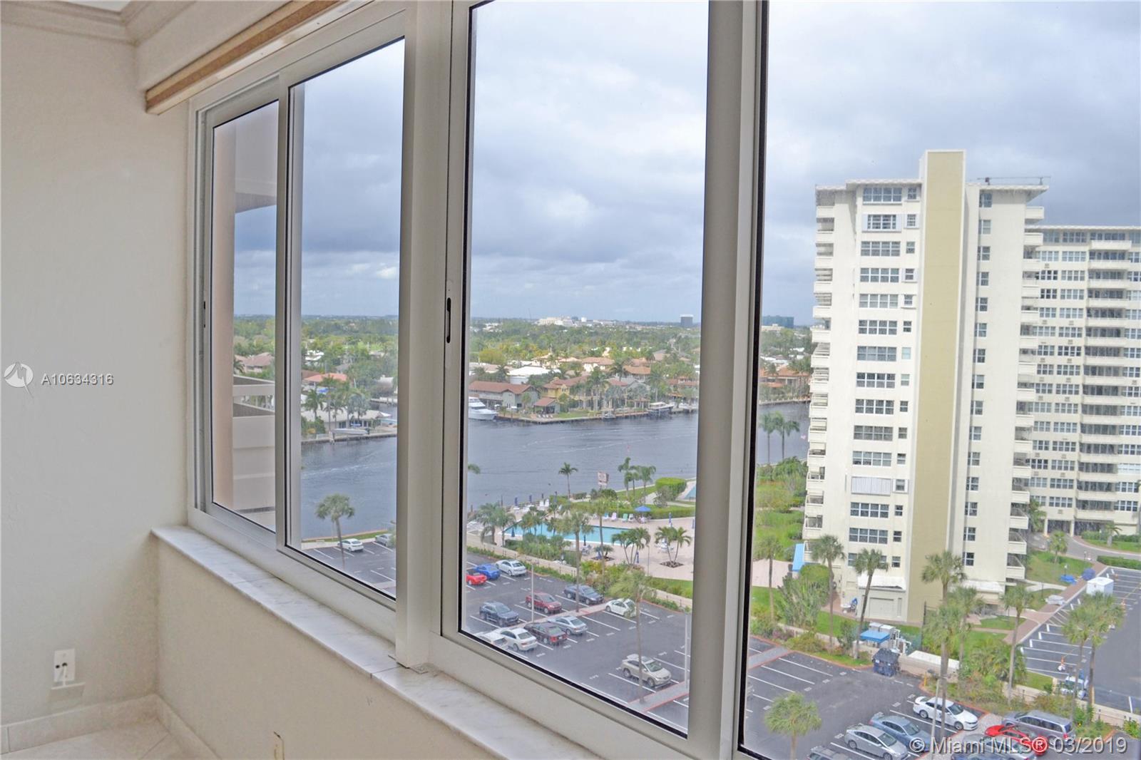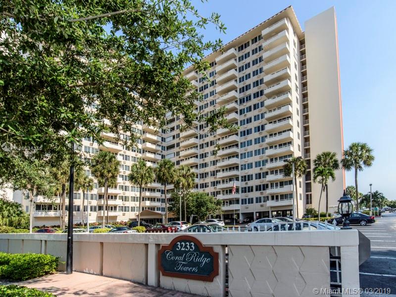 This Rarely Available 3 Bedroom Unit Provides A Wonderful View Of The IntraCoastal And Ocean From Your Living Room And All Your Bedrooms. It's The Largest Unit On The Market In Any Of The Coral Ridge Towers! Laundry Room has Washer & Dryer (Grandfathered In- Complex No Longer Allows Them!), & Utility Closet With Tons of Really Smart Storage Space. Central Air & 3 Ceiling Fans. Second Bedroom Has Been Opened Up to Create An Enormous Living Room, But Can Easily and Economically Be Enclosed Again Should That Be Your Desire. 24 Hr Security, Heated Pool, Fitness Center, Manager On Site & More- Ft Lauderdale's Premiere 55+ Community!!