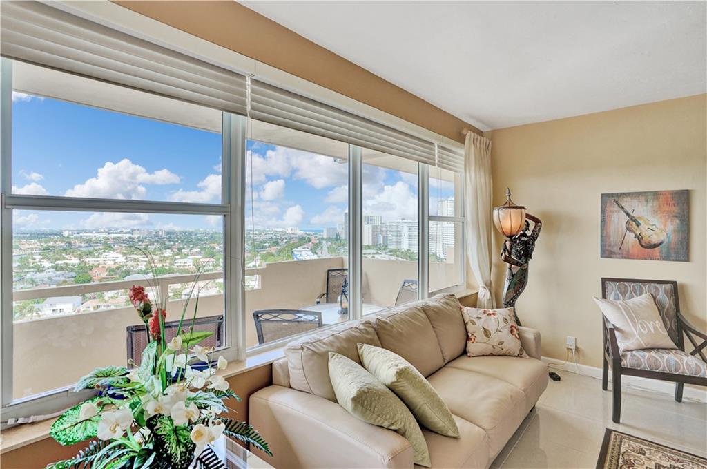 Elegantly designed and renovated Penthouse apartment with breathtaking Panoramic views of the Intracoastal, Ocean and Galt Mile coastline. Very tastefully furnished including Designer Murphy Bed in second bedroom that's been modified and can easily be returned to its original layout ...Truly a turn key. Coral Ridge Towers East includes exclusive use of Intracoastal front clubhouse and dock. Beautifully landscaped grounds with Olympic size Heated Pool, Bocci court as well as Pool side Gym...