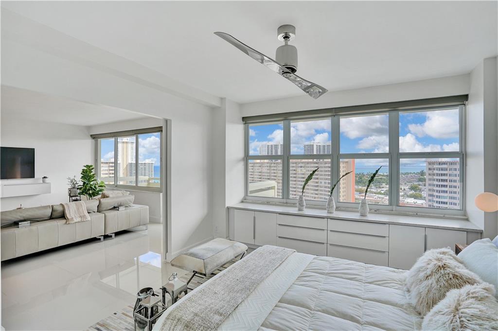 Amazing Ocean and Ft Lauderdale Beach Coastline views from this totally Renovated apartment in the sky. Open floor Plan with Designer Kitchen, Quartz counters, Porcelain floors throughout, Innovative Den/Guest room, High Impact windows & balcony door. This apartment is unmatched and must be seen to fully appreciate. CRTN co-op is on the Intracoastal only steps to the Beach, Banks, shops and fine dining at Ft Lauderdales North Beach and Galt Ocean Mile.
