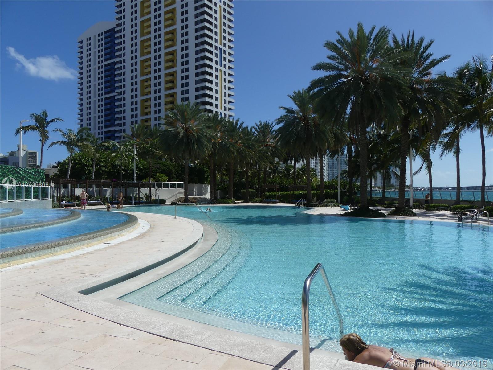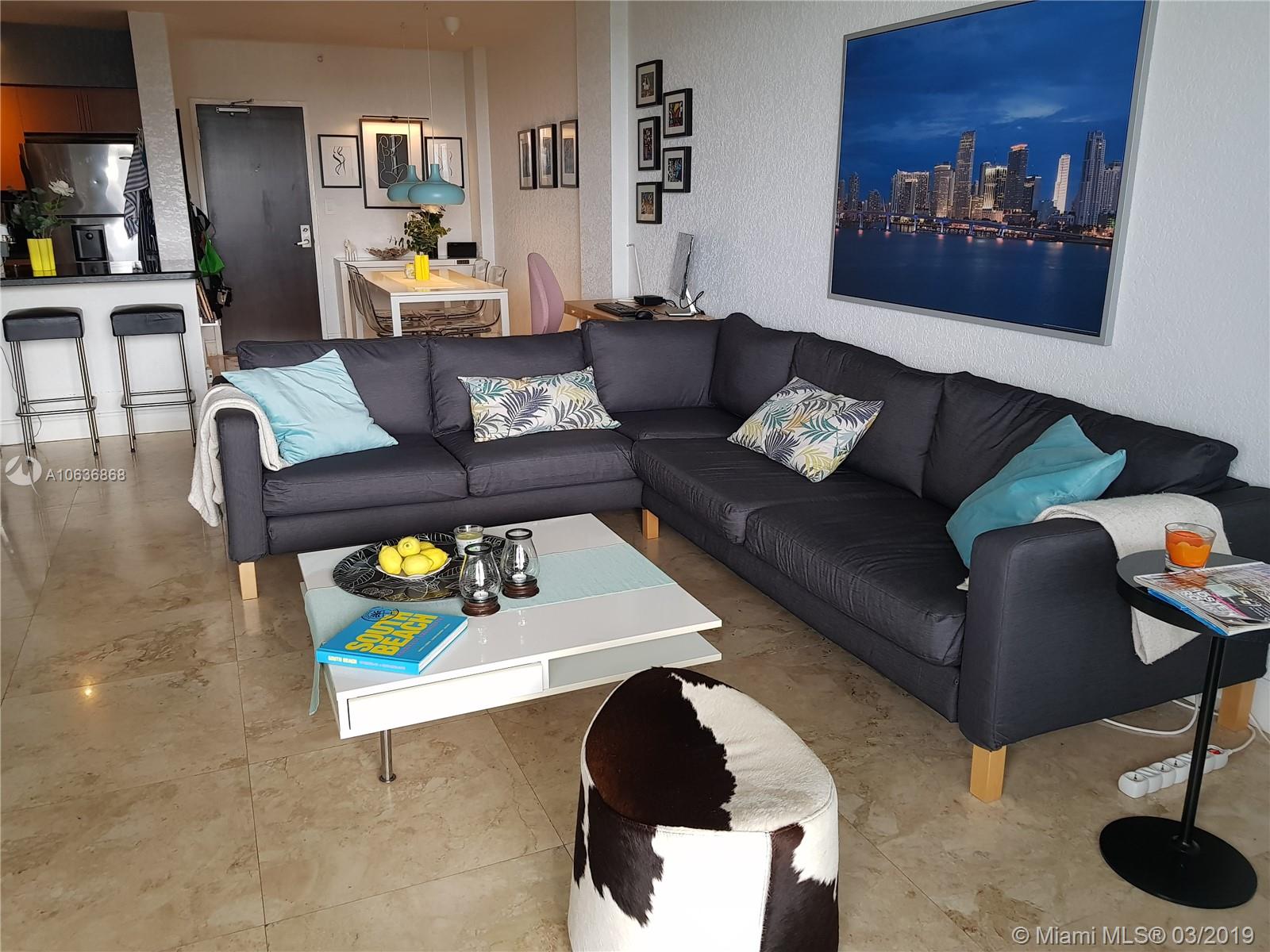 Enjoy spectacular sunsets over The Bay and Miami skyline from this turnkey upgraded 1BR. Fully furnished. Features two large Infinity Pools. Walking distance to Lincoln Road and minutes to the beach. Walking distance to Lincoln Road shops, restaurants, movie theater, the beach and more. Can be rented immediately, 30 day minimum. Income producing - Rents for 2,000 - 4,500 a month depending on season. Incredible amenities include Spa, Jacuzzi, World Class Fitness Center with yoga, spinning, boot camp classes, beach volleyball, basketball, day spa/salon, restaurant with full bar providing pool lounge service, doggy day care, on-site dry cleaners and market/liquor store. Pet Friendly. Garage in building. The unit can be sold with custom booking site.