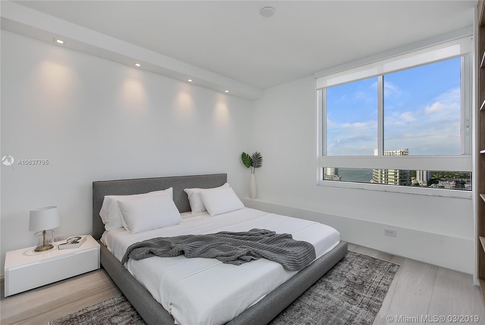 Soaring 34 floors above Miami Beach, designer finished 2/2 NE corner residence offers endless views of the Atlantic,lights of South Beach, and aquamarine waters of Biscayne Bay. Customized stone and woodwork throughout melds a modern top-to-bottom renovation with a calming beach vibe. Redesigned by renowned architecture firm,Lineaire Designs and F&S Developers, this unit features white quartz counters and lacquer cabinetry in kitchen, motorized window shades, and oversized porcelain plank floors. A deep terrace ideal for outdoor entertaining is an extension of your living area offering complete privacy. Ideally located in the heart of South Beach, The Waverly features a beautiful bayfront pool, fitness center, tennis, beach volleyball, business center, valet parking, and 24hr security.