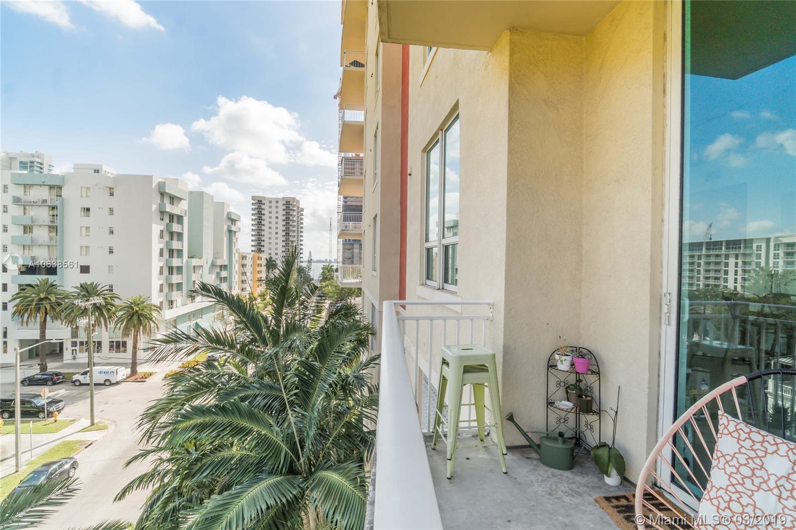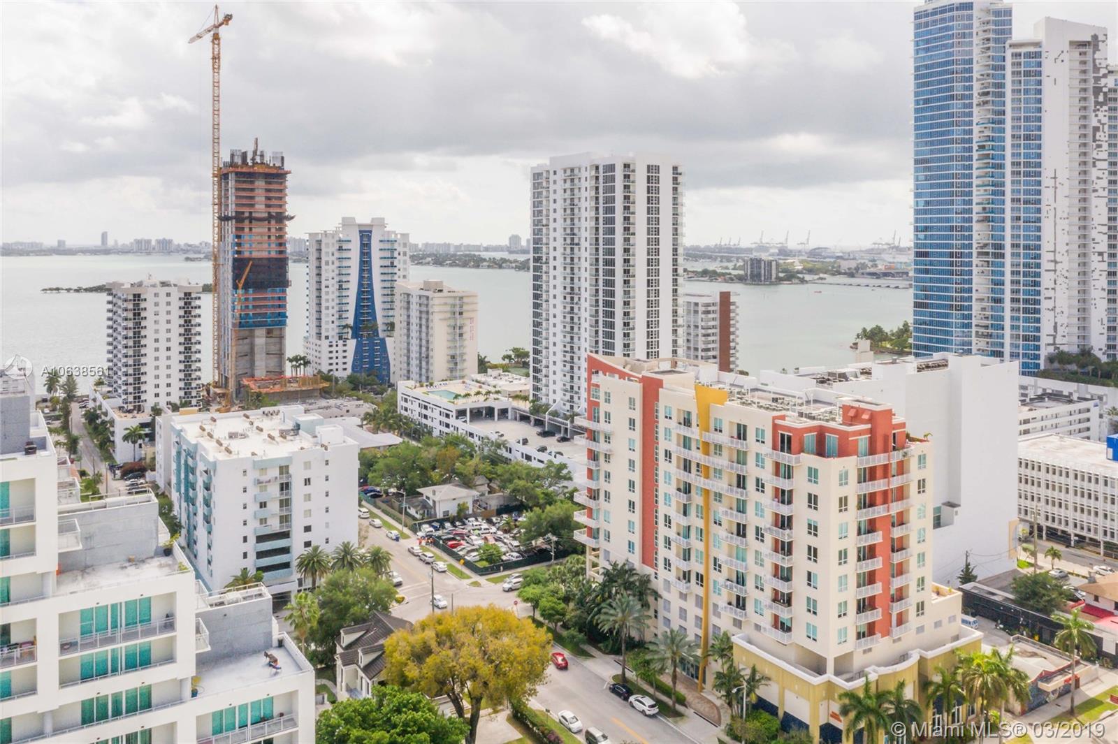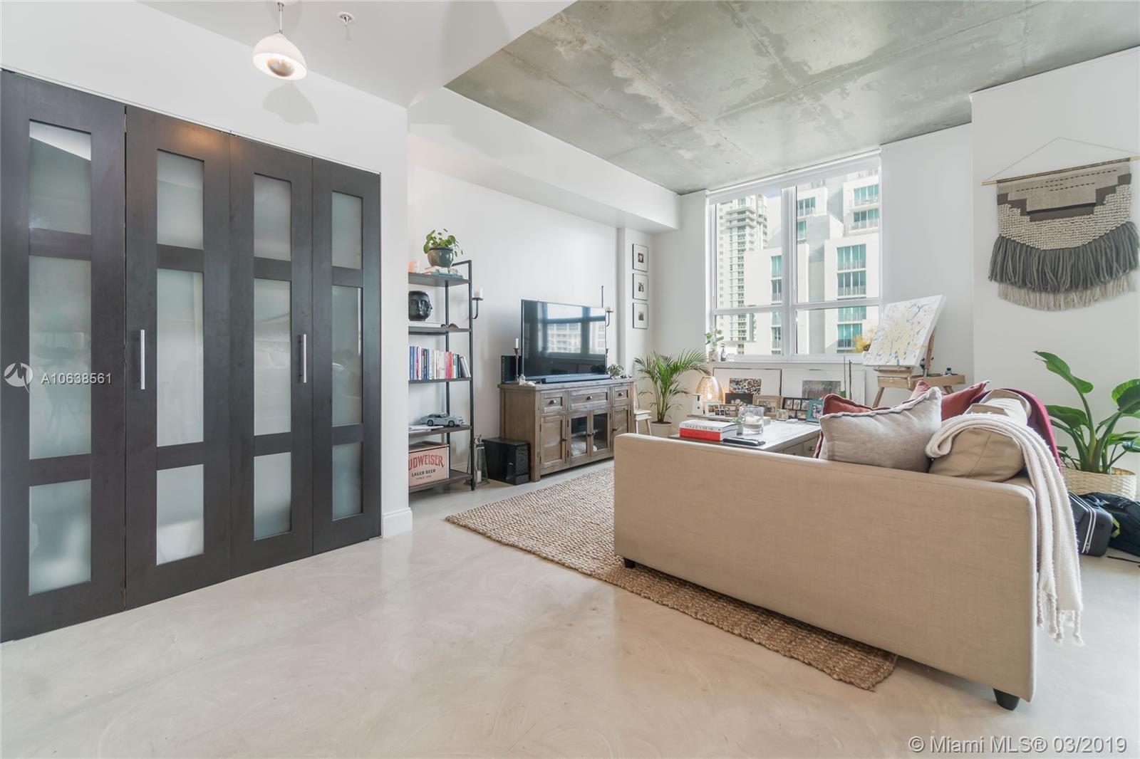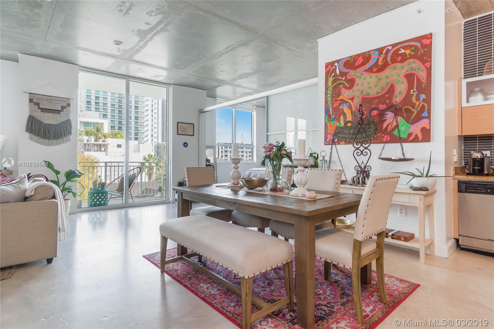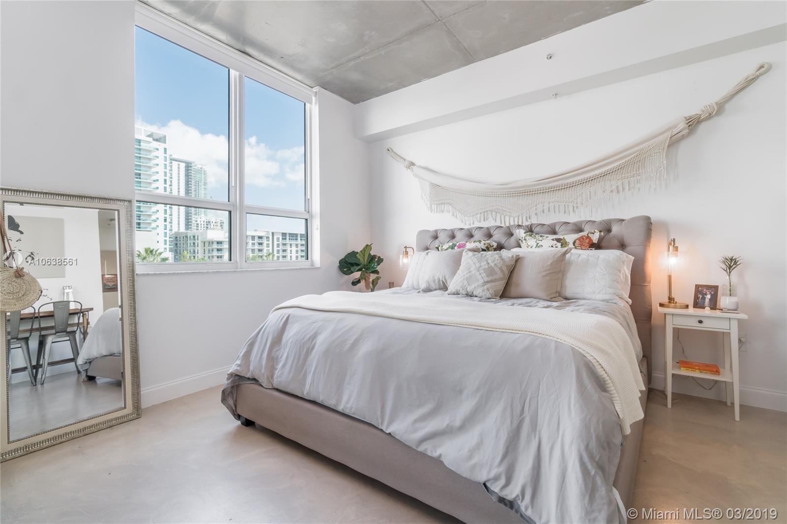 Enjoy loft living in Edgewater at boutique Uptown Lofts! Unit 503 is a two bed/two bath legal floor plan converted to a large 1 bed/2 baths (easily converted back to a 2/2). The master bedroom is divided with chic frosted glass sliding doors for privacy. This impeccable condo boasts polished concrete floors, 10' ceilings, a modern Euro style kitchen and en suite WD. The spacious balcony offers serene garden views, Bisc. Blvd and a glimpse of the bay! Uptown Lofts is a great building with only 66 condos but offering a secured lobby with 24hr. security, covered parking, fitness center and pool. Located in the trendy Edgewater area it is close to Brickell, the Adrienne Arsht center, Midtown Shops and the Design District. Great tenant in place through Oct. (Realtors read Broker remarks!).