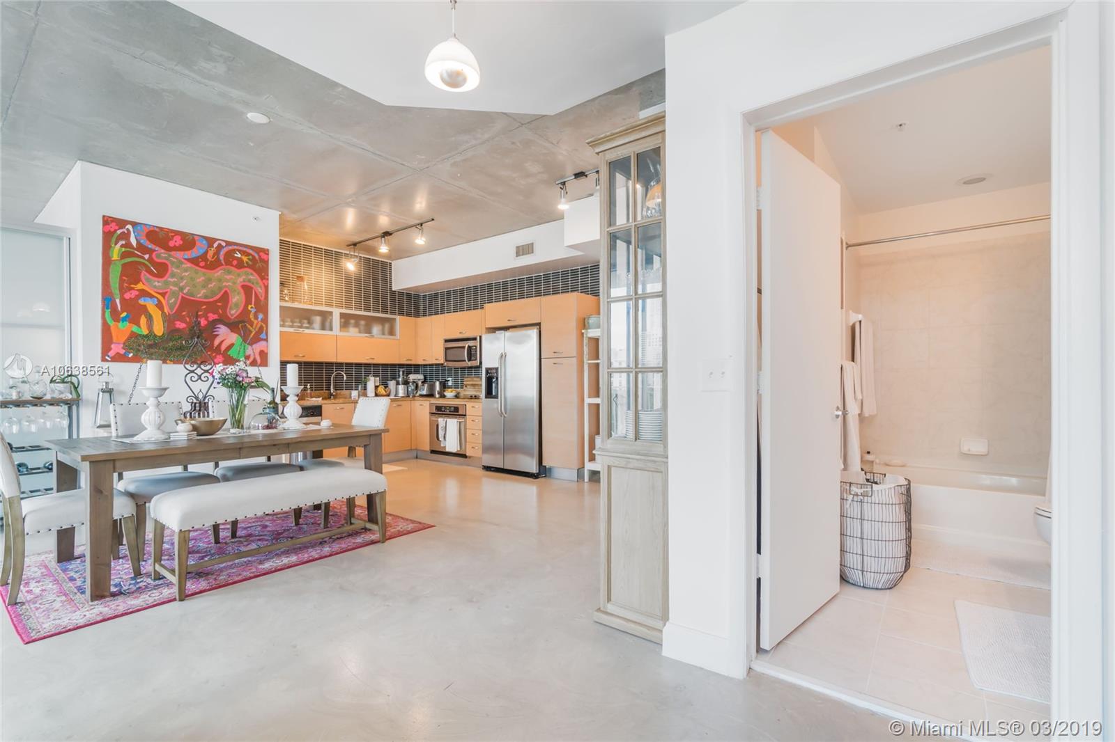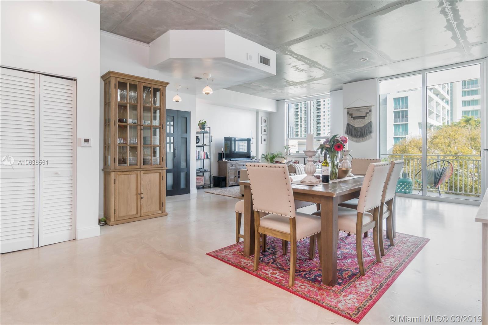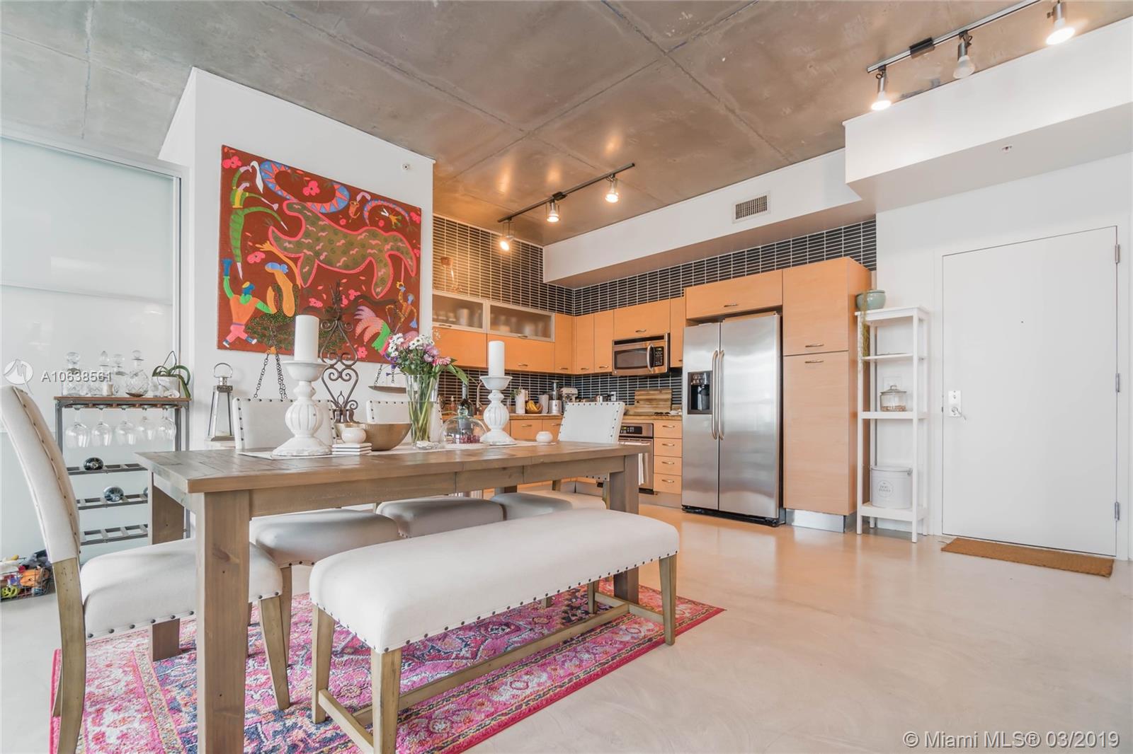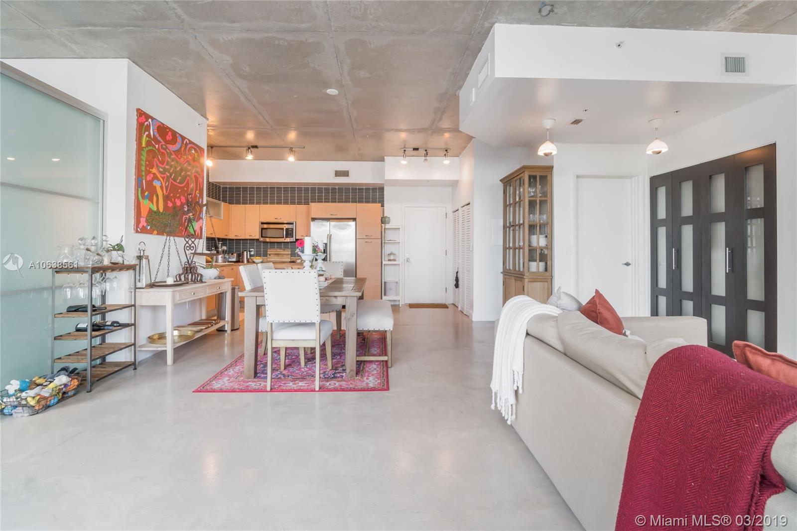 Enjoy loft living in Edgewater at boutique Uptown Lofts! Unit 503 is a two bed/two bath legal floor plan converted to a large 1 bed/2 baths (easily converted back to a 2/2). The master bedroom is divided with chic frosted glass sliding doors for privacy. This impeccable condo boasts polished concrete floors, 10' ceilings, a modern Euro style kitchen and en suite WD. The spacious balcony offers serene garden views, Bisc. Blvd and a glimpse of the bay! Uptown Lofts is a great building with only 66 condos but offering a secured lobby with 24hr. security, covered parking, fitness center and pool. Located in the trendy Edgewater area it is close to Brickell, the Adrienne Arsht center, Midtown Shops and the Design District. Great tenant in place through Oct. (Realtors read Broker remarks!).