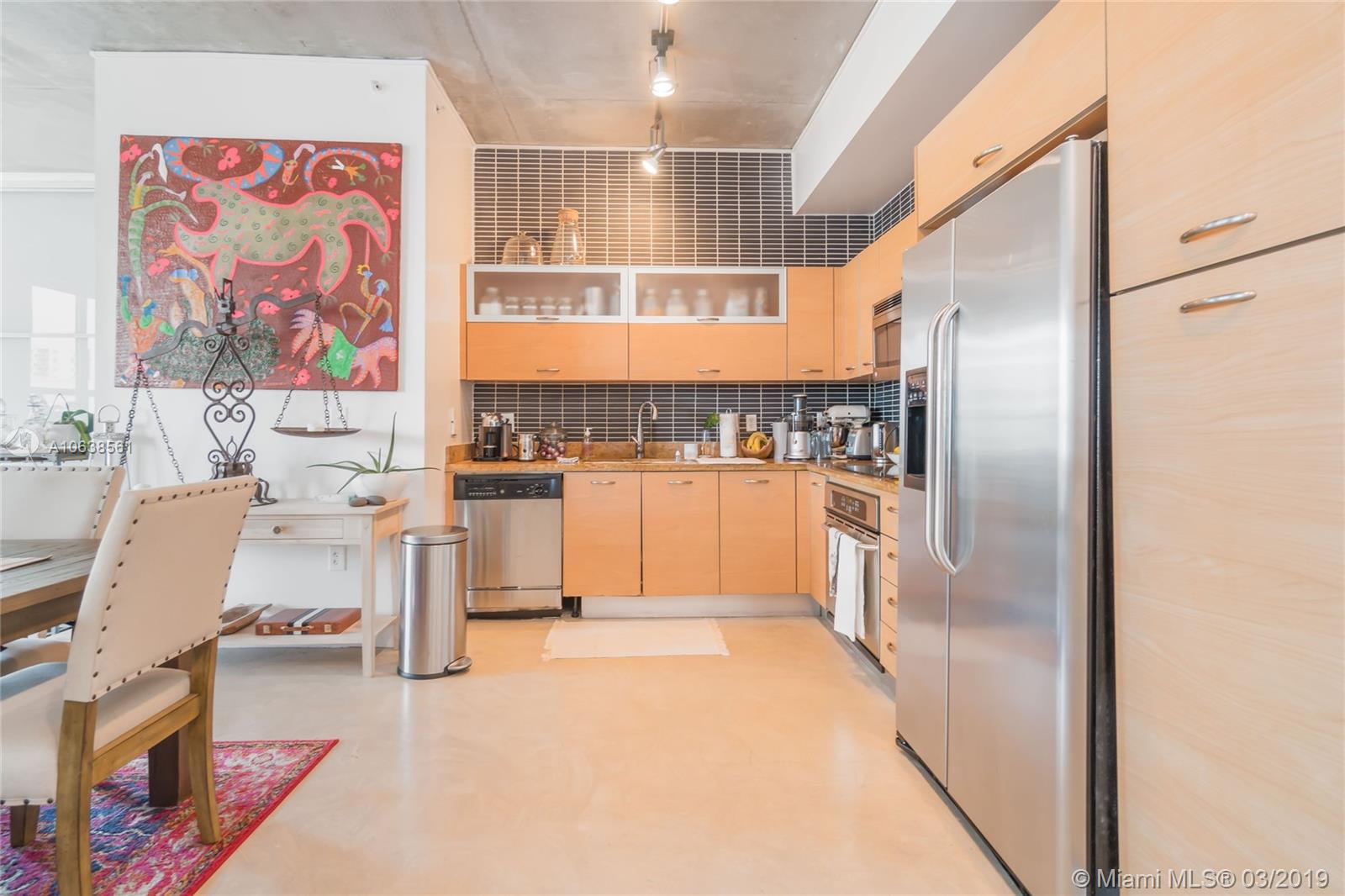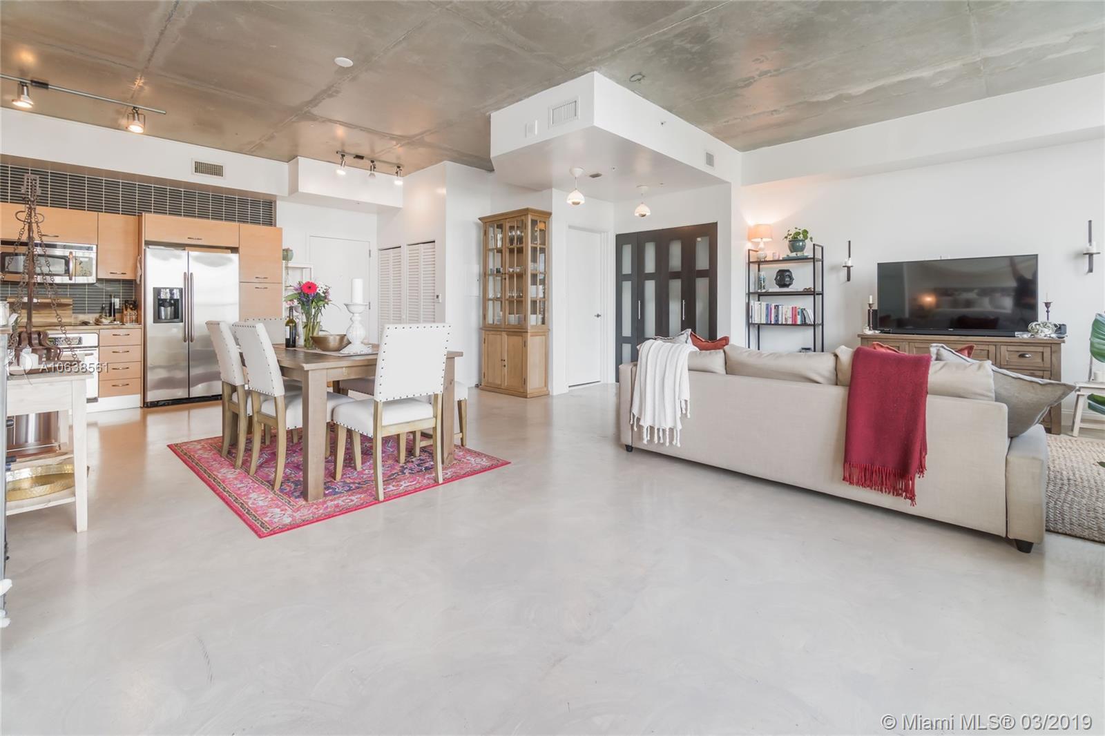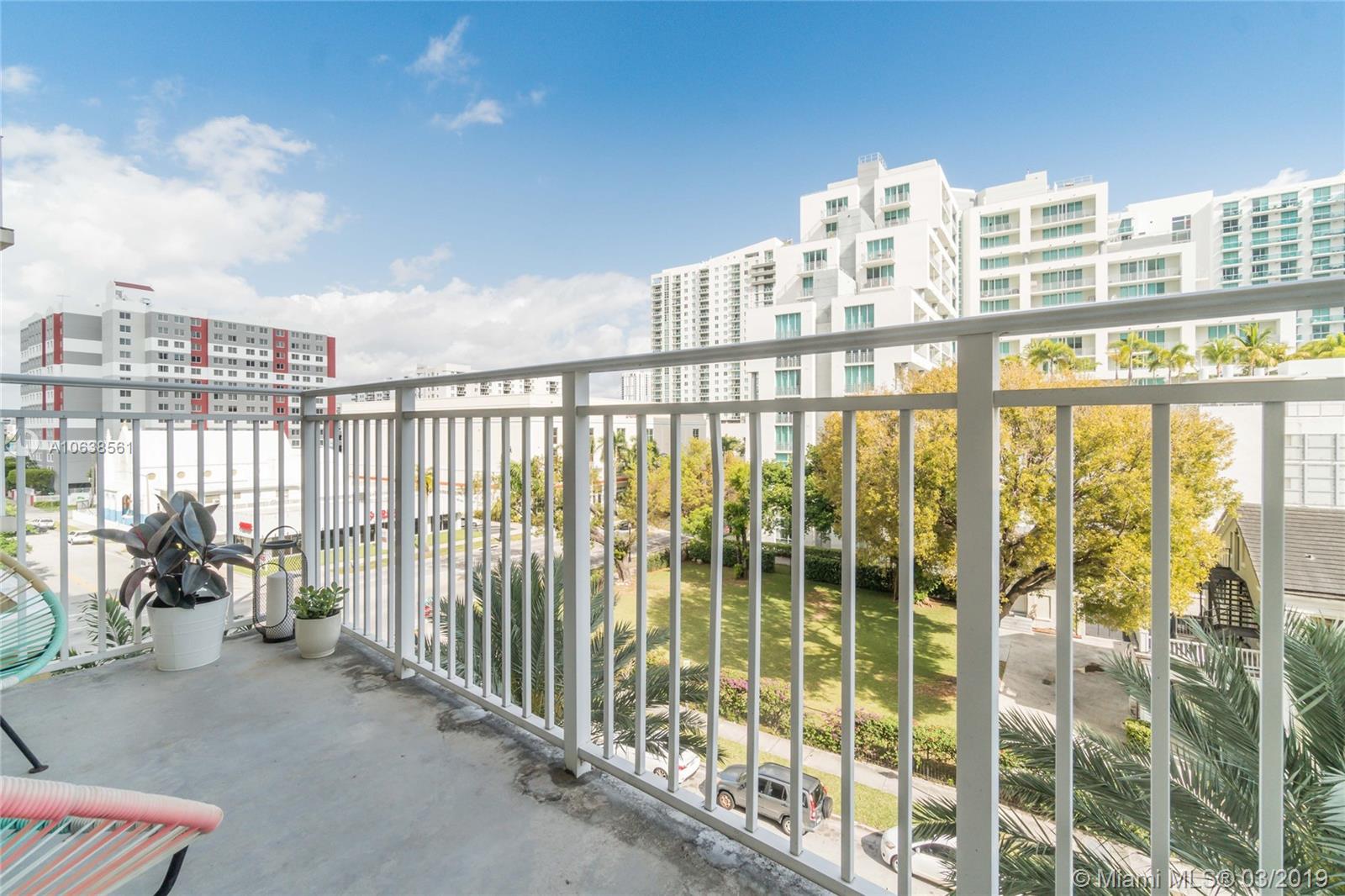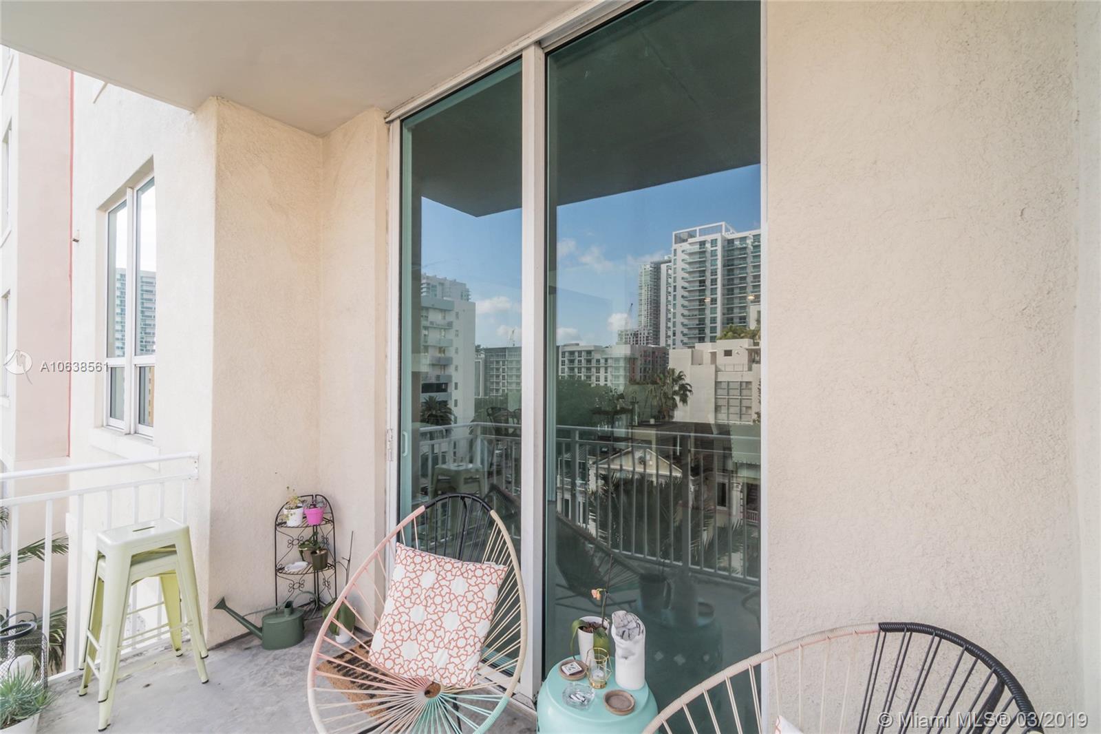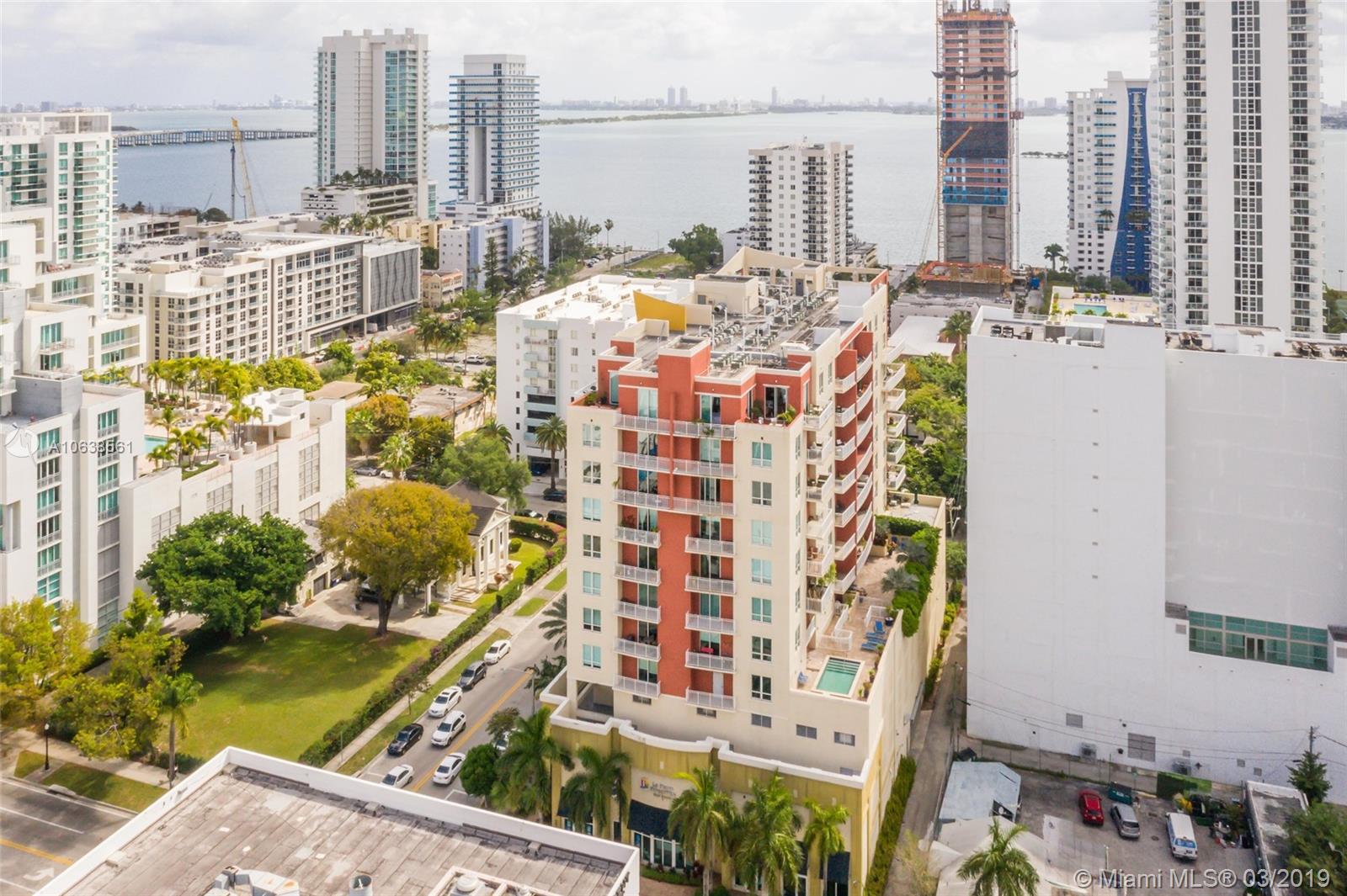Enjoy loft living in Edgewater at boutique Uptown Lofts! Unit 503 is a two bed/two bath legal floor plan converted to a large 1 bed/2 baths (easily converted back to a 2/2). The master bedroom is divided with chic frosted glass sliding doors for privacy. This impeccable condo boasts polished concrete floors, 10' ceilings, a modern Euro style kitchen and en suite WD. The spacious balcony offers serene garden views, Bisc. Blvd and a glimpse of the bay! Uptown Lofts is a great building with only 66 condos but offering a secured lobby with 24hr. security, covered parking, fitness center and pool. Located in the trendy Edgewater area it is close to Brickell, the Adrienne Arsht center, Midtown Shops and the Design District. Great tenant in place through Oct. (Realtors read Broker remarks!).