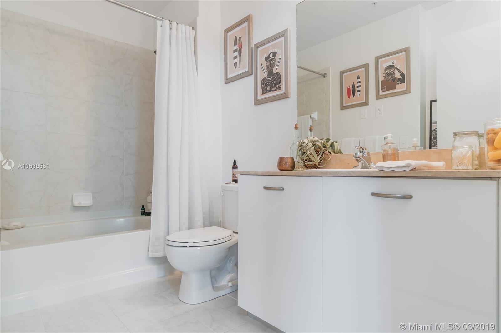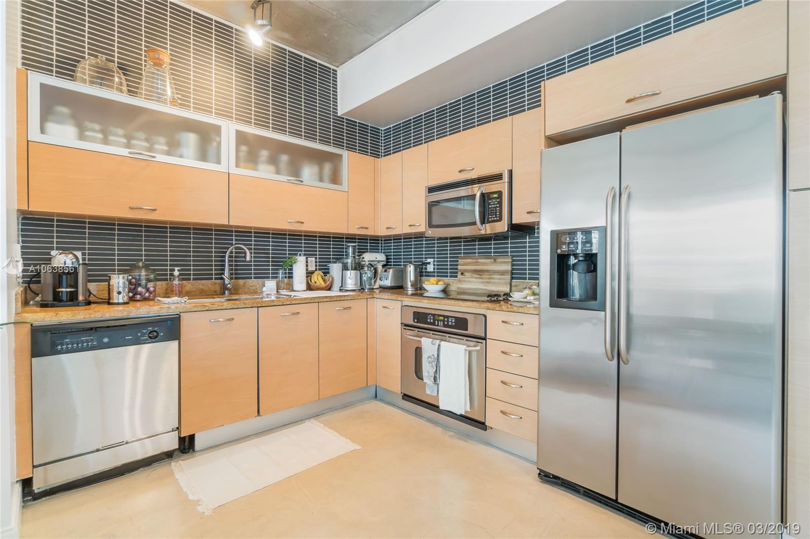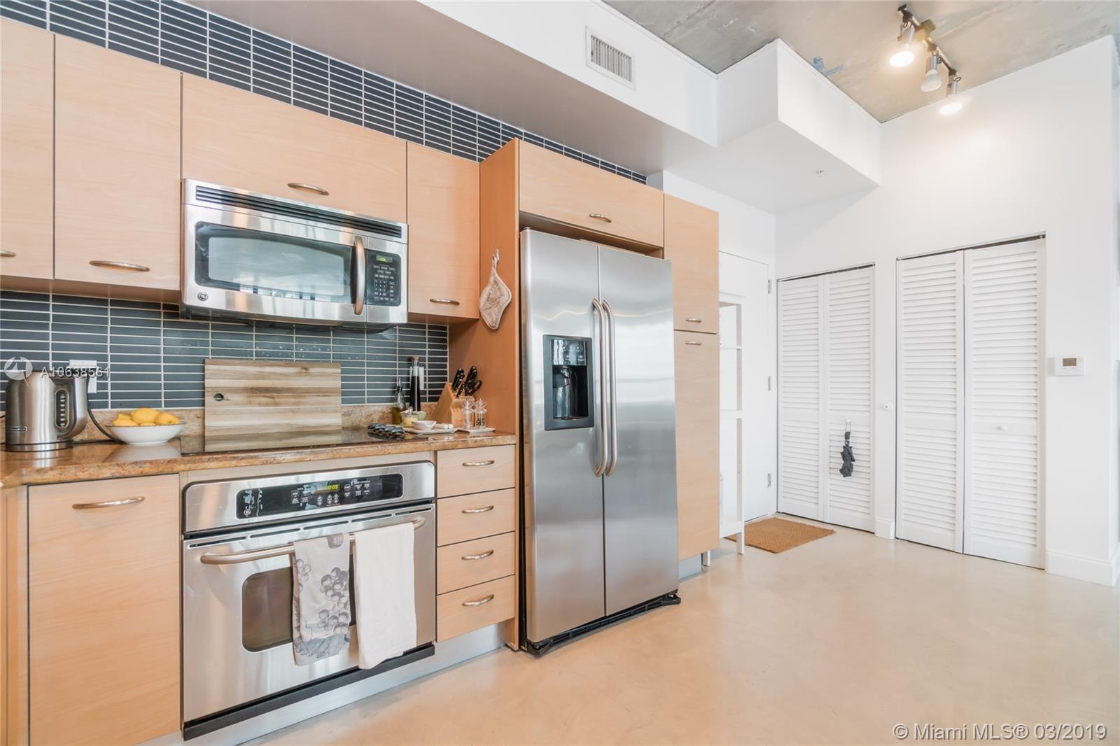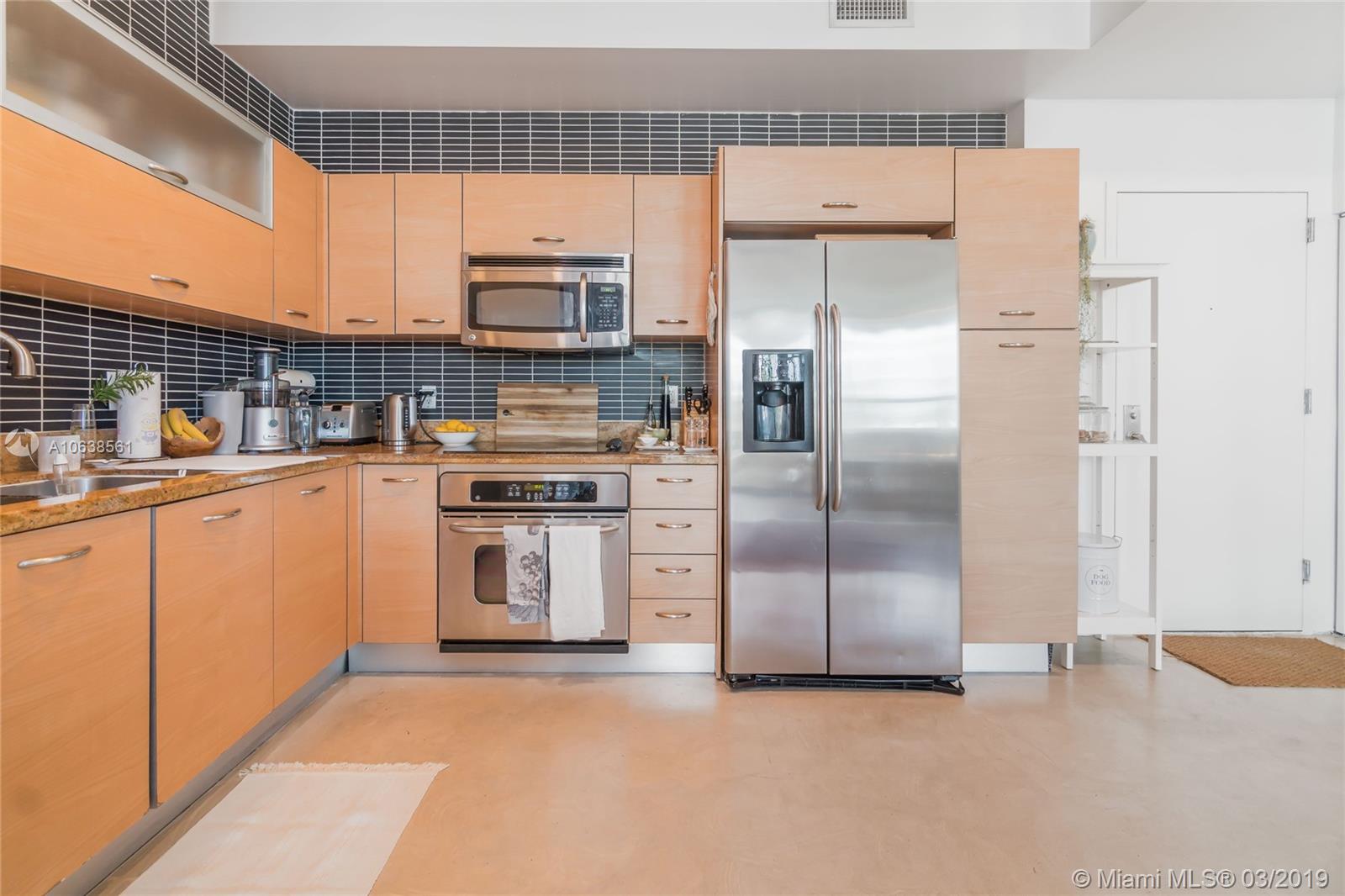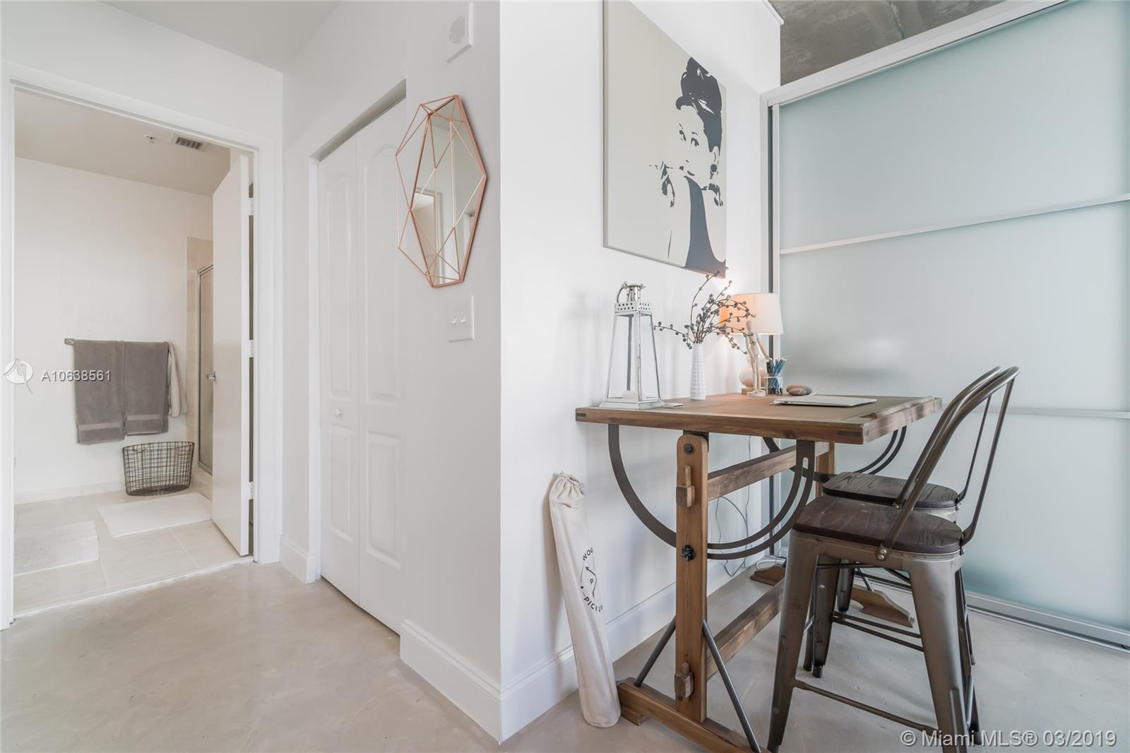 Enjoy loft living in Edgewater at boutique Uptown Lofts! Unit 503 is a two bed/two bath legal floor plan converted to a large 1 bed/2 baths (easily converted back to a 2/2). The master bedroom is divided with chic frosted glass sliding doors for privacy. This impeccable condo boasts polished concrete floors, 10' ceilings, a modern Euro style kitchen and en suite WD. The spacious balcony offers serene garden views, Bisc. Blvd and a glimpse of the bay! Uptown Lofts is a great building with only 66 condos but offering a secured lobby with 24hr. security, covered parking, fitness center and pool. Located in the trendy Edgewater area it is close to Brickell, the Adrienne Arsht center, Midtown Shops and the Design District. Great tenant in place through Oct. (Realtors read Broker remarks!).