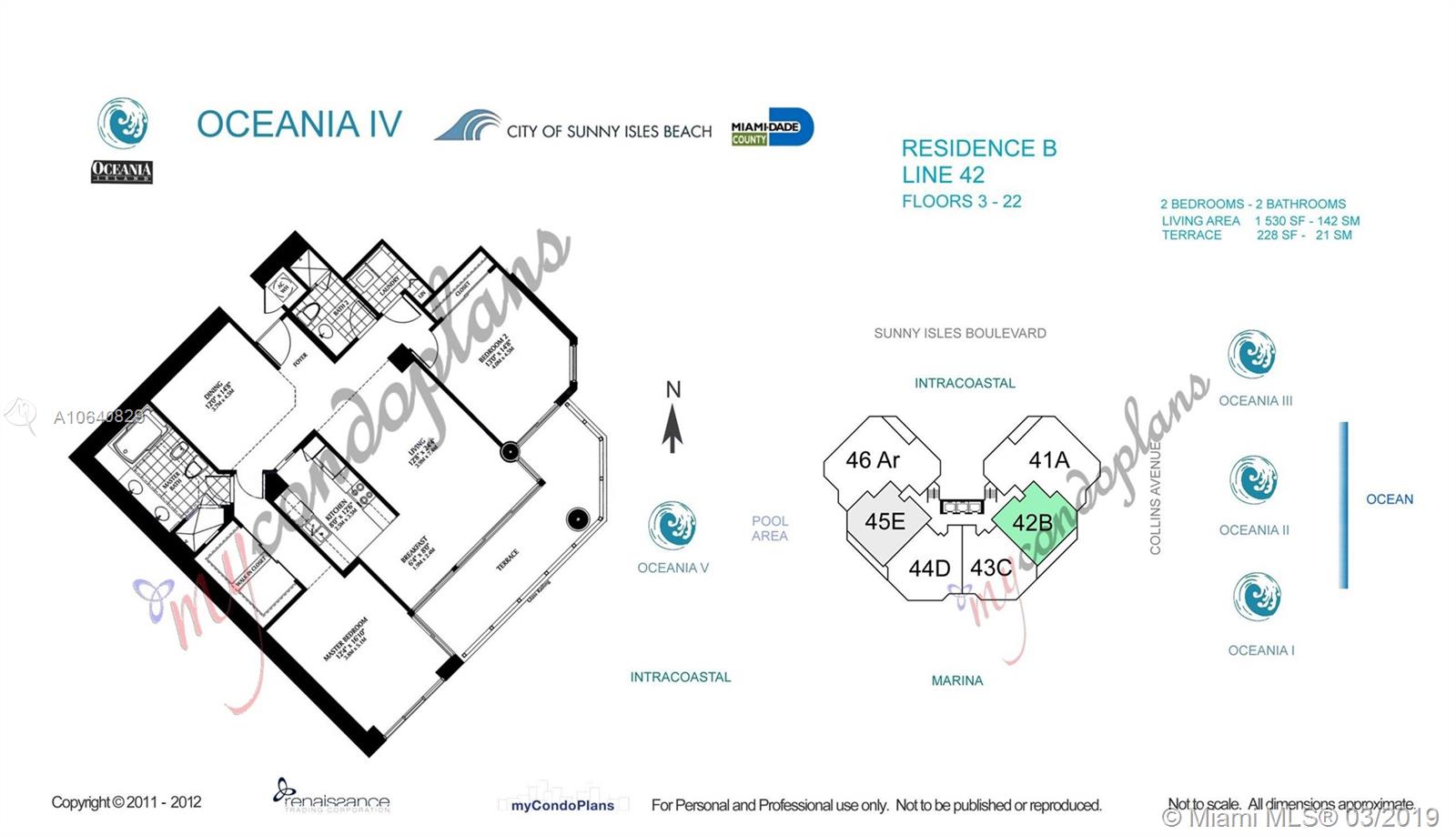 Best line in the building! Beautiful South East facing 2BR + Open Den 2BA split floor plan unit Oceania Island. Spectacular Ocean and Intracoastal views, floor -to-ceiling windows, White Porcelain floors in living area and laminated wood floors in bedrooms. Huge master closet. Expansive terrace with over 220 SF. Luxury Resort Style Living includes Private Beach club, gym and spa, Restaurant, Pool, Tennis and Racquet Ball court, 24 Hour Security and Valet.