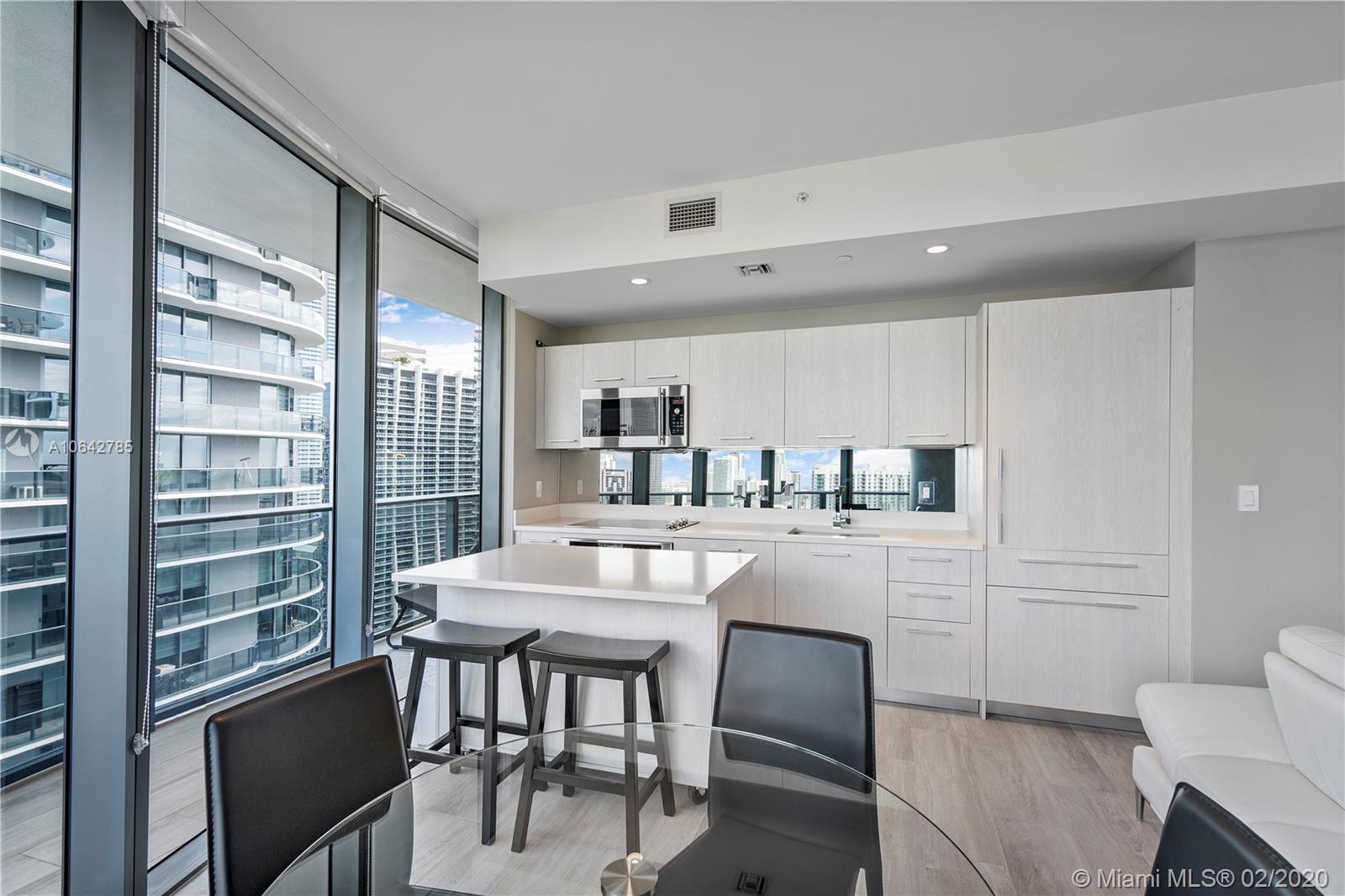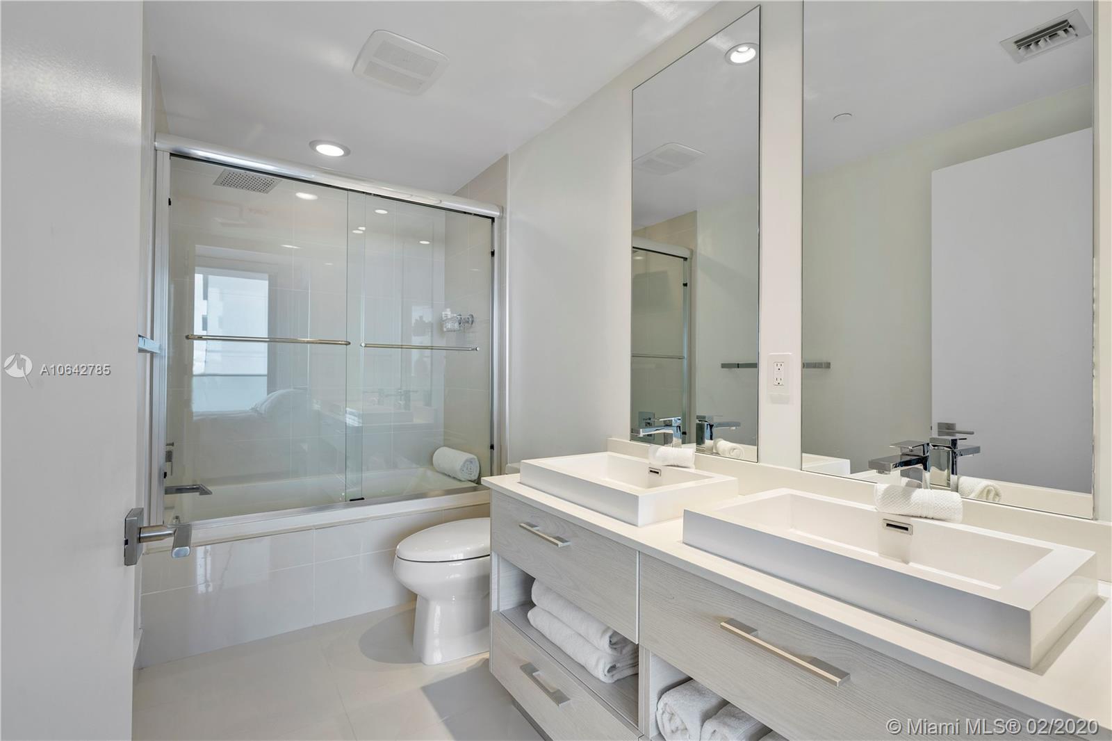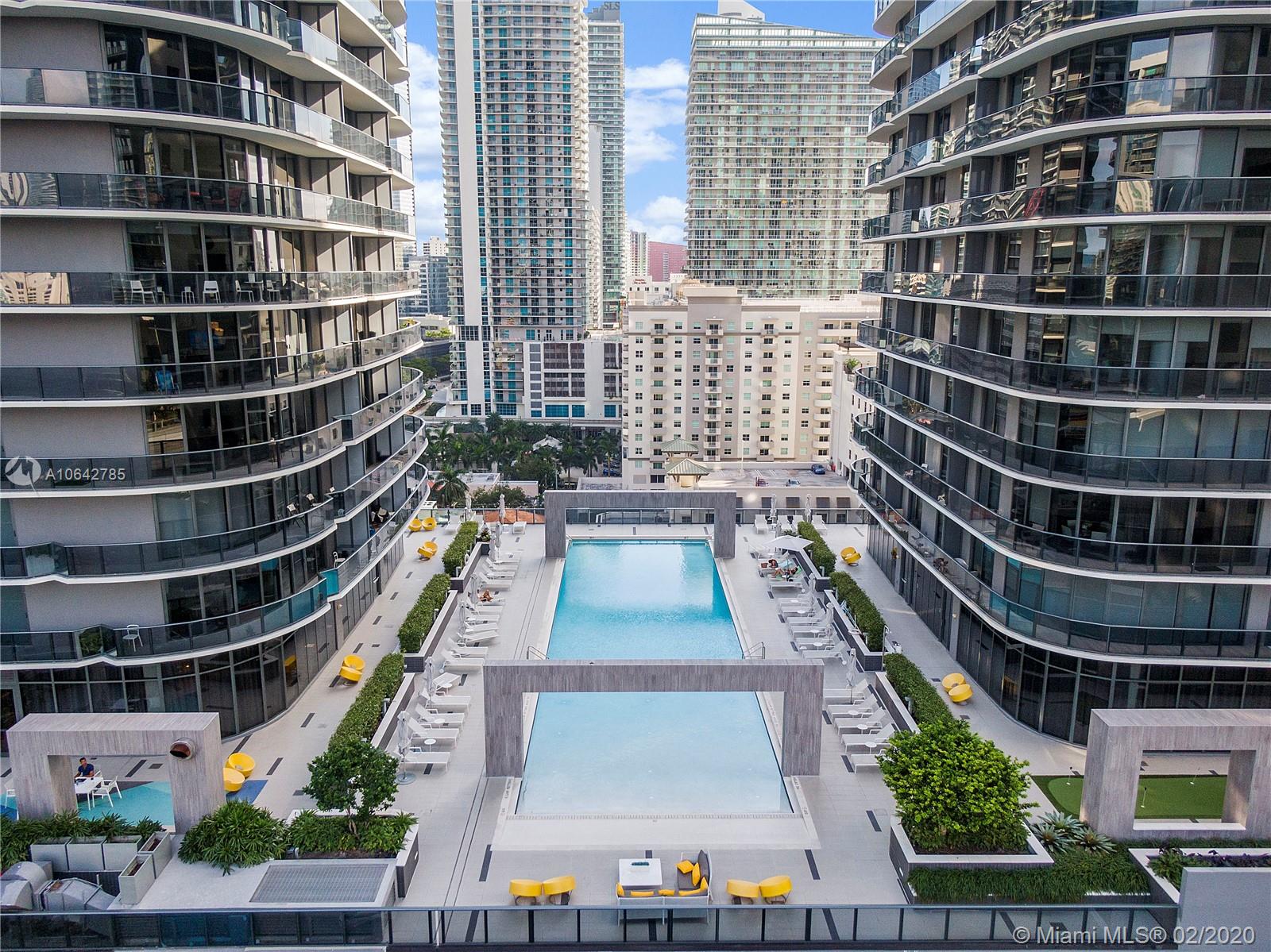 VACANT, EASY TO SHOW -Furnished 2 bedrooms + Den Corner unit with a large wrap-around balcony, porcelain wood floors with matching deck flooring, built out closets, window treatments with blackout shades in bedrooms, mirrored kitchen backsplash enhancing view, floating kitchen island, tub/shower glass enclosure. Parking space is conveniently located on 3rd floor. Best location in the City, amenities featuring 2 pools, jacuzzi, conference room, theater room, kid’s play room, business center, 24hs security, valet and concierge, Equinox gym located in the complex, roof top pool with panoramic view. High speed internet, wireless access in all common areas, basic cable. Ideal for professionals of Brickell. Walking to Brickell CityCenter Mall, Mary Brickell Village, best restaurants & cinema.