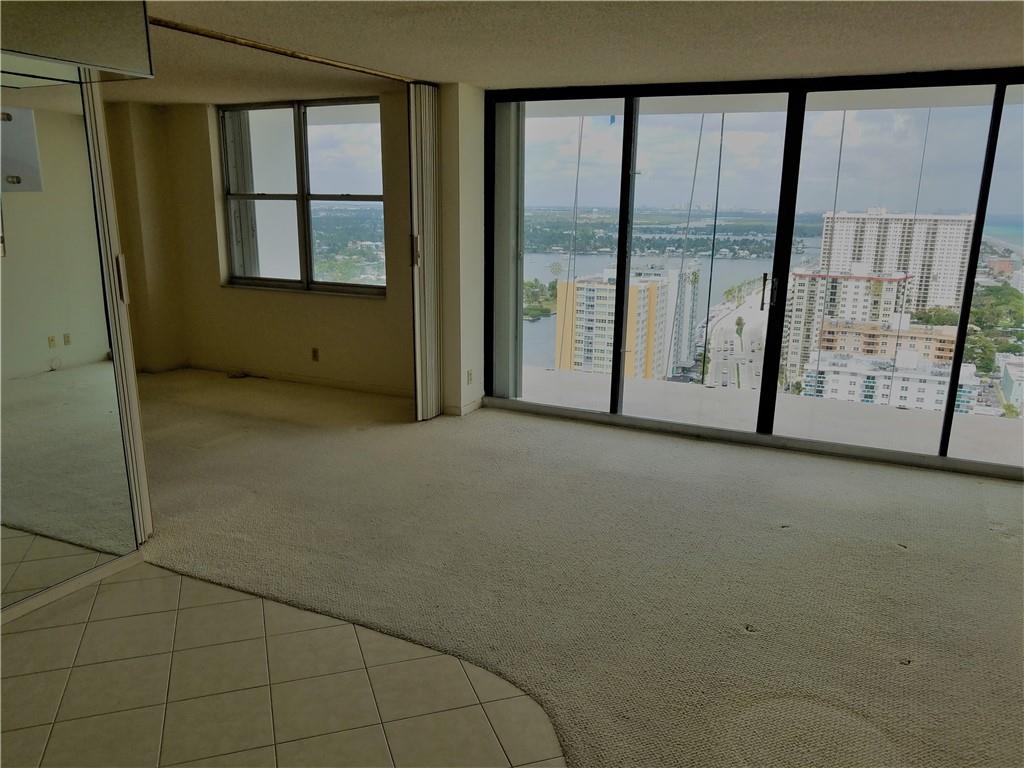 AMAZING VIEWS OF THE OCEAN, BEACH & INTRACOASTAL FROM THIS 27TH FLOOR "LOWER PENTHOUSE" IN ORIGINAL BUT PRISTENE CONDITION WITH A "RETRO" APPEAL (CIRCA EARLY 1970'S). NEW 26' COVERED BALCONY AND RAILINGS RECENTLY COMPLETED AS PART OF A MAJOR OVERHAUL OF THE BUILDING'S EXTERIOR. TWO BEDROOMS AND TWO FULL BATHS WITH THREE CLOSETS IN THE MASTER BEDROOM, INCLUDING WALK-IN, PLUS EXTRA STORAGE. SECOND BEDROOM CAN DOUBLE AS DEN OR OFFICE WITH ACCORDIAN DOOR. CERAMIC TILE IN THE EAT-IN KITCHEN, BATHS AND ADDITIONAL DINING AREA. REFRIGERATOR, STOVE AND MICROWAVE ALL IN GOOD CONDITION. FULL AMENITIES INCLUDING, NEWER GYM, SOCIAL/CLUB ROOM, BEACH SIDE POOLS, LIBRARY, CARD ROOM, POST OFFICE AND MORE! A PERFECT FLORIDA GETAWAY OR PERMANENT RESIDENCE.