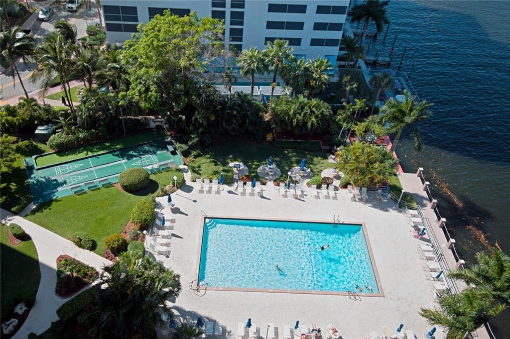 Located in the coveted "22" stack, the view will knock your socks off! Corner unit with South West exposure and breathtaking views of the Ocean, Intracoastal, and Downtown Fort Lauderdale. Central AC and Hurricane Impact windows installed. Tropical resort style pool and garden area located directly on the Intracoastal Waterway. Walk to the beach, restaurants, shopping and water taxi. Association states one buyer must be 55 plus. No Pets, no rentals. You will love living here.