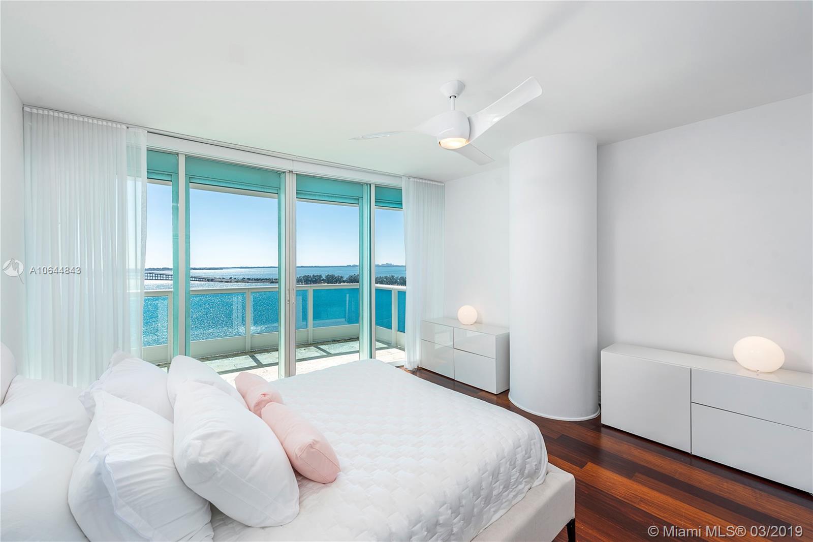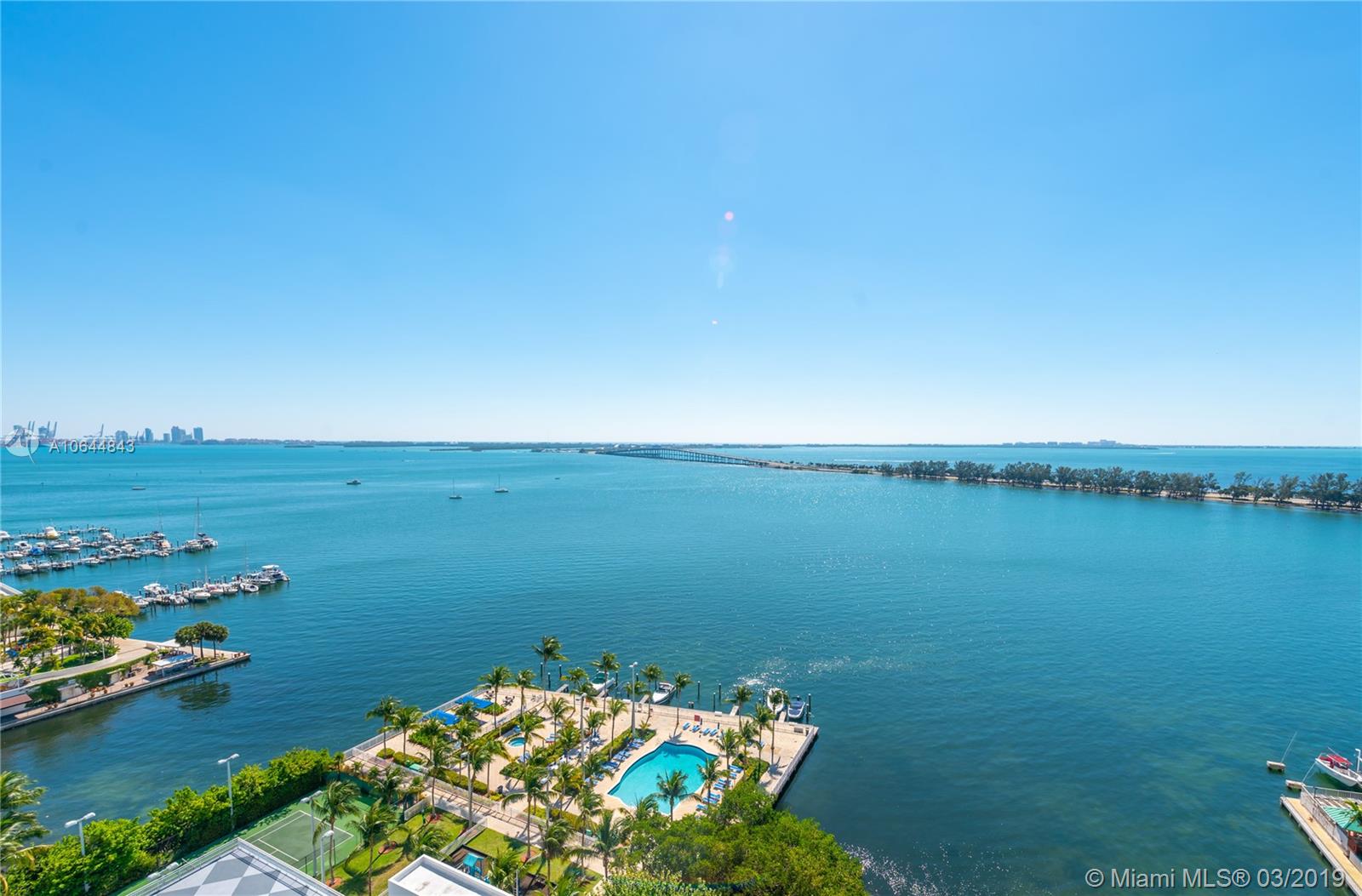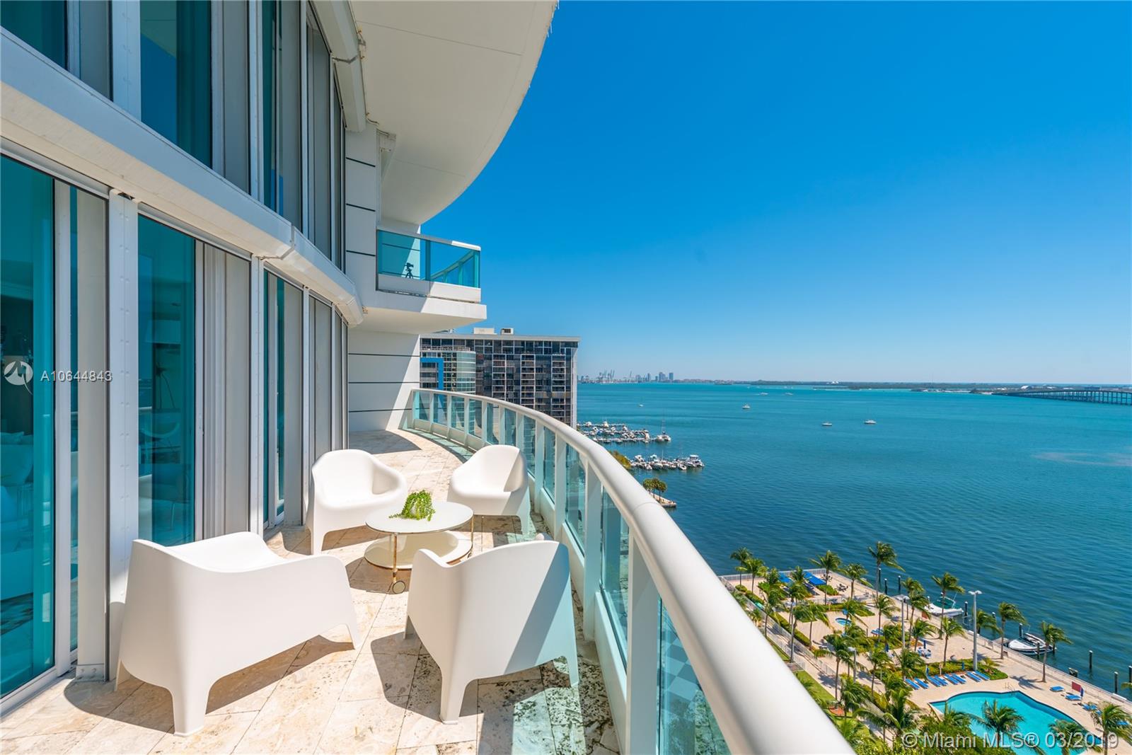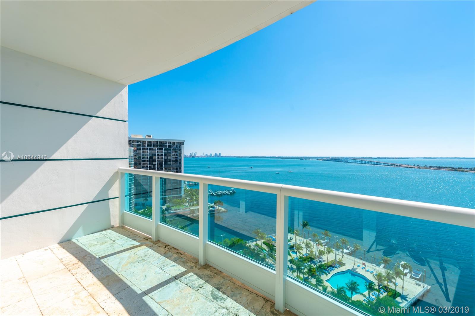 Distinguished Full Service Ugo Columbo building. Highest floor all waterfront Townhome (floors 18/19th ) double height 50 ft wide great room w/floor to ceiling windows (approx. 18' Ht), & panoramic views of Biscayne Bay /Ocean from all rooms. approx 2700 sf interior plus approx 700 sf waterfront wrapped terraces from all principle rooms. 2 Bedroom Suites & Office & Den. 3Ba & Powder room. Stone main floor w/ gracious foyer & wide stone stair to upstairs. Master w/ own terrace, two WIC, two baths & linen. Guest with Bth, own terrace, WIC and 2 linens. Ample storage throughout. 3 parking spaces, Concierge, Tennis, fitness, coffee shop. Kitchen w/ New stainless appliances. Laundry room. Millionaires mile location close to upscale shops & dining, I-95 & KB.