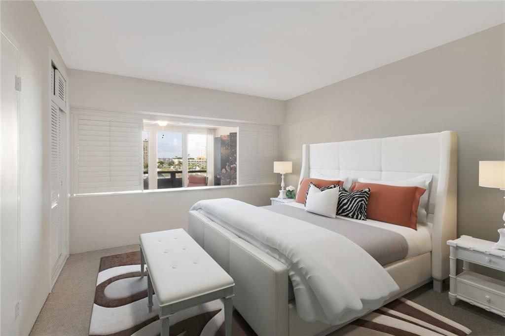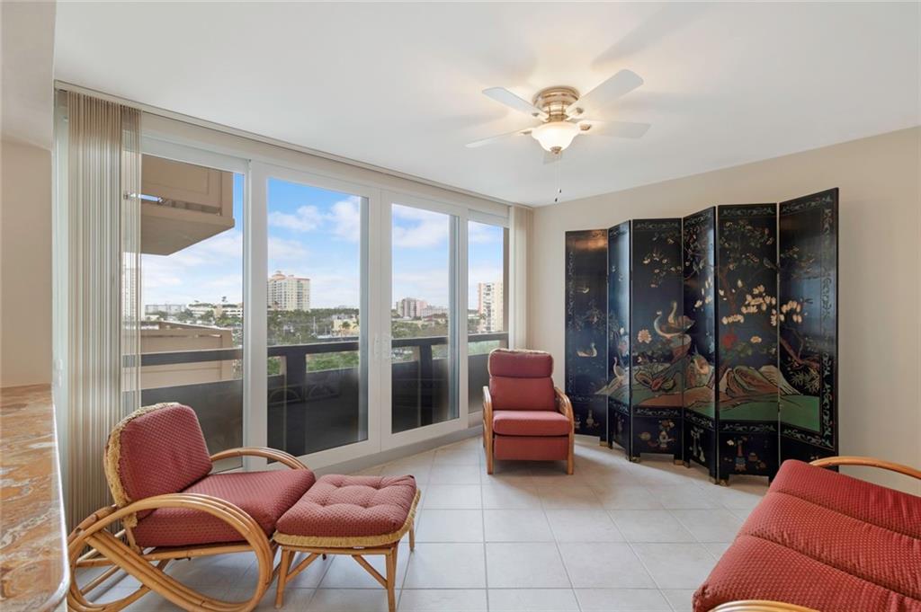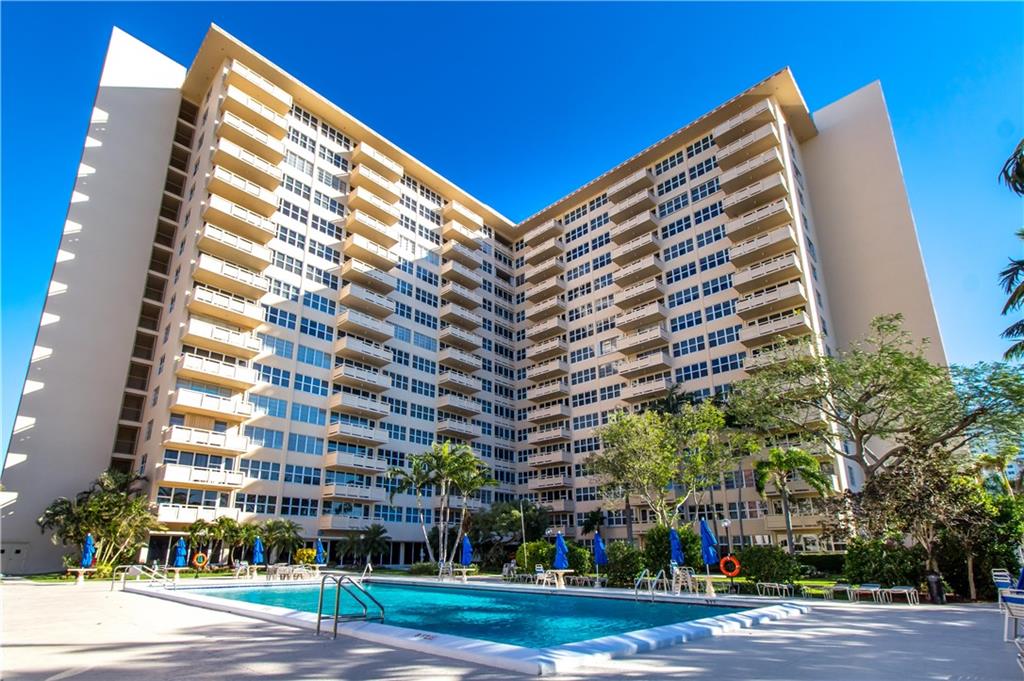 Largest two bedroom floor plan in the Coral Ridge Towers complex with lovely views of the pool, garden, and surrounding neighborhood. Updated and sophisticated with 1500 sq ft of living space and a split bedroom floor plan for privacy when entertaining guests. Remodeled kitchen, updated bathrooms, NEW AC, NEW Hot Water Heater, upgraded electrical, porcelain tile floors and hurricane impact windows/door installed. Extra large 13 x 12 Florida Room overlooking the pool and garden, great for relaxing and entertaining! Located on a barrier island between the Ocean and Intracoastal, Coral Ridge Towers is a fantastic place to live. Association states one buyer must be 55 plus. No Pets & No Rentals.