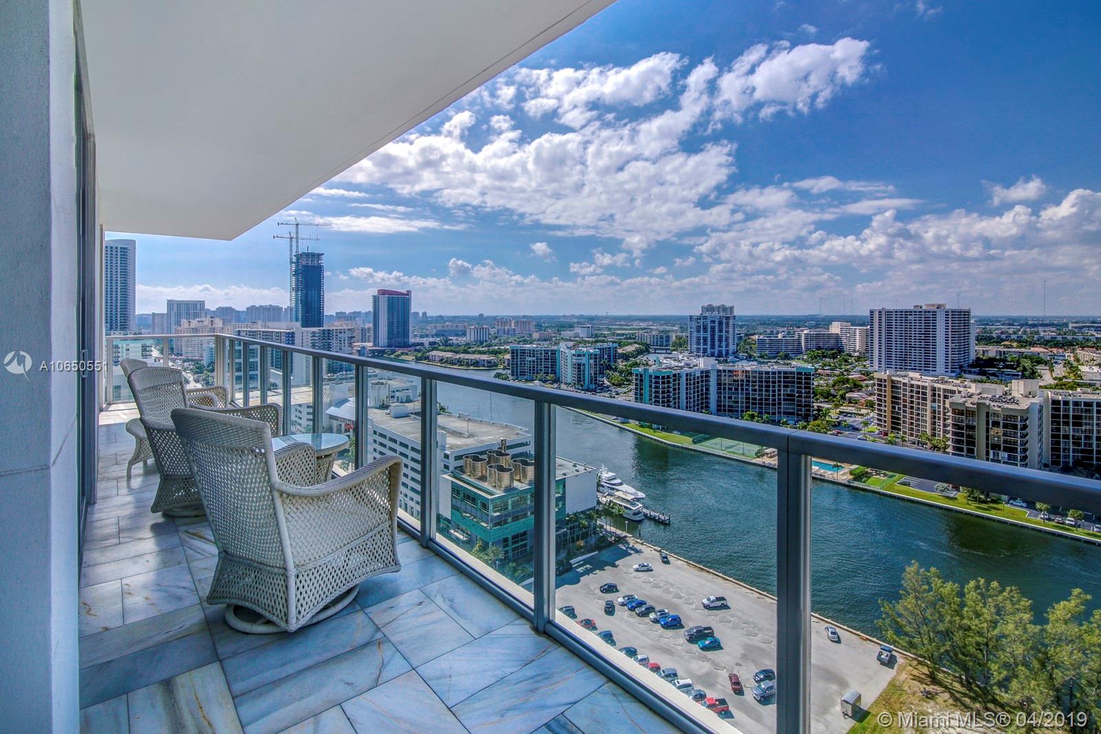 PRICE REDUCTION! Beautiful, Luxurious 3 bed, 3 bath unit with private elevator that feels like a single family home. 2308 sq ft under air, Fully Equipped, Furnished and Upgraded with Top of the line Appliances and Kitchen Cabinets. Marble Floors in the main areas and Brazilian Wood in the bedrooms. Professionally furnished. Huge Balcony with Marble flooring wraps the South side of the unit with Direct East Ocean Views, City Views to the South and Intracoastal Views to the West. Watch the Sun Rise over the beautiful Blue Ocean in the AM, and Sunset in the afternoon. There is a second balcony facing direct West for the Sunsets. This building boasts a 2 story gym, tennis, media room, 24 hour valet and security. This is the best priced high floor unit in one of the best lines in the building.