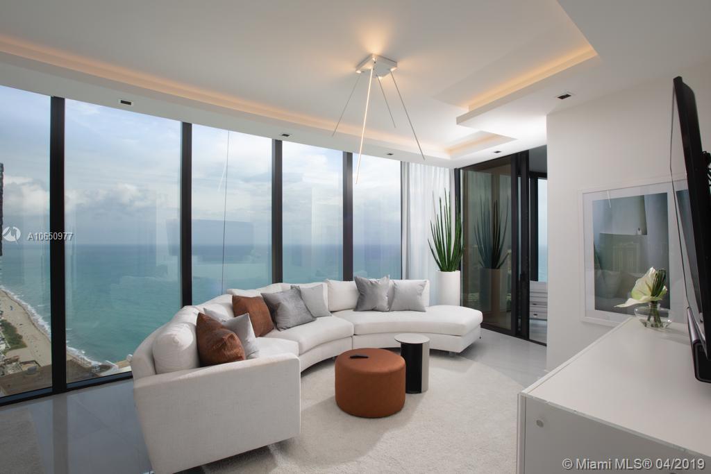 THE MOST BEAUTIFULLY FINISHED UNIT AT THE PORSCHE DESIGN TOWER! This 3 bedroom custom designer finished mansion in the sky was designed by Steven G with high end finishes all throughout. Featuring a gorgeously finished 2 car garage in the living room and a heated salt water pool on the balcony. Enjoy living in the only building you can drive into your apartment with your car. Residence includes Miele appliances, private elevator, private restaurant with in room dining, building concierge, car concierge, full beach service, two pools, spa, car simulator, sports simulator, movie theatre, salon, and party room. Enjoy five star resort like living in one of the most technologically advanced, private, and secure building in the world!