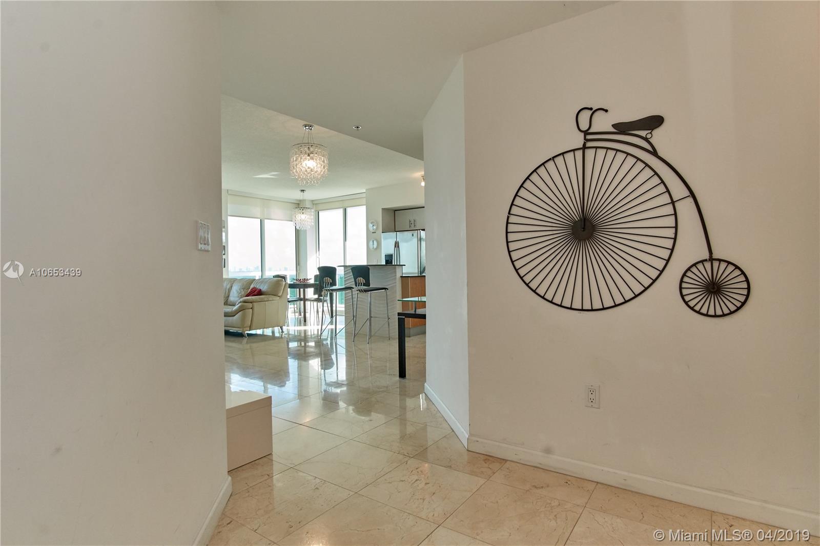 Real 3 rooms (den closed by the developer) 2 bathrooms. This corner unit at 360 Condo offers unobstructed views of the bay. Waterfront luxury building in gated community with private marina. It features with title flooring, roller shades, a modern kitchen w/GE Profile appls., a large master bath w/Roman tub and marble shower. It boasts a spacious floor plan, high impact glass, plenty of closet space, a storage closet + 2 park. spots. 360 Condo is a gated community offering 24 hr. security, marina, valet, 2 pools, sauna + gym.