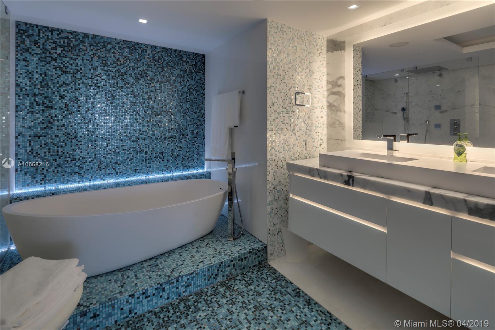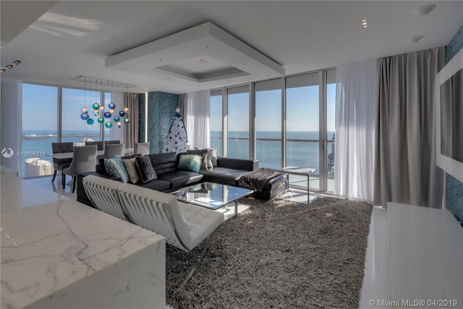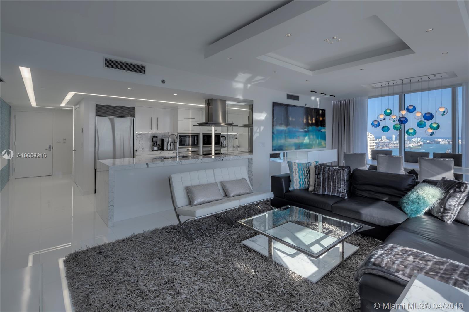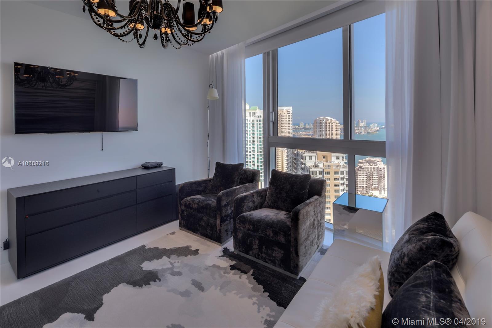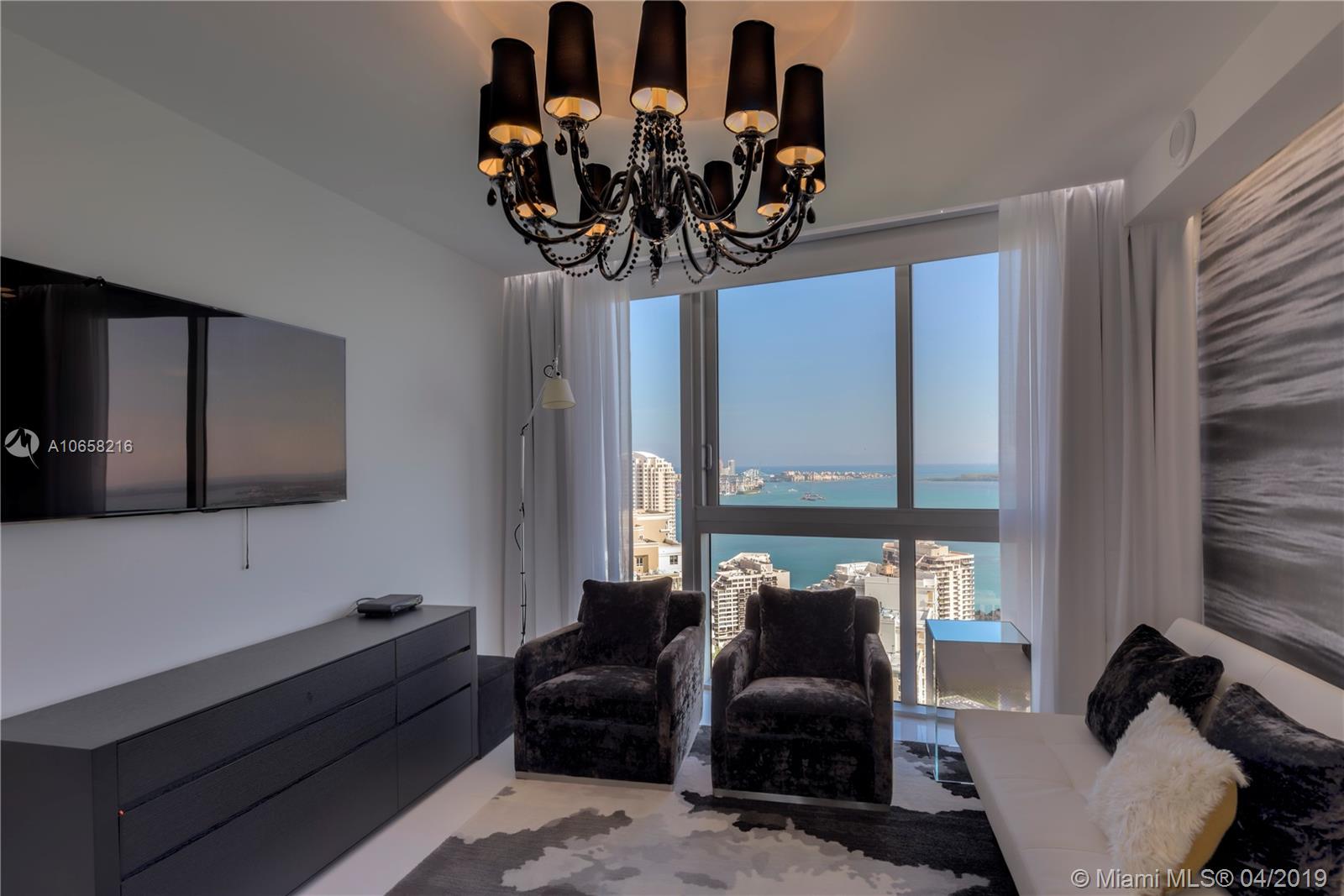 A modern and meticulously upgraded waterfront residence with unique designer finishes. Top-of-the-line details throughout including Carrara marble counters, custom LED lighting, mosaic tiling and marble walls, built-in sound system, master bath with rainfall shower and soaking tub. Desirable corner unit with unobstructed bay views and spacious balconies. Includes two parking spaces. Icon Brickell offers full-service amenities, spa and newly renovated pool deck - close to Brickell City Centre.
