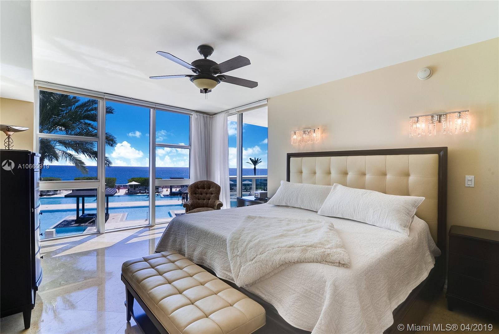 One of a Kind Completely Unobstructed Spectacular Panoramic Direct Ocean Views that Clears All the SE Ocean views from this floor unit ONLY ! 3 bedroom /3.5 bathrooms /Marble throughout / built in closets /storage space /assigned parking space. 5 Star Resort Amenities :Beach & Pool Services , 5 Heated Pools, State of the Art 50.000 sq. ft. SPA & Fitness Center Overlooking the Atlantic Ocean, 24 hours Security, concierge and Valet .