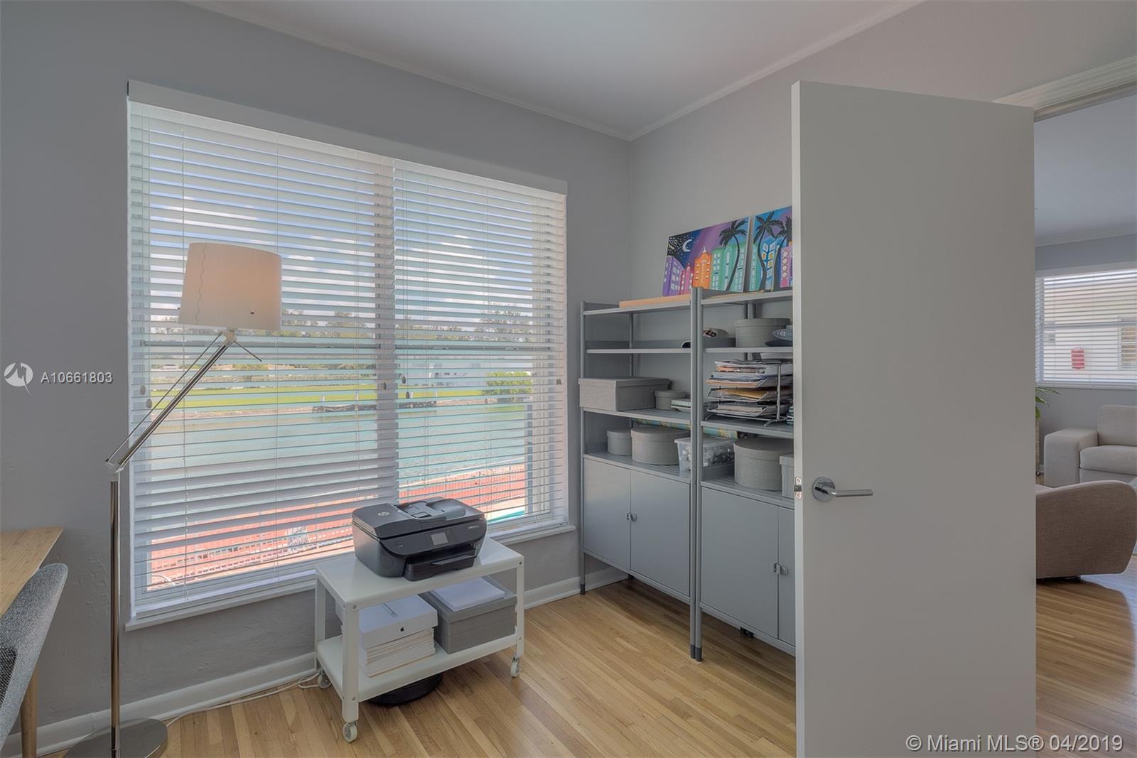 Spacious, meticulously maintained, and rarely available corner 2 bed/2 bath + DEN unit in desirable Marseilles Deco Condo. TONS of natural light with east, west & north exposures, and beautiful canal and pool area view. Unit features refinished dade county pine hardwood floors, stainless steel appliances (2016), gas stove, full-size Whirlpool Duet washer/dryer (2016), tankless water heater, and accordion hurricane shutters. This historic MIMO condo is pet friendly and features 2 acres of lush landscaping, furnished pool deck, 2 large BBQ areas, bike storage, fully gated secured entrance, free street parking or first come/first serve on-site parking. Walk to Normandy Fountain, shops, restaurants and the Beach! Kayak, paddle-board, or take a boat from the property out to the bay or ocean!