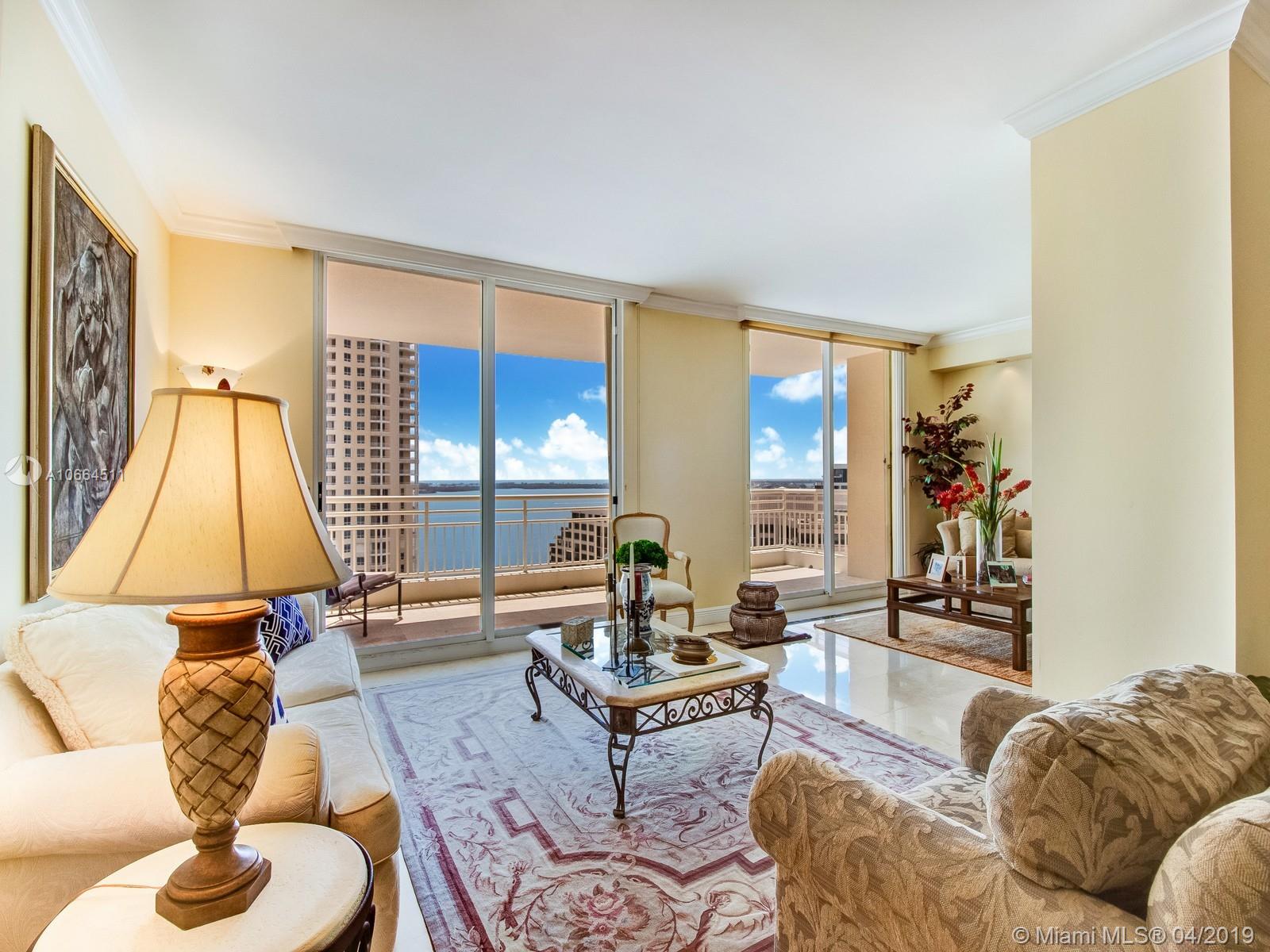Best priced unit in desirable 07 line. This 2 bedroom 2.5 bath unit can be easily converted into a 3 bedroom. Enjoy spectacular views of the bay and the port of Miami from all rooms. The master includes a walk-in closet, double sinks, shower and large bathtub. 1 parking space assigned. One Tequesta Point is a luxury condo with 24-hour security, Concierge, valet parking, fitness center, pool, jacuzzi, clubroom, racquetball, squash, sauna, and more. The convenience of Brickell Key includes shops, restaurants, great children parks and beautifully landscaped walking pathway on the waters edge. A must see!