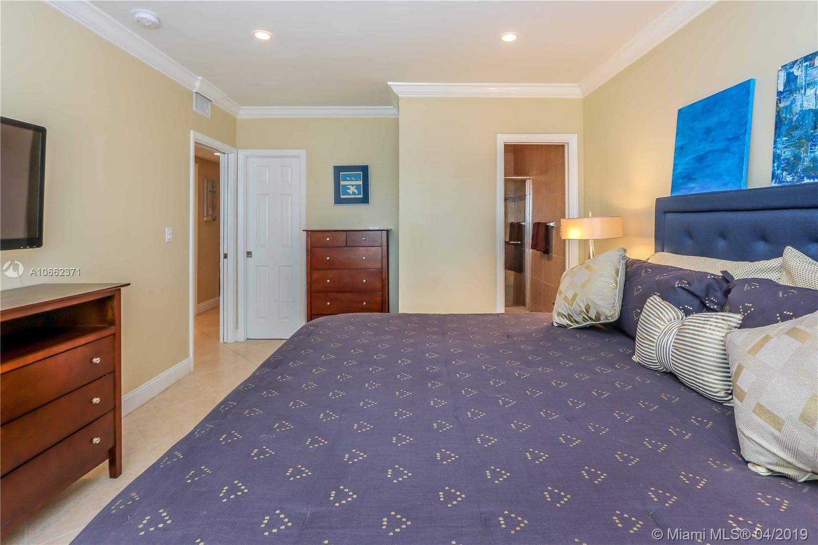 Great Location, Very small personal community, total of 49 units. This lovely 2 bedroom, 2 bath unit being sold fully furnished. Tastefully furnished, including 3 mounted flat screen TV's and two pull out sofa beds in LR. Unit features tile throughout, granite countertops, stainless steel appliances, including dishwasher and microwave. Beautiful intracoastal views, heated pool, shuffleboard, grounds are impeccably maintained and there's a secured lobby. Unit underwent a $100,000 complete renovation in 2013. This property is located across the street from the Ocean and the famous Hollywood broadwalk.
